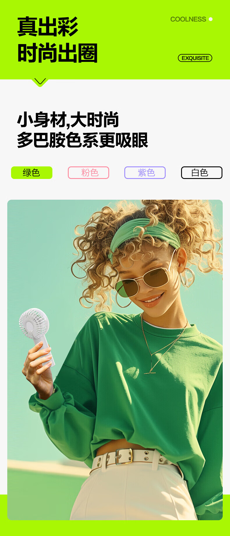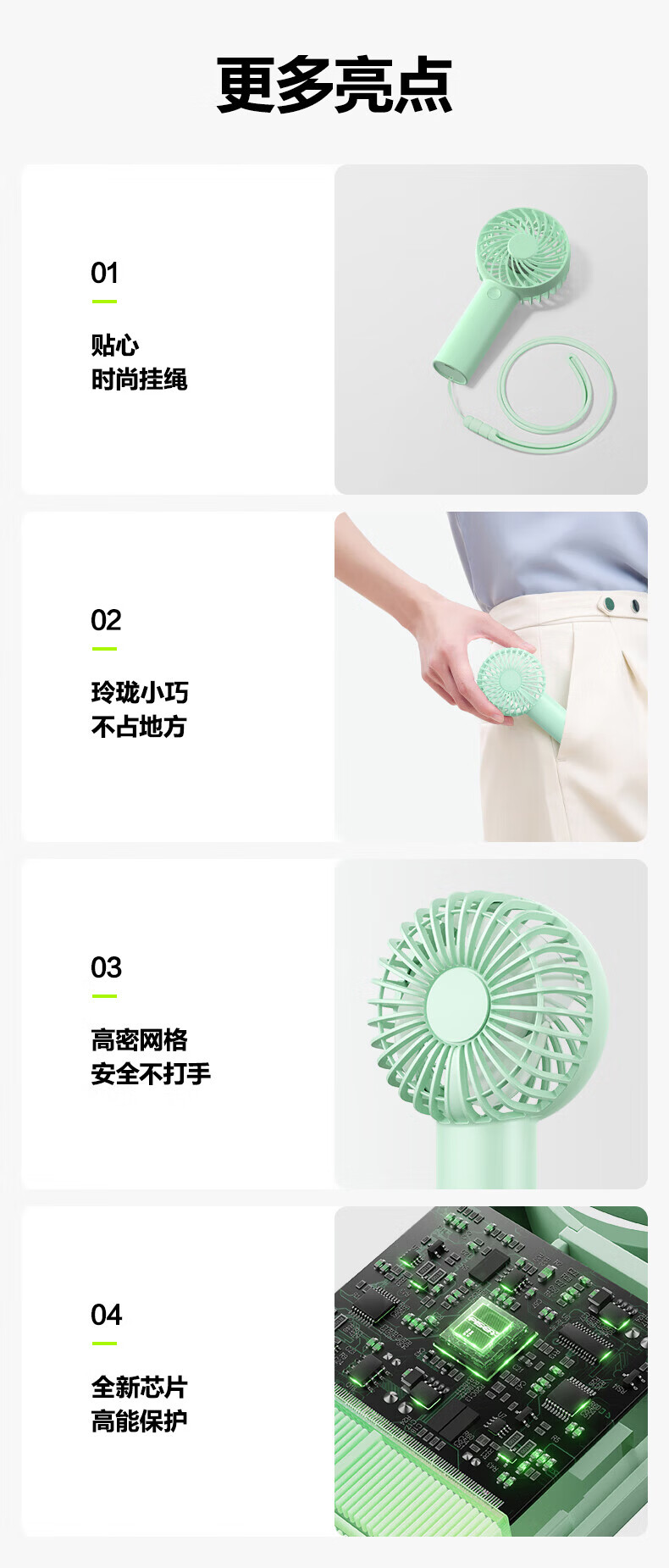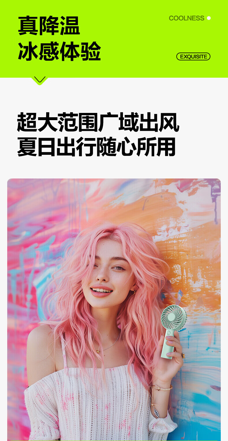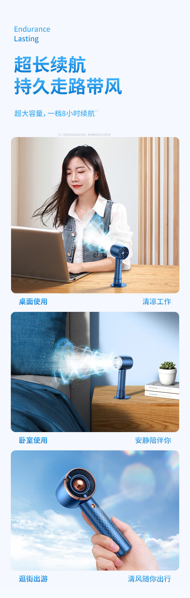 品胜(PISEN)小风扇充电便携小型迷你风扇办公室户外露营小型电扇学生宿舍桌面电风扇大容量长续航 【紫色】手持风扇|三档变速 1200mAh