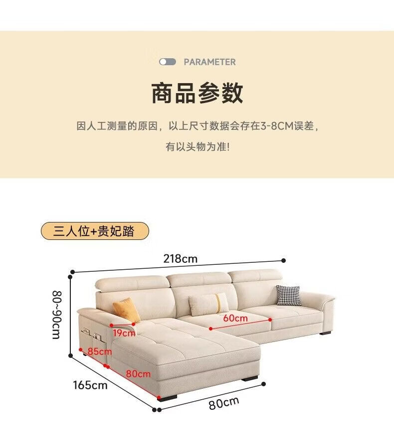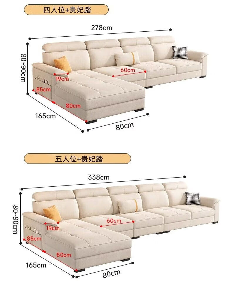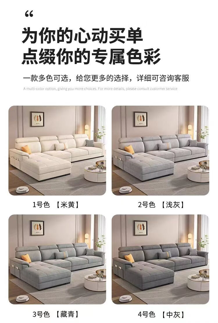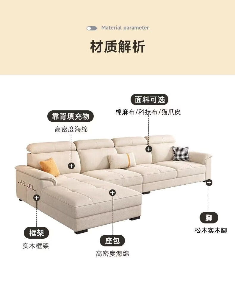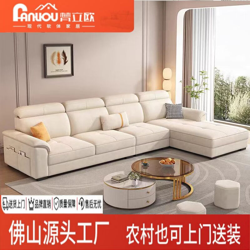 御巢盛2026新款沙发客厅现代简约布艺沙发北欧棉麻布猫抓客厅大中小户型 五位3.38米+贵妃榻+茶几(方凳4) 精选亲肤科技布-海绵版