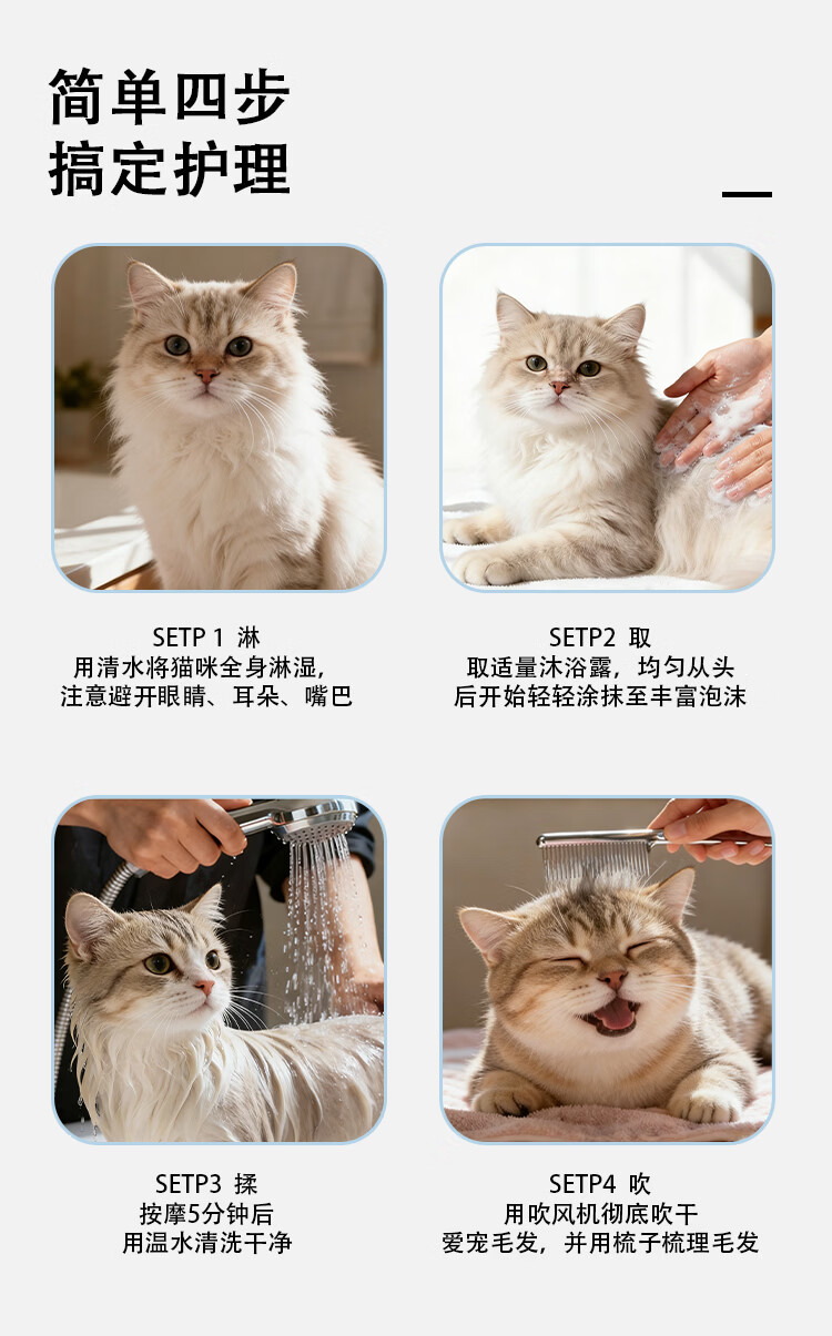 MULMUL宠物沐浴露猫咪专用清洁去污除臭留香抑菌除螨祛味浴液300ml 猫咪科学洗护五瓶套装(3瓶沐浴露+2瓶护毛素)