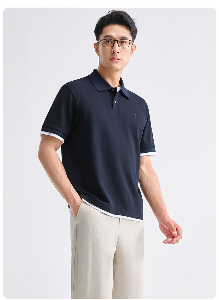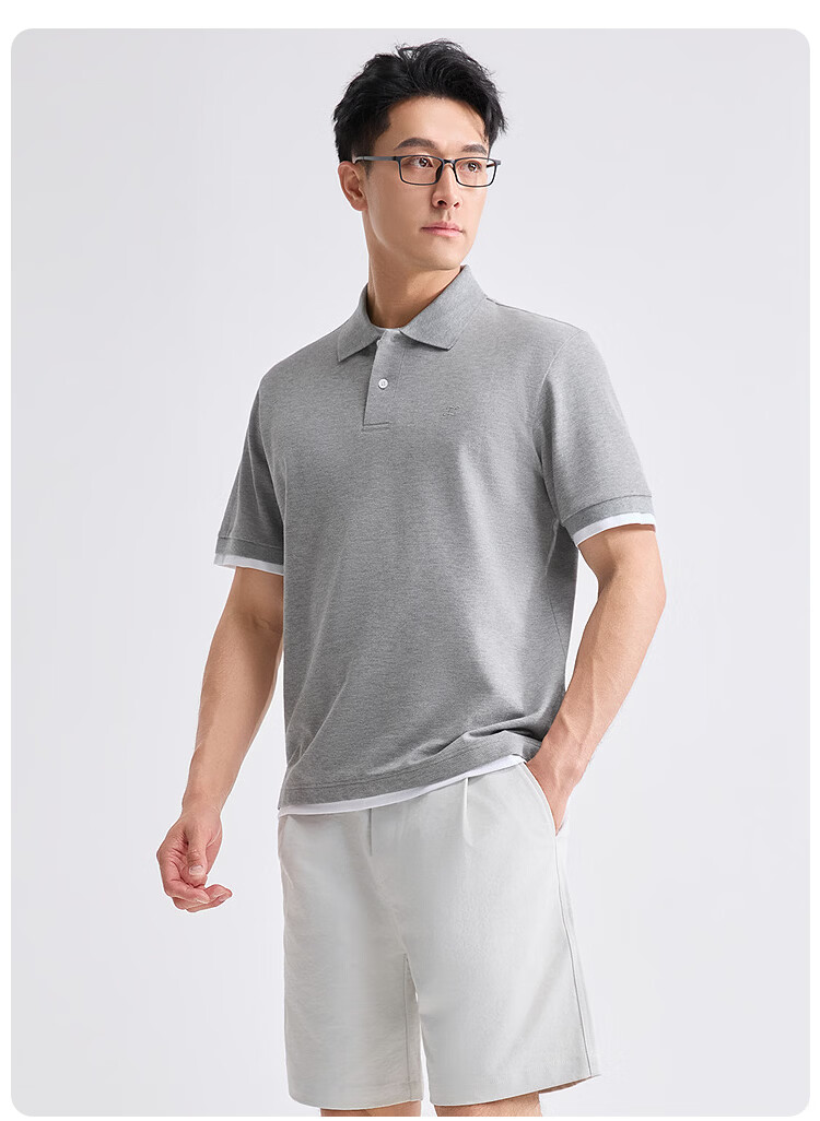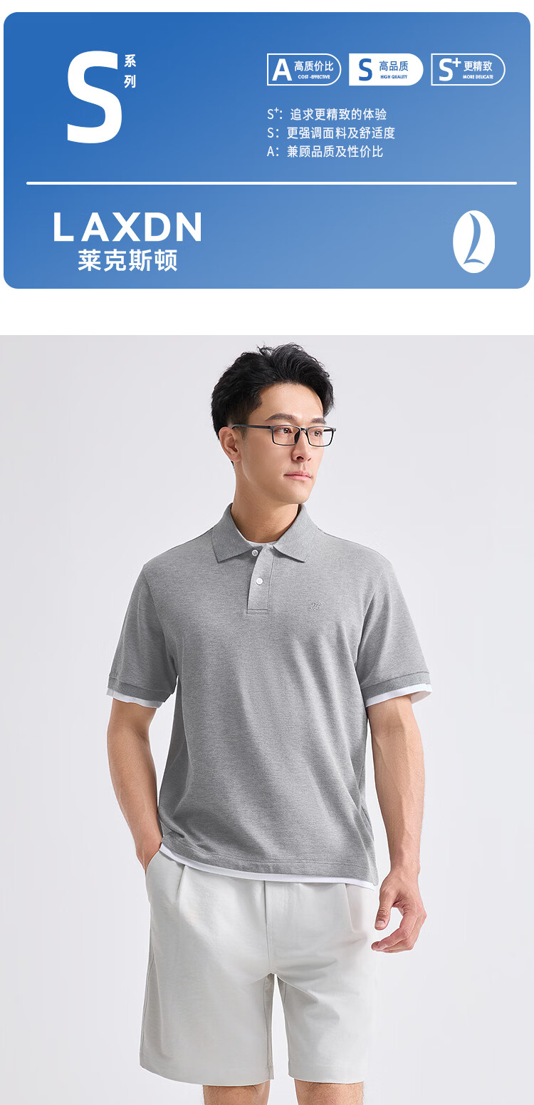 莱克斯顿(laxdn)polo衫男夏季珠地网眼假两件刺绣logo吸湿透气翻领商务休闲短袖男 花灰 S