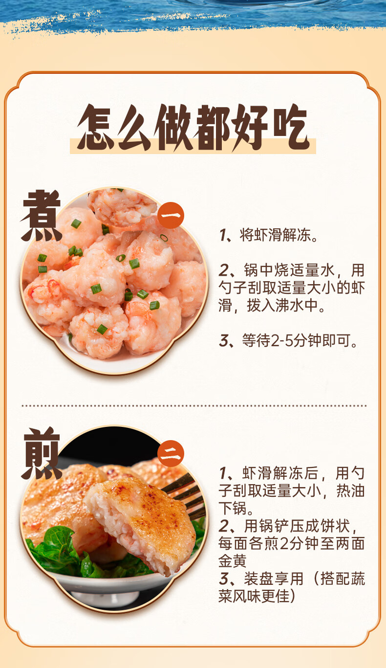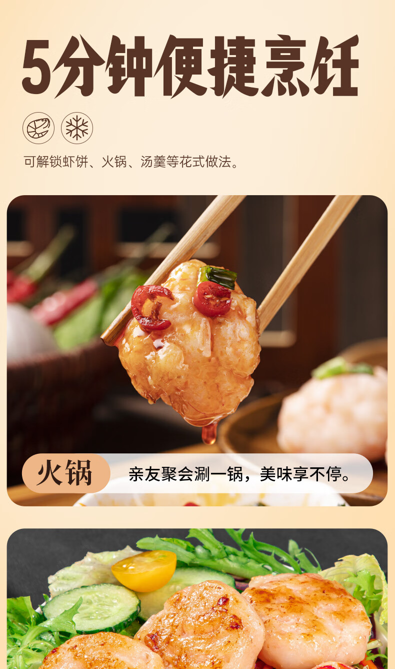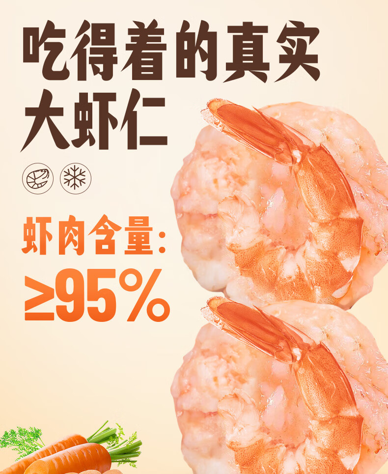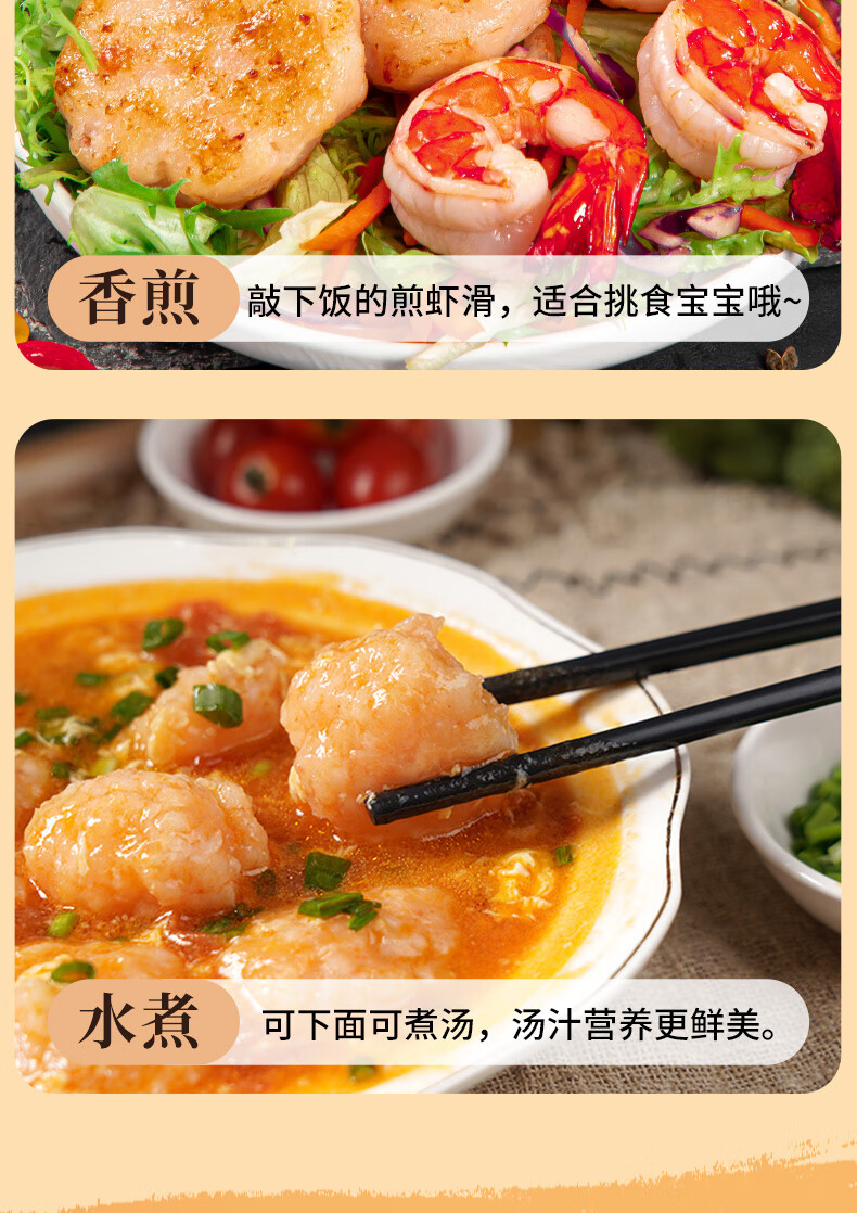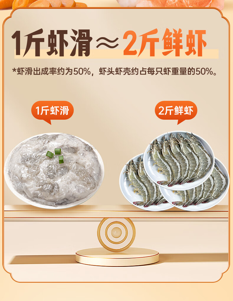 潮味码头虾滑300g虾含95%生鲜冷冻速冻减脂早餐丸滑涮火锅关东煮火锅食材