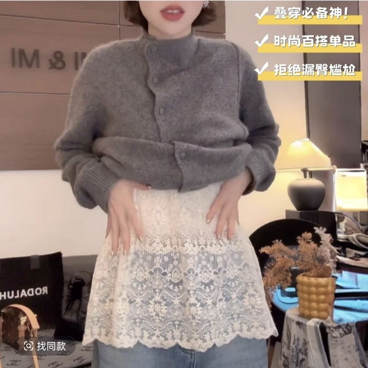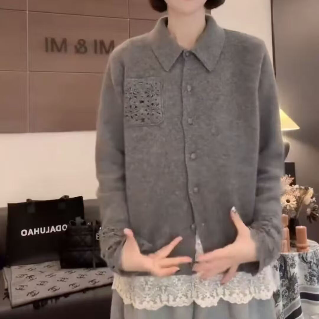 【轻奢品质】连帽蕾丝雕花长袖针织衫女早春法式韩版内搭显瘦打底 米色【优质版】 XL 115-125斤