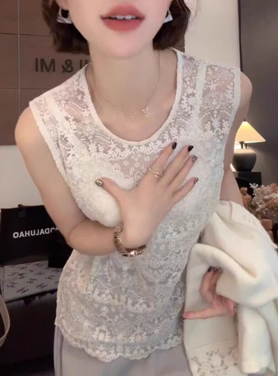 【商场品质】2026新款百搭显瘦欧若风圆领蕾丝打底背心高级感内搭 杏色 XL (建议110-125斤)