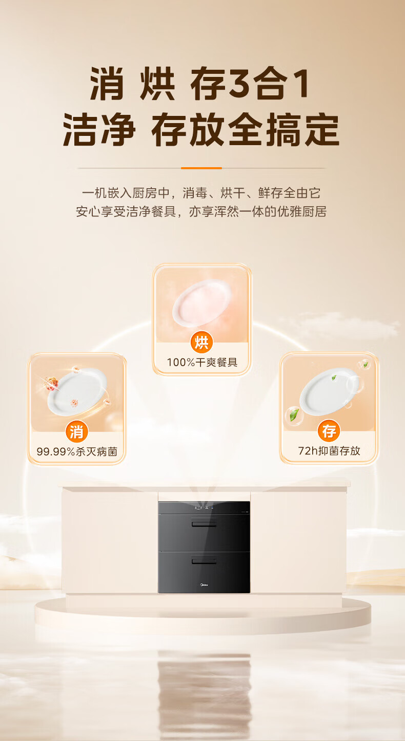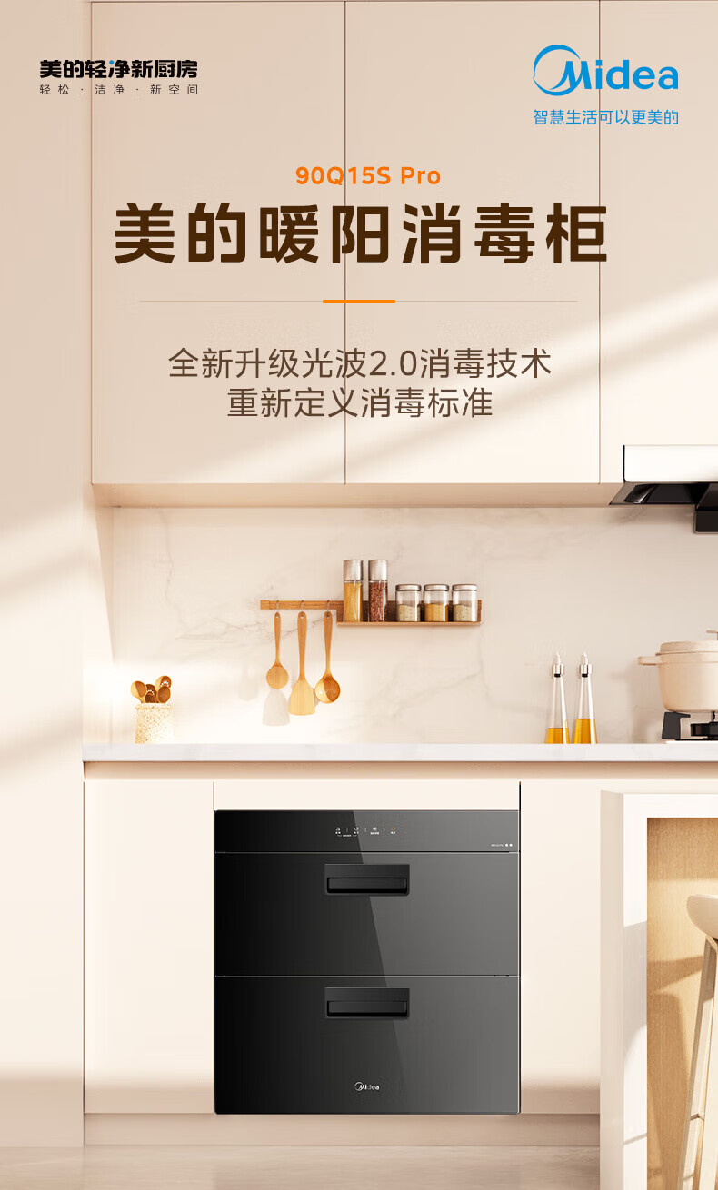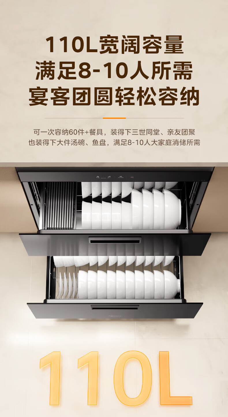 美的(Midea)光波2.0 暖阳消毒柜嵌入式家用 110L双层大容量餐具碗柜碗筷婴儿奶瓶 90Q15S Pro 二星级 110L 光波2.0