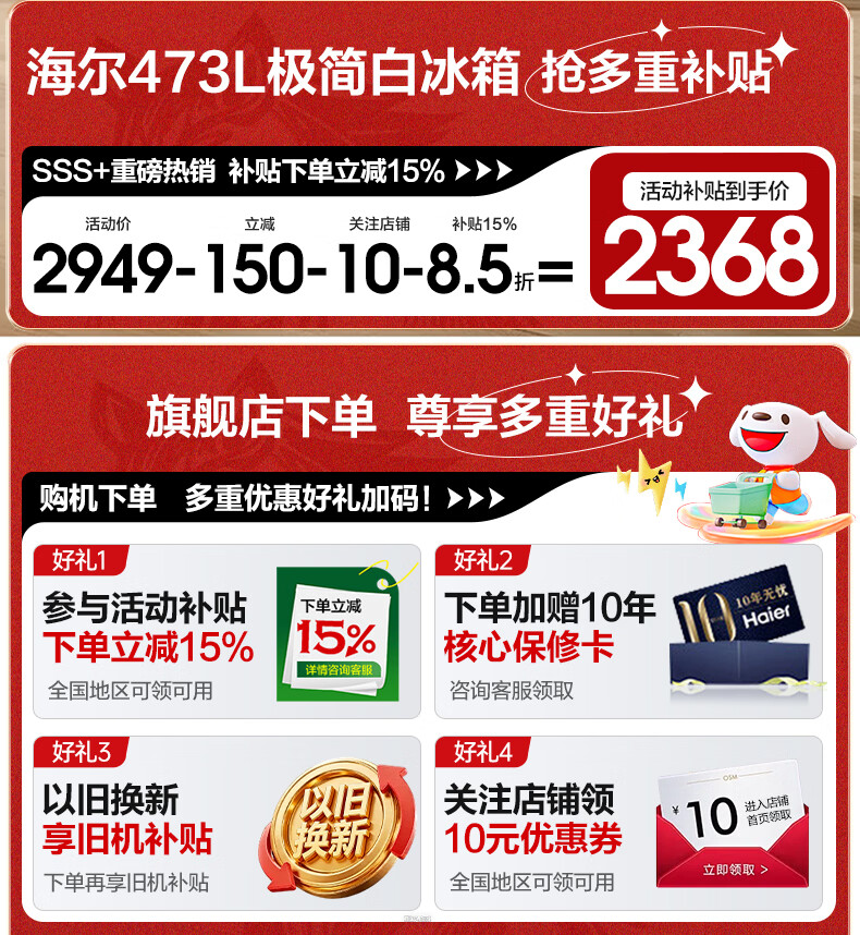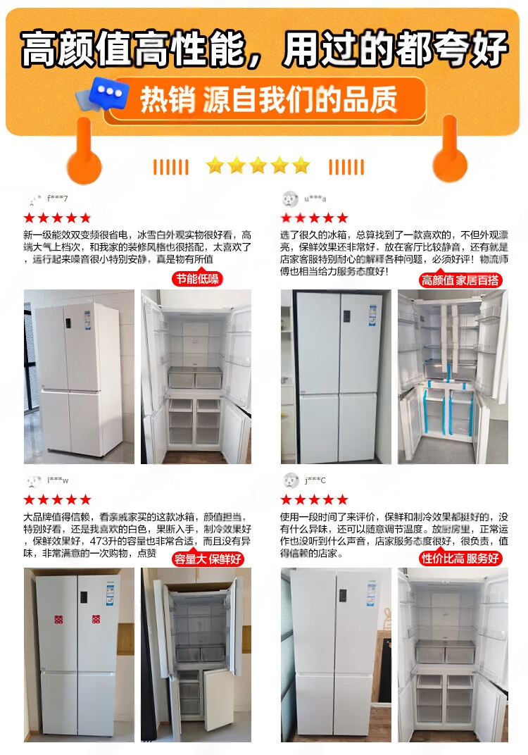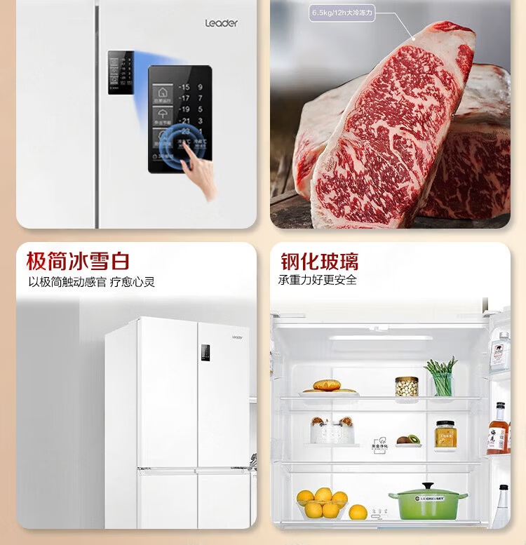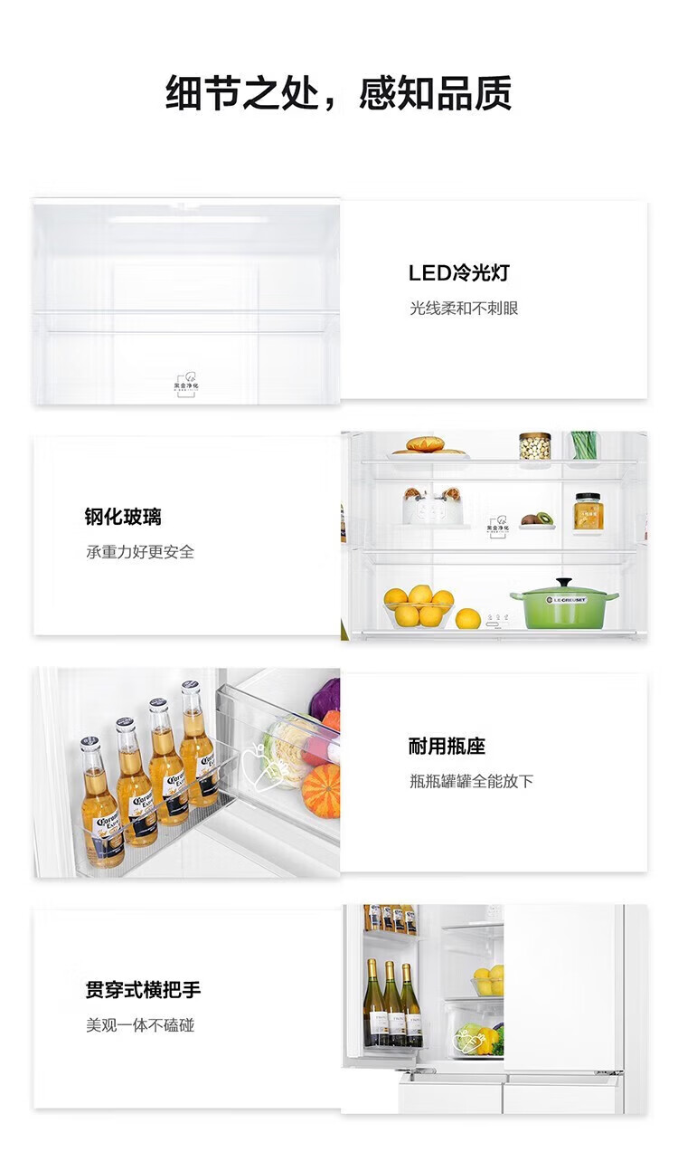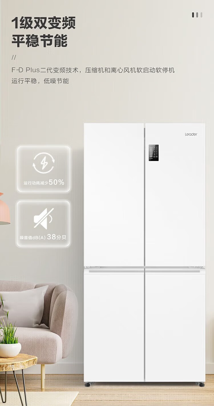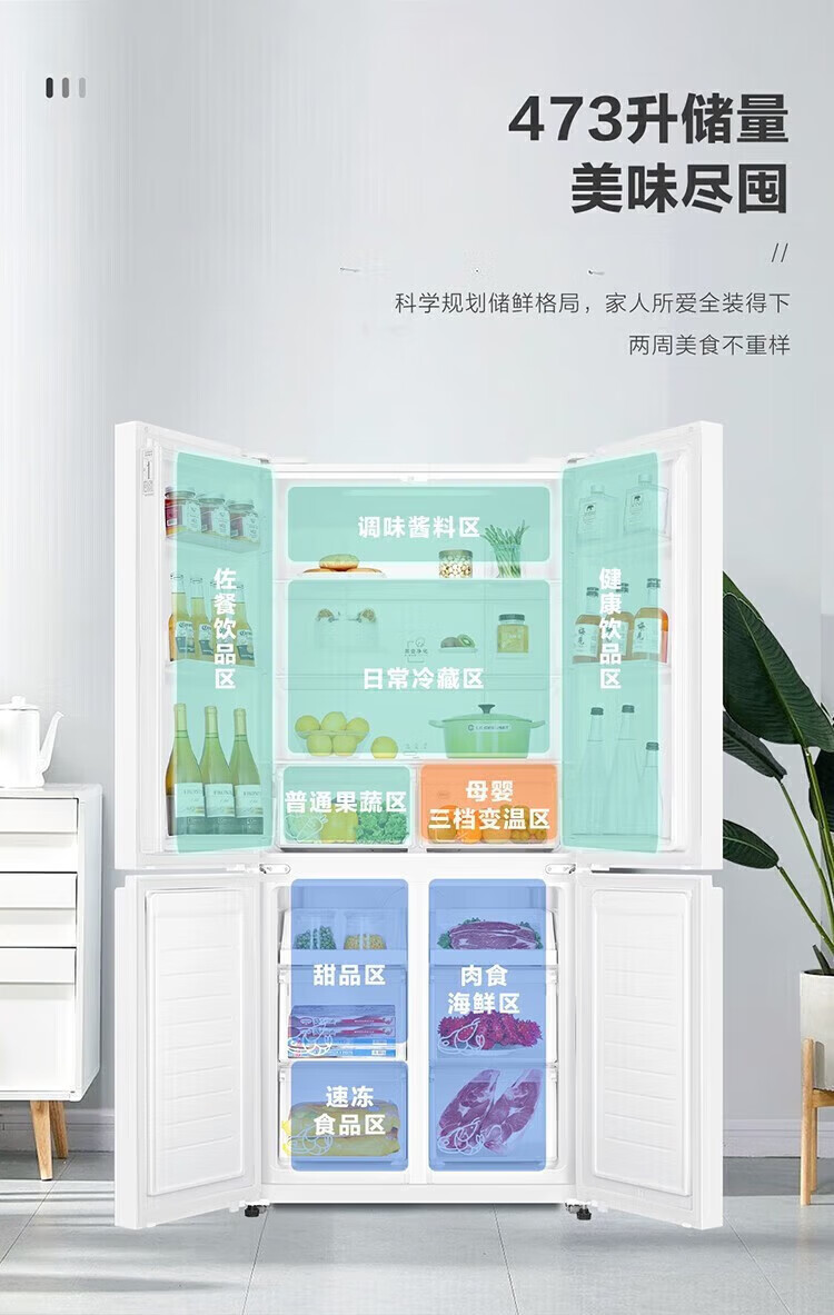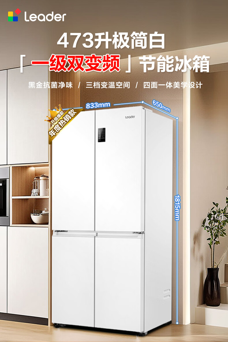 海尔冰箱出品统帅473升四开门十字对开门嵌入式白色风冷无霜一级能效变频节能以旧换新电冰箱 冰雪白+双变频新一级+黑金净化