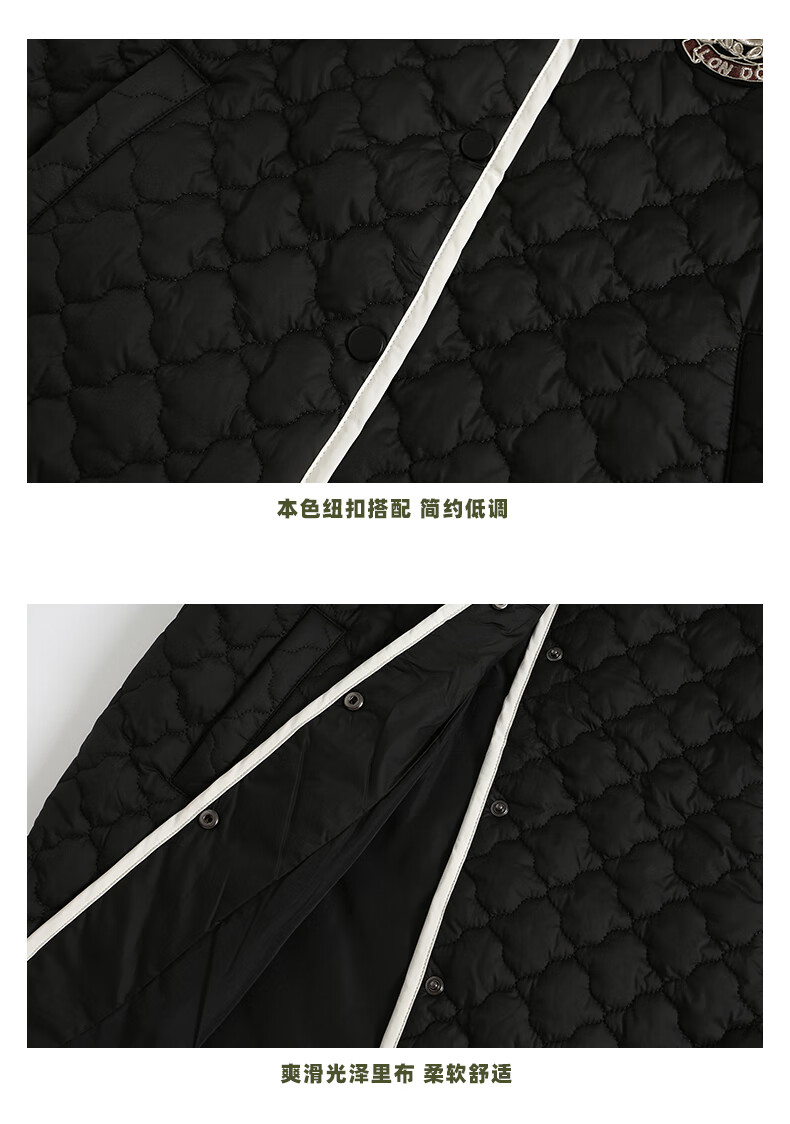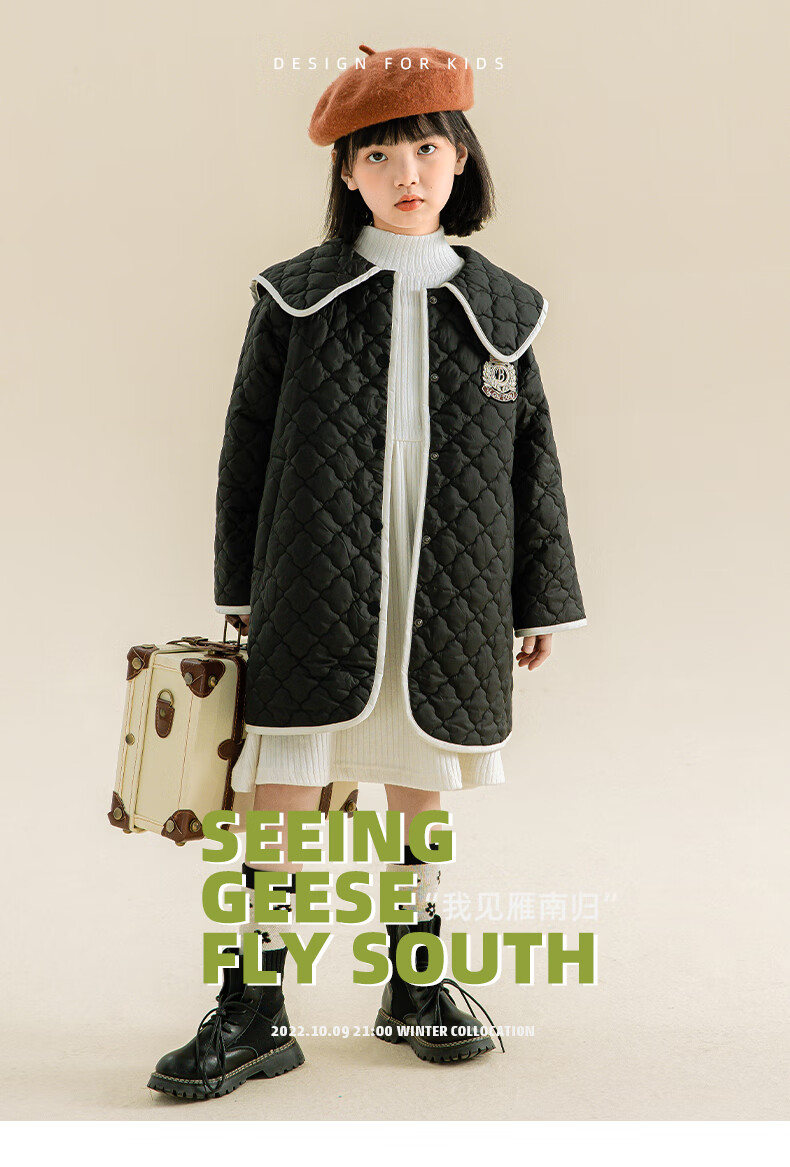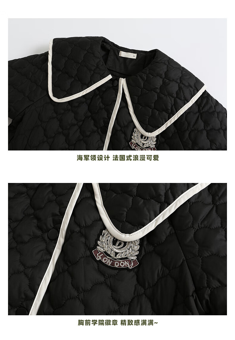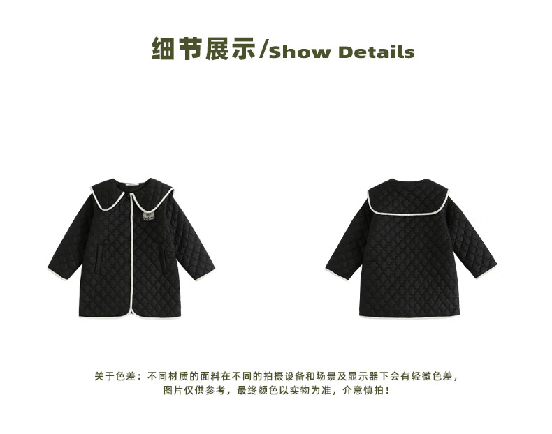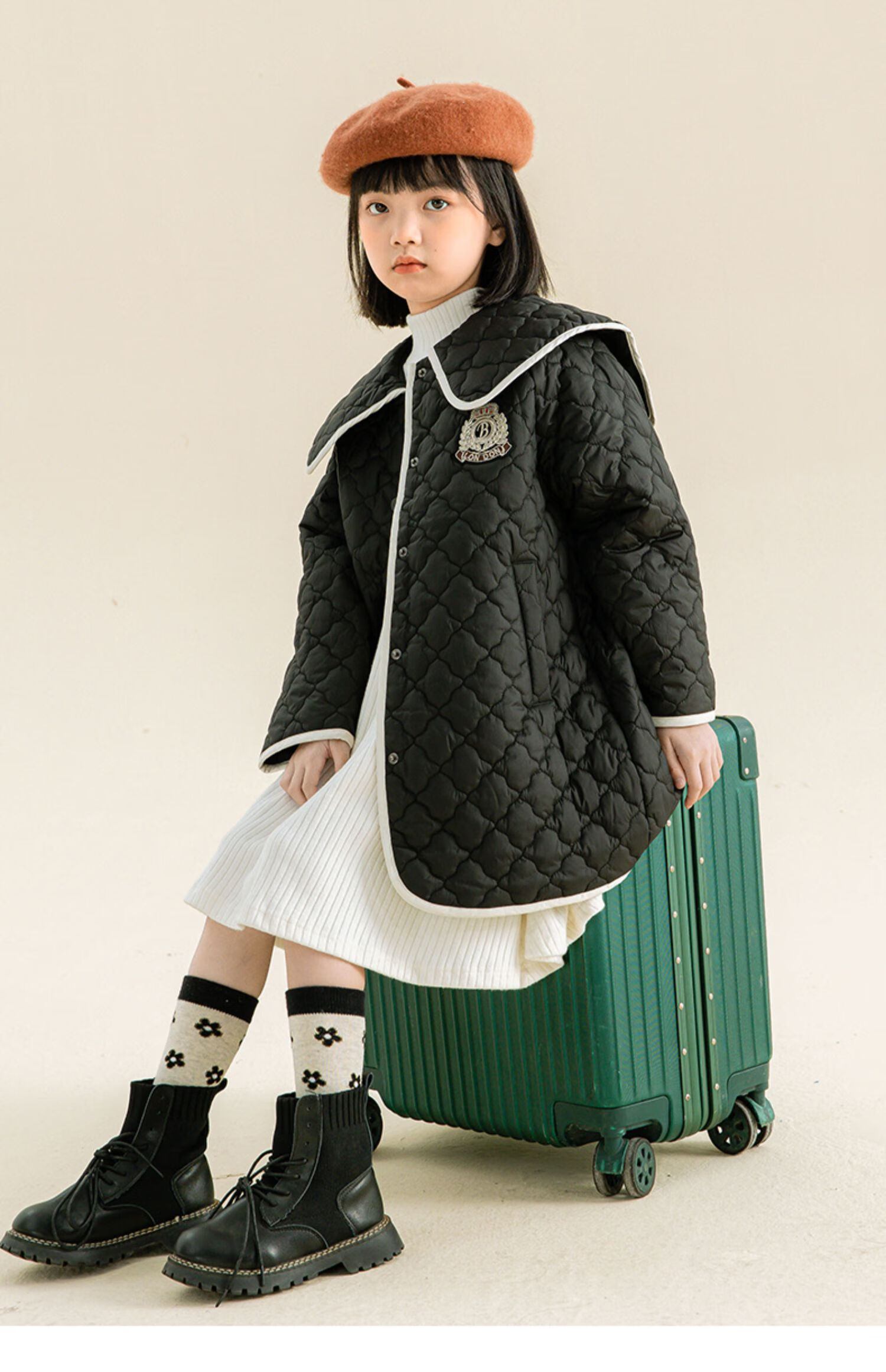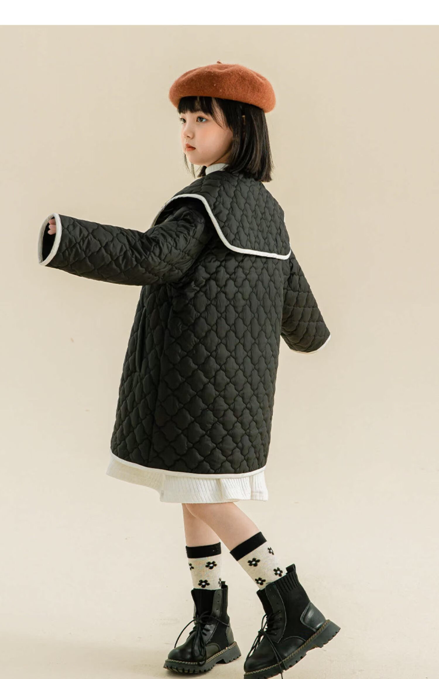淘町女童冬季棉衣新款保暖中长款娃娃领棉袄休闲洋气时髦冬装外套 黑色 150