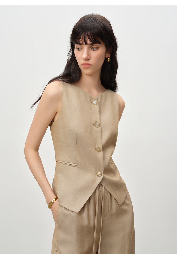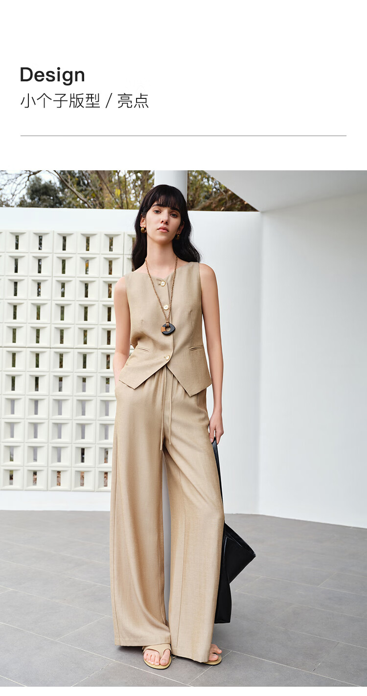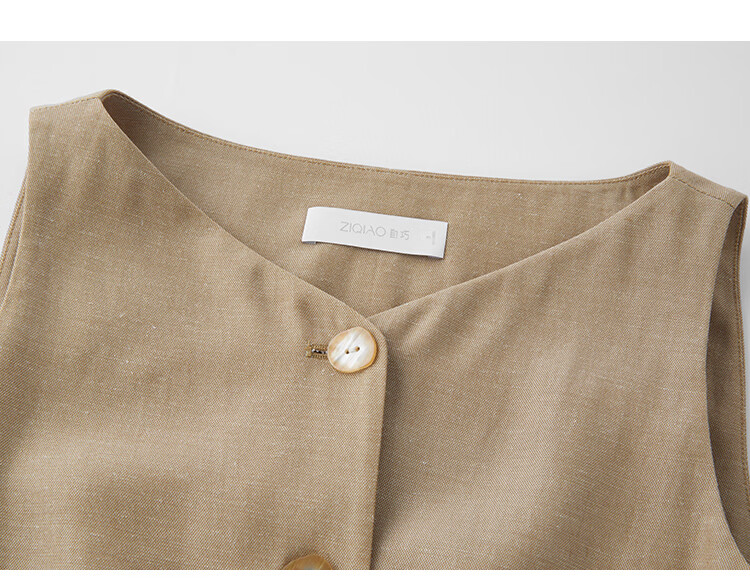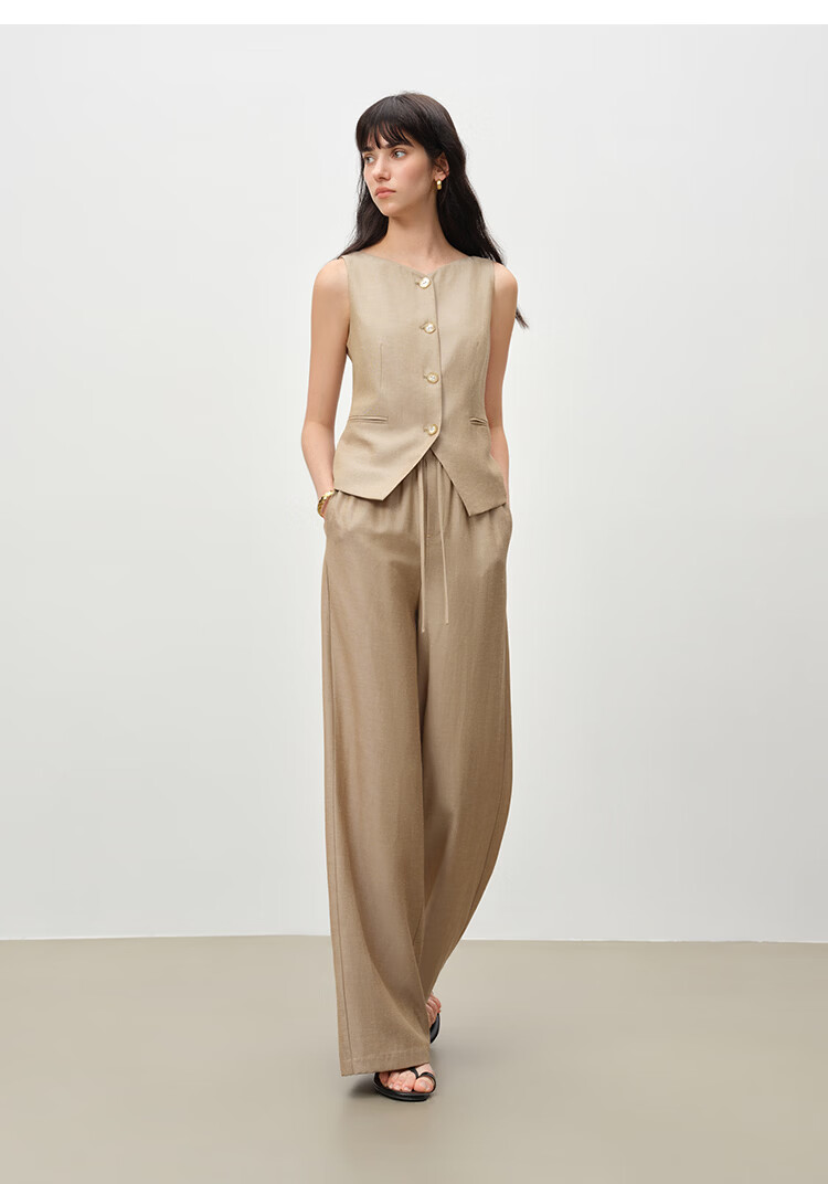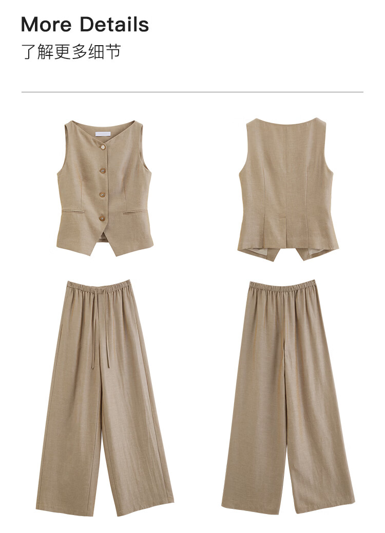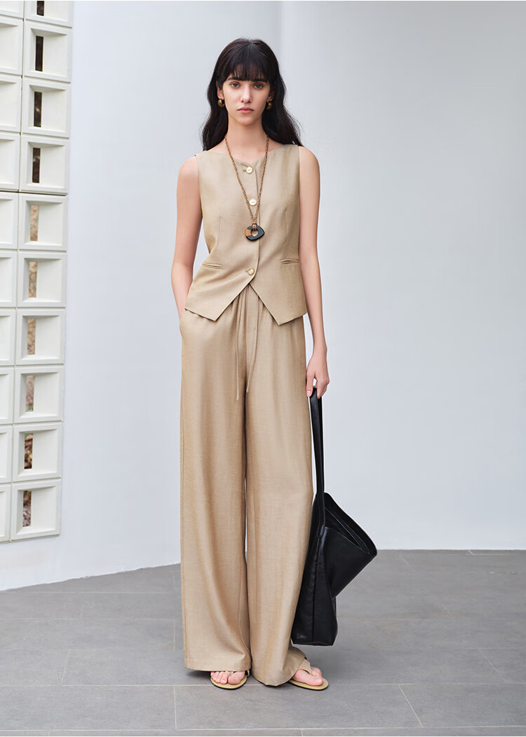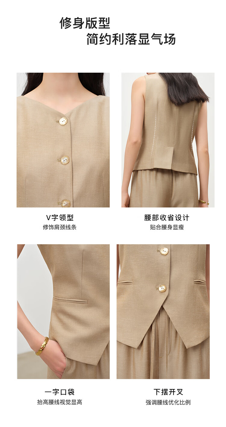 自巧小个子复古老钱卡其色收腰马甲&直筒拖地裤套装女2026春新品 浅卡其马夹 XXS (尺码:1)