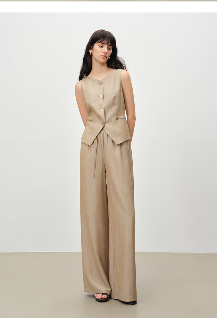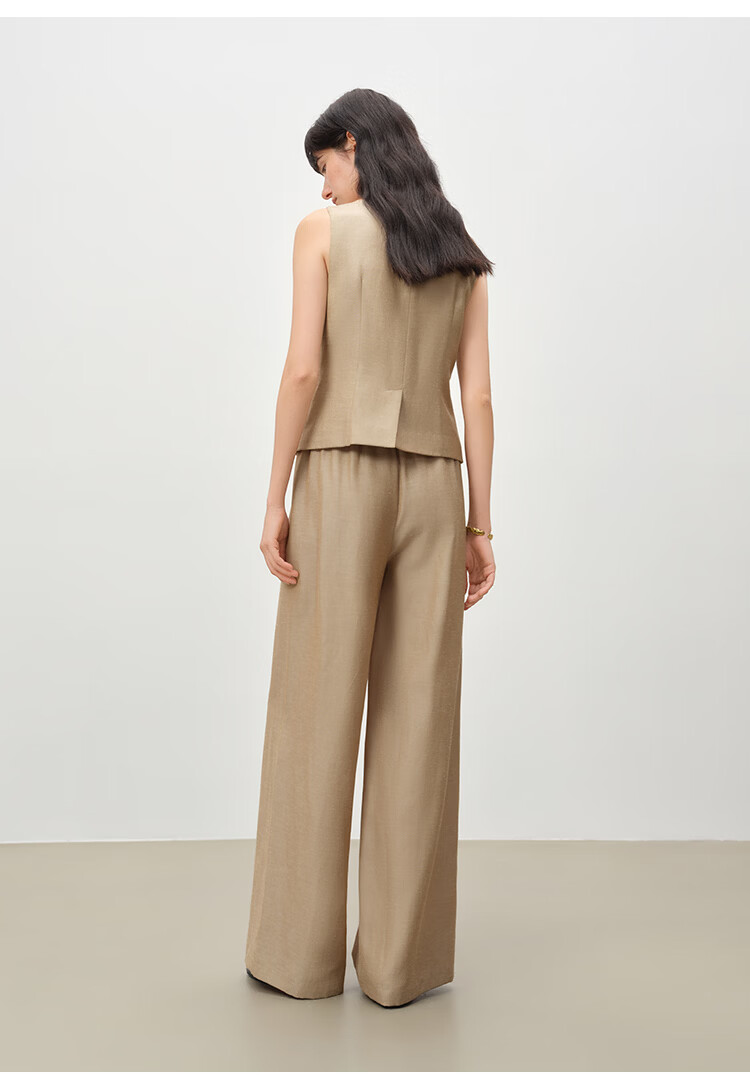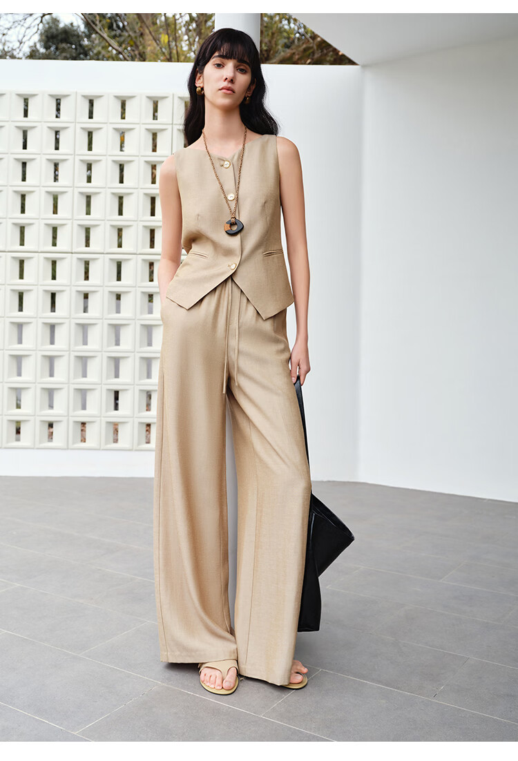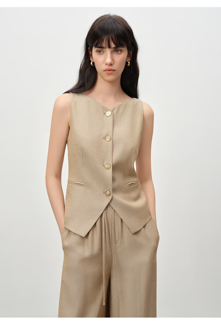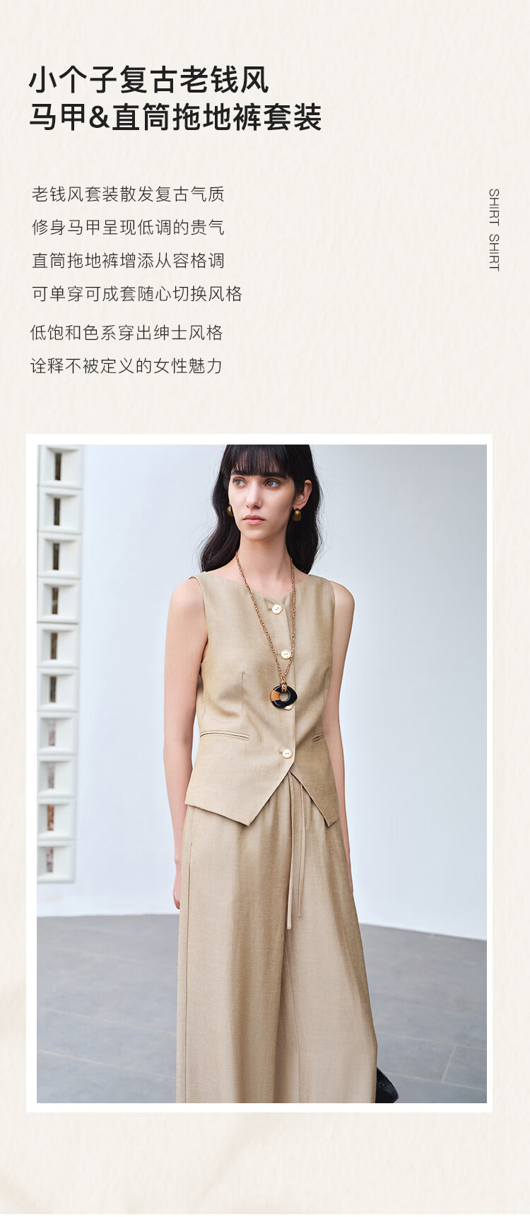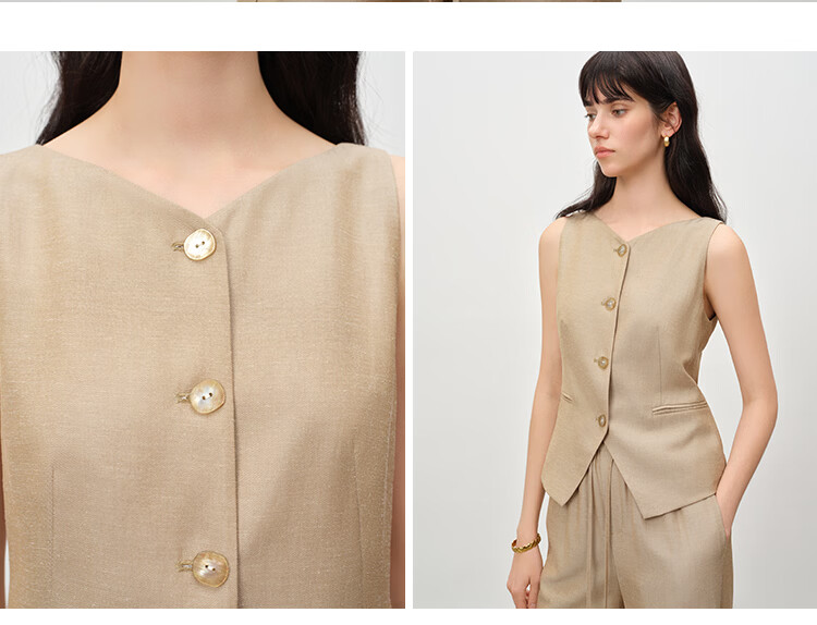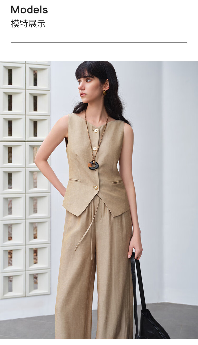 自巧小个子复古老钱卡其色收腰马甲&直筒拖地裤套装女2026春新品 浅卡其马夹 XXS (尺码:1)