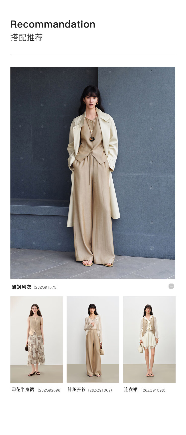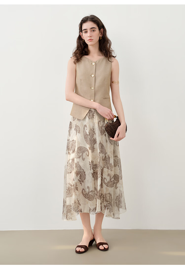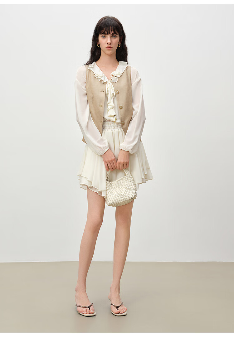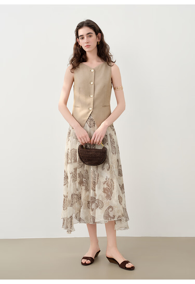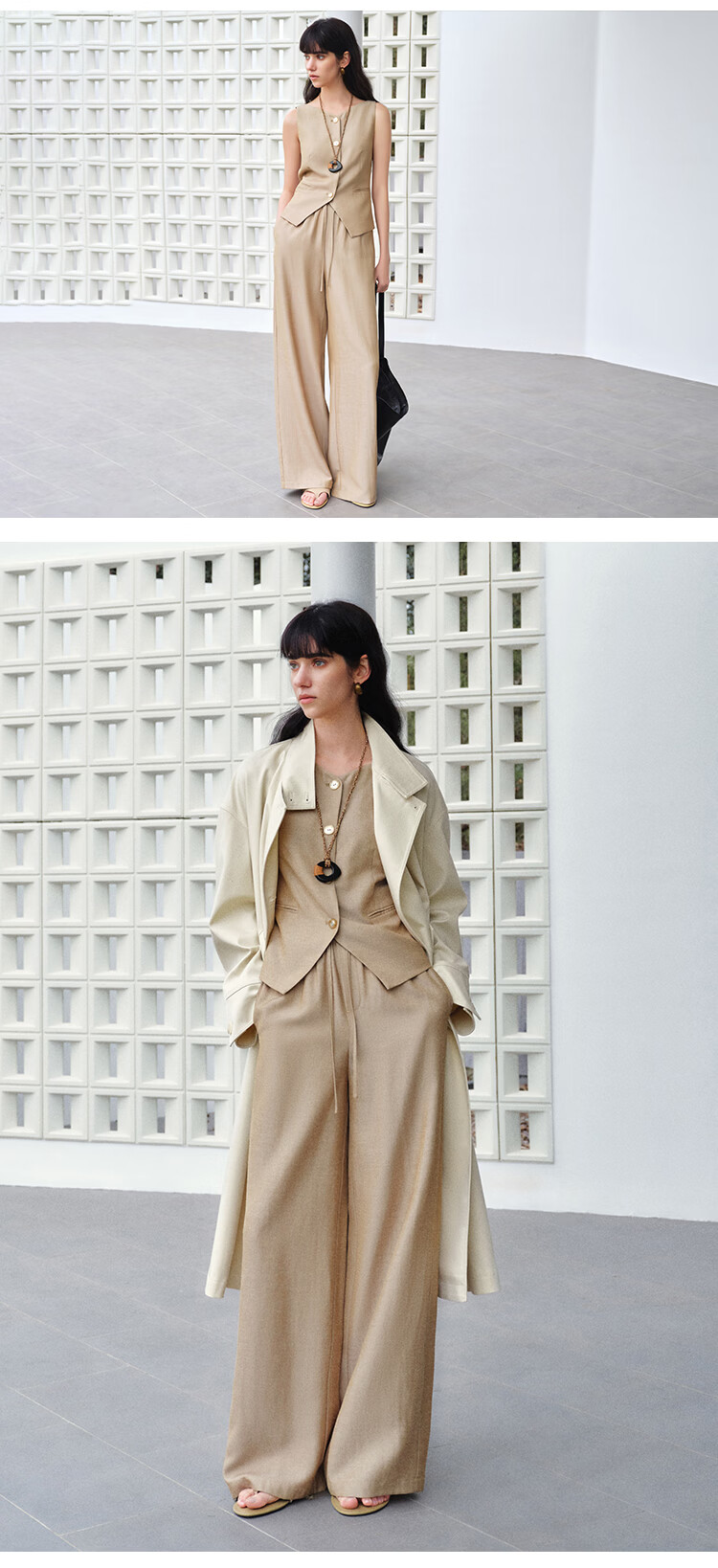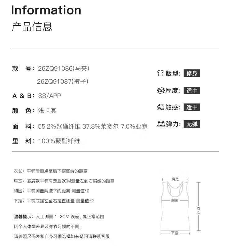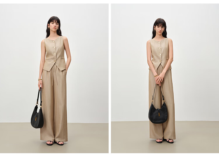 自巧小个子复古老钱卡其色收腰马甲&直筒拖地裤套装女2026春新品 浅卡其马夹 XXS (尺码:1)