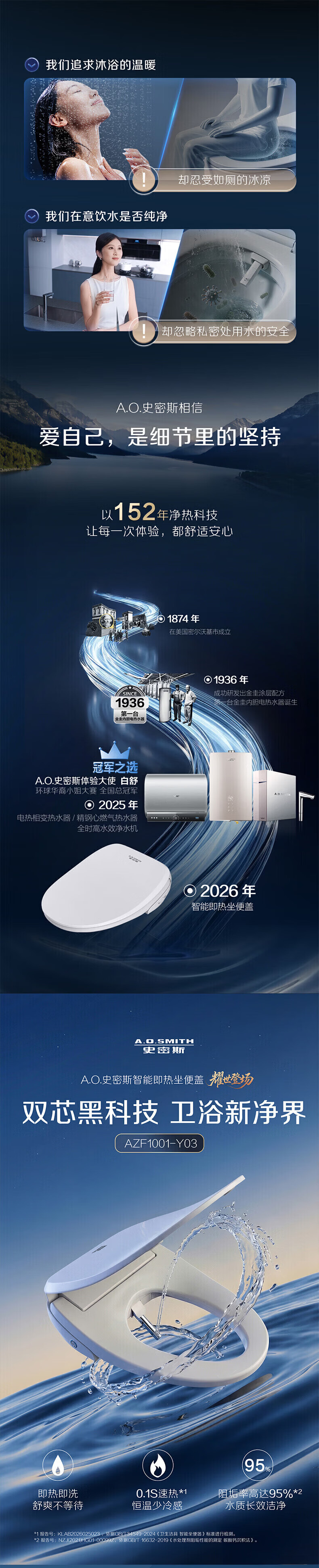 史密斯(A.O.SMITH)【厨卫套装最高立省1300元】即热式智能马桶盖+直饮净水器 1600大流量热水CDR2000S2 【比分开买至高立省800元】