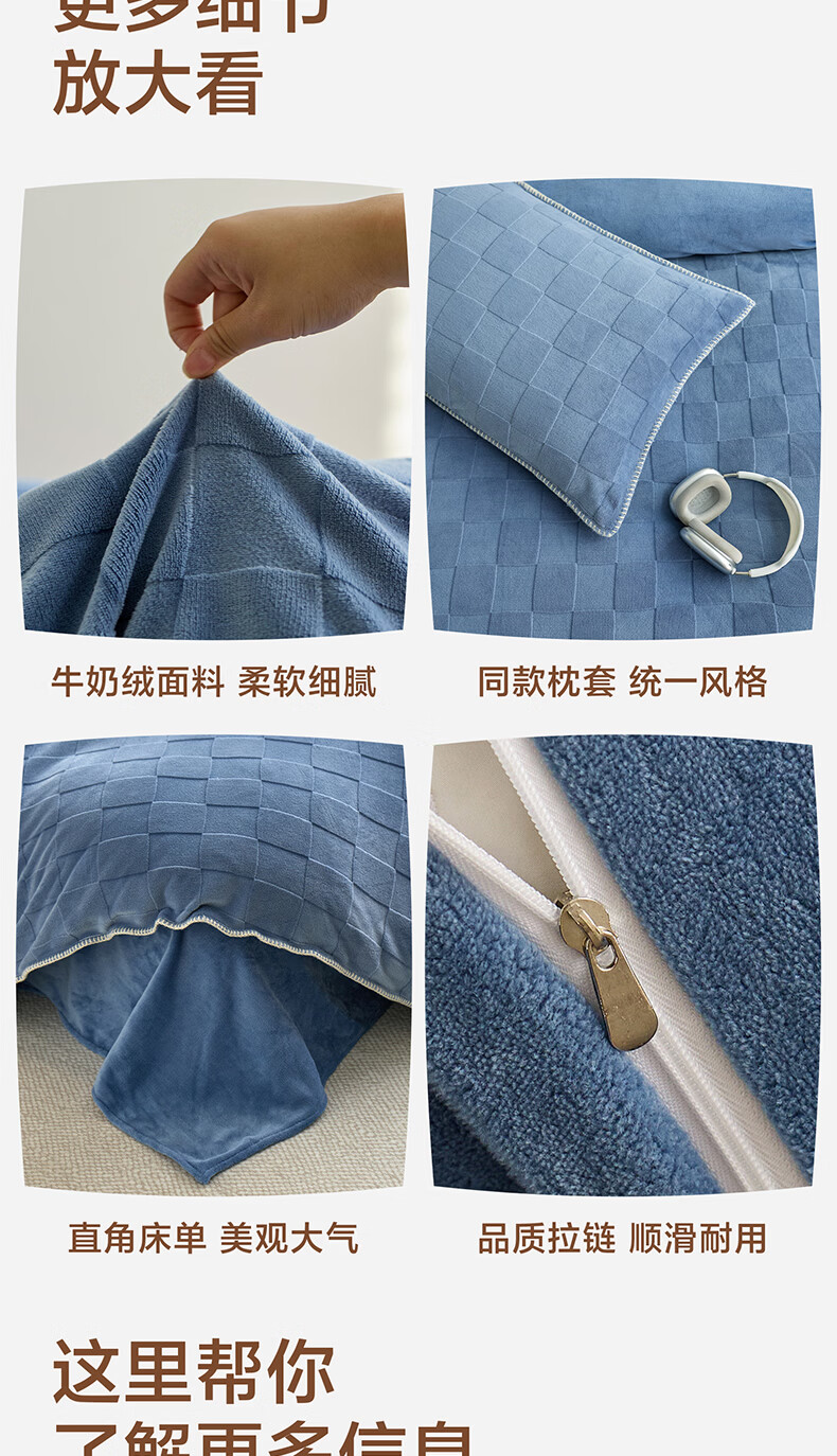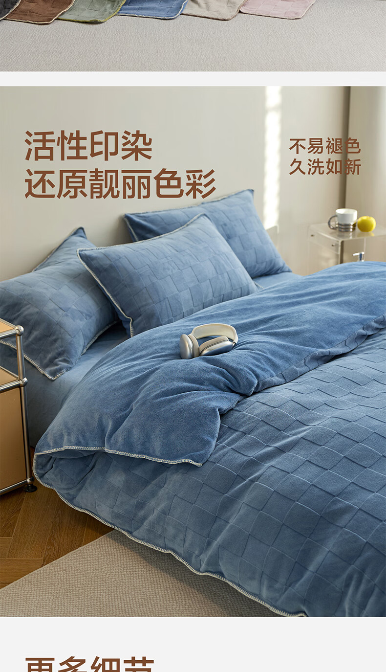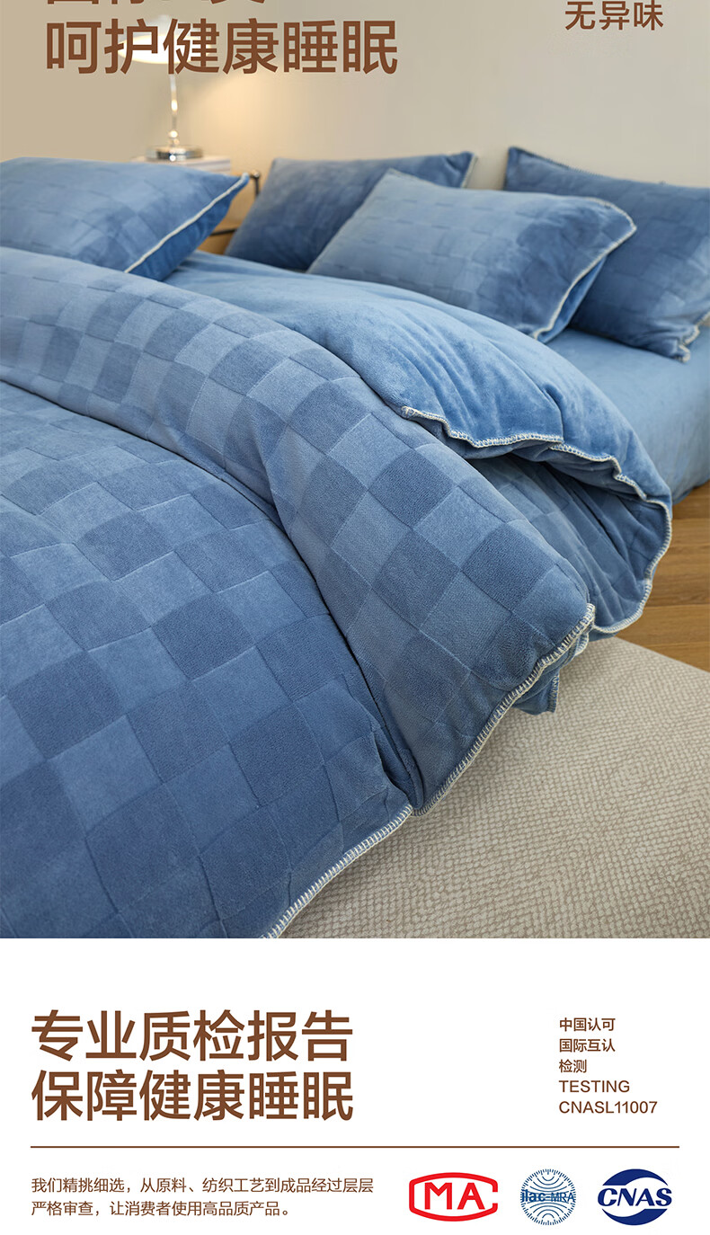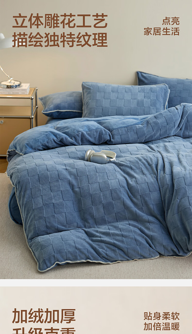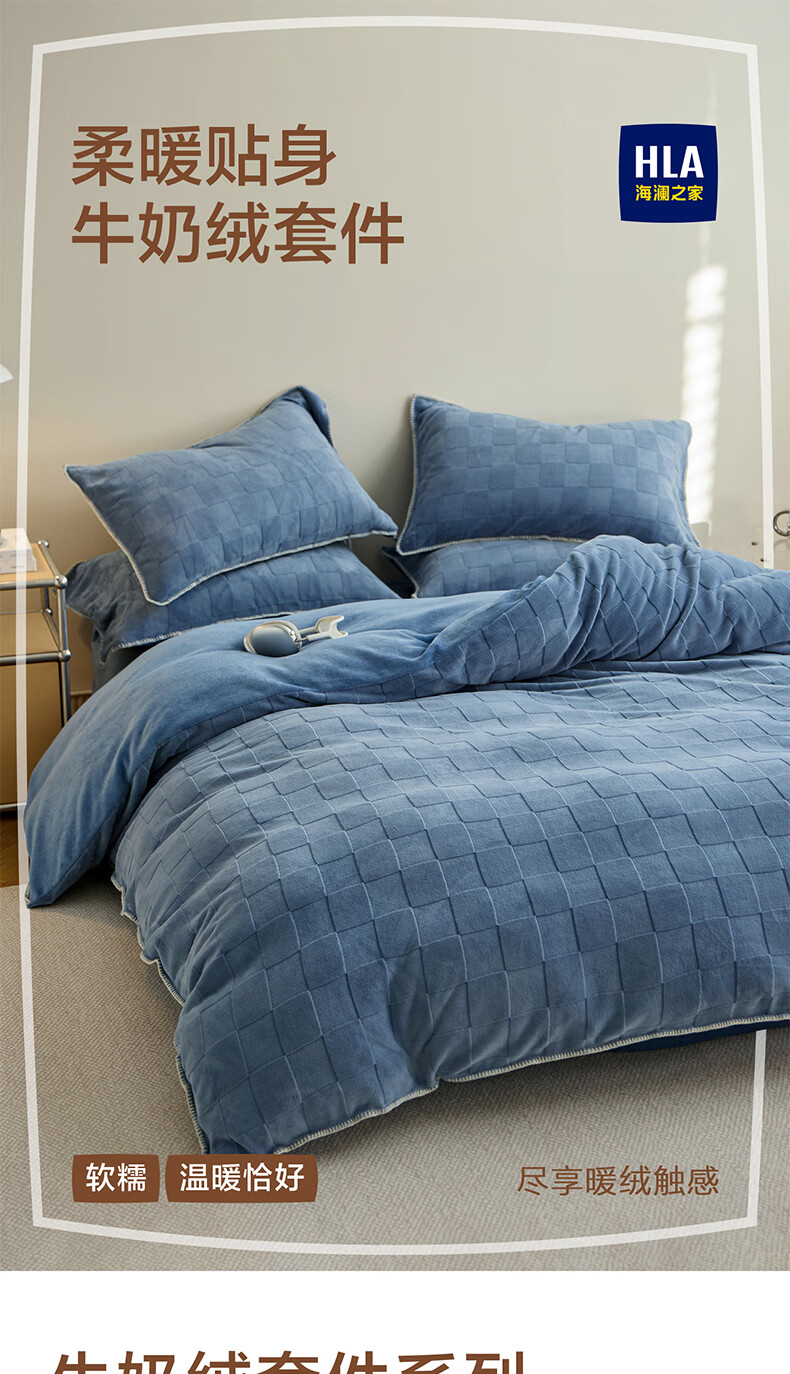 海澜之家(HLA)A类牛奶绒床上四件套双面绒2025新被套冬季加绒加厚高端轻奢套件 艾茵蓝【A类加厚加密牛奶绒 不易掉毛】 三件套被套150*200 床单款 180*230