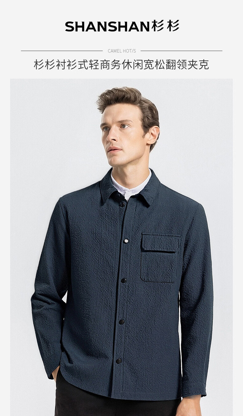 SHANSHAN杉杉【可机洗抗皱】春秋薄款夹克男易打理宽松休闲外套衣服 藏青色 L /175