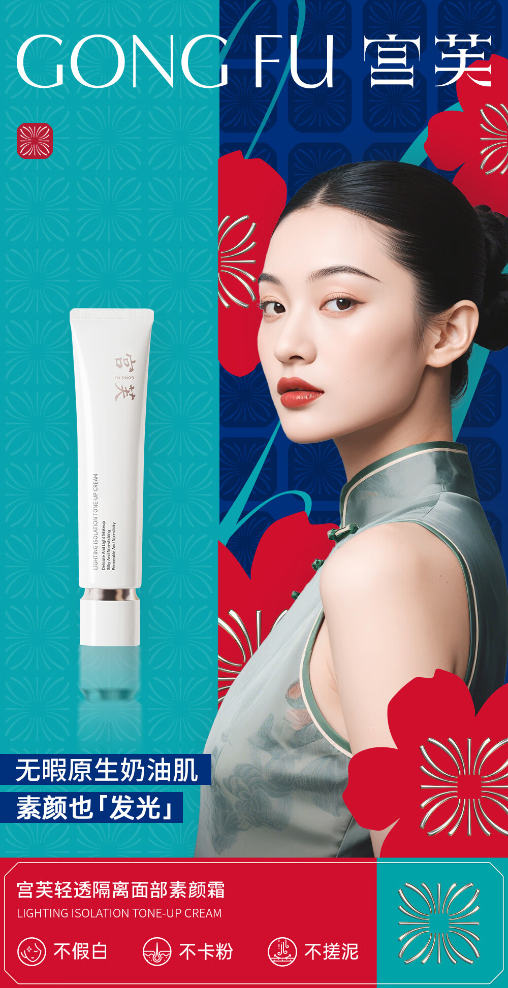 宫芙面霜素颜霜防光晒隔离保湿提亮遮瑕三合一懒人裸妆40g生日礼物