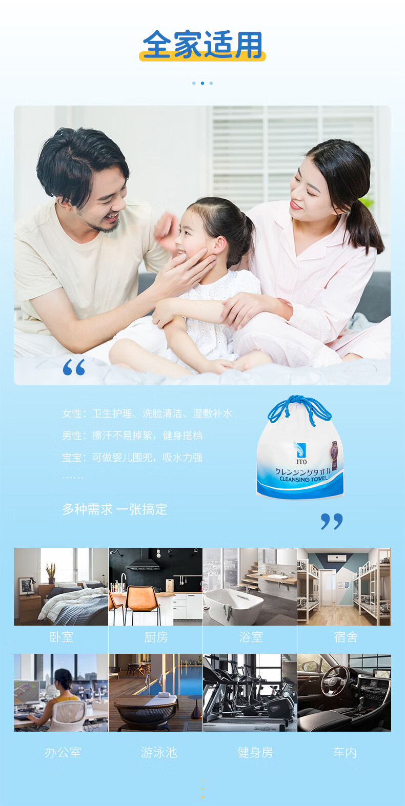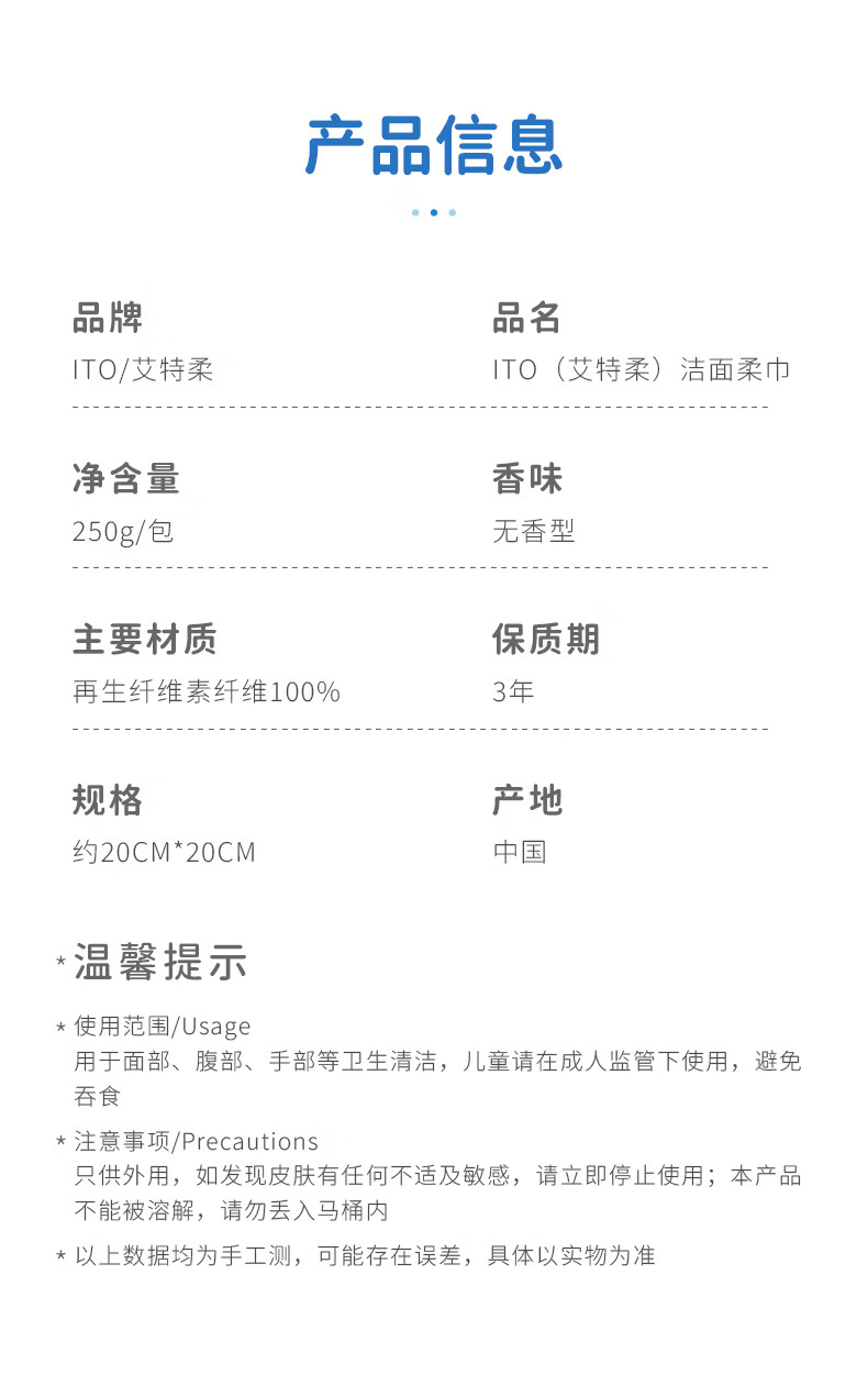 ITO(艾特柔)一次性洗脸巾70节*3卷筒擦脸巾悬挂式洁面巾加厚洗面巾纸绵柔毛巾