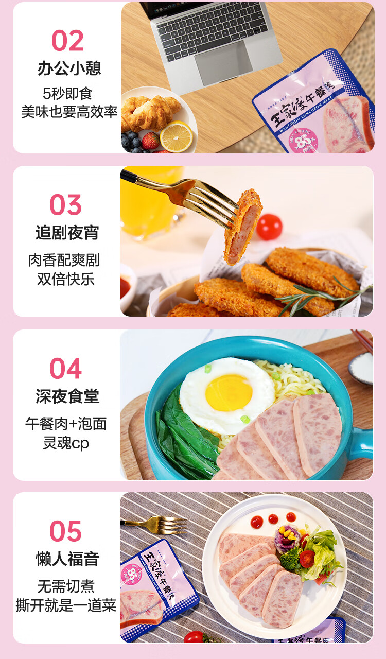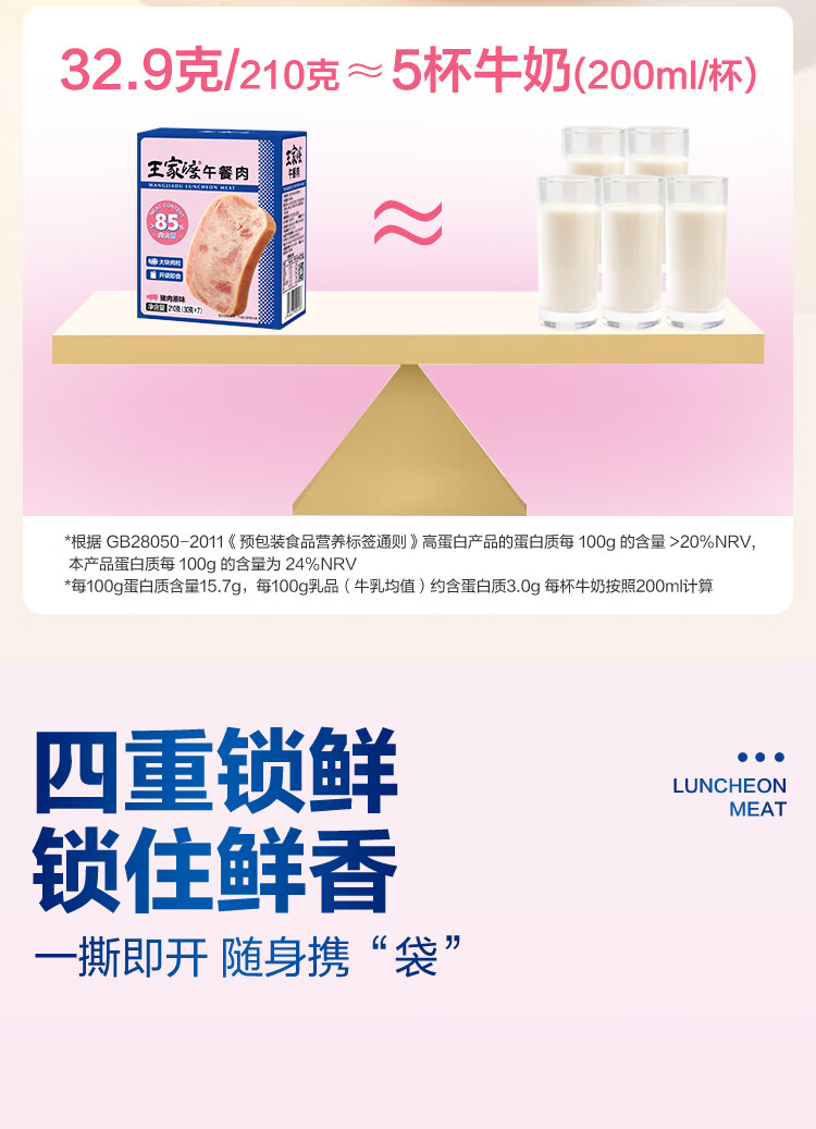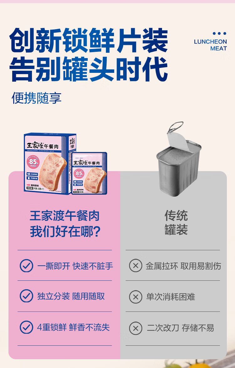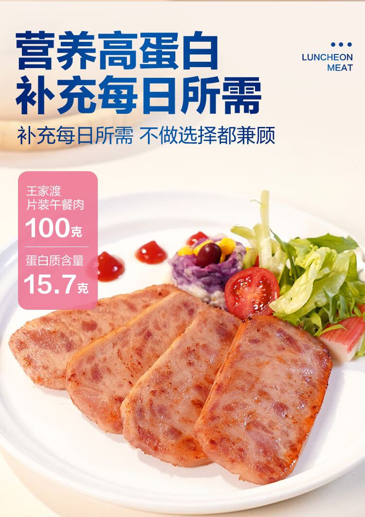 王家渡午餐肉独立包装210g早餐三明治火腿片香肠火锅食材春节也送货