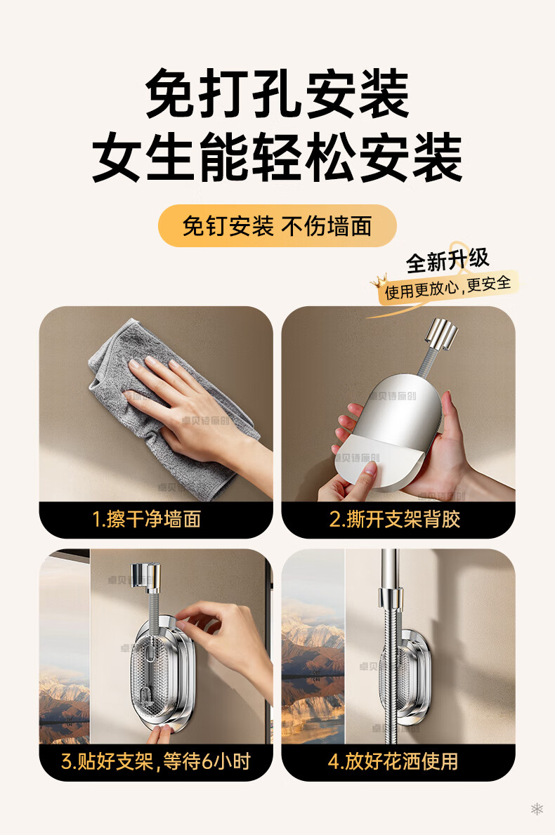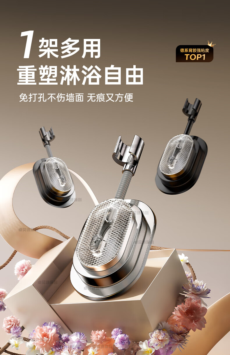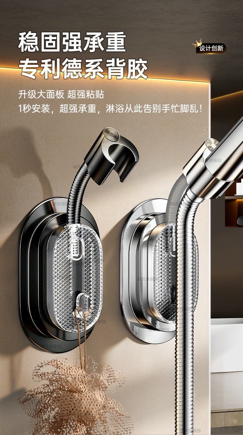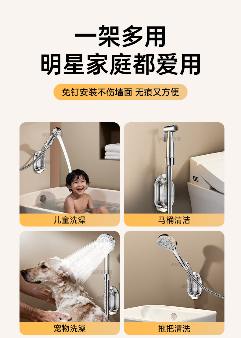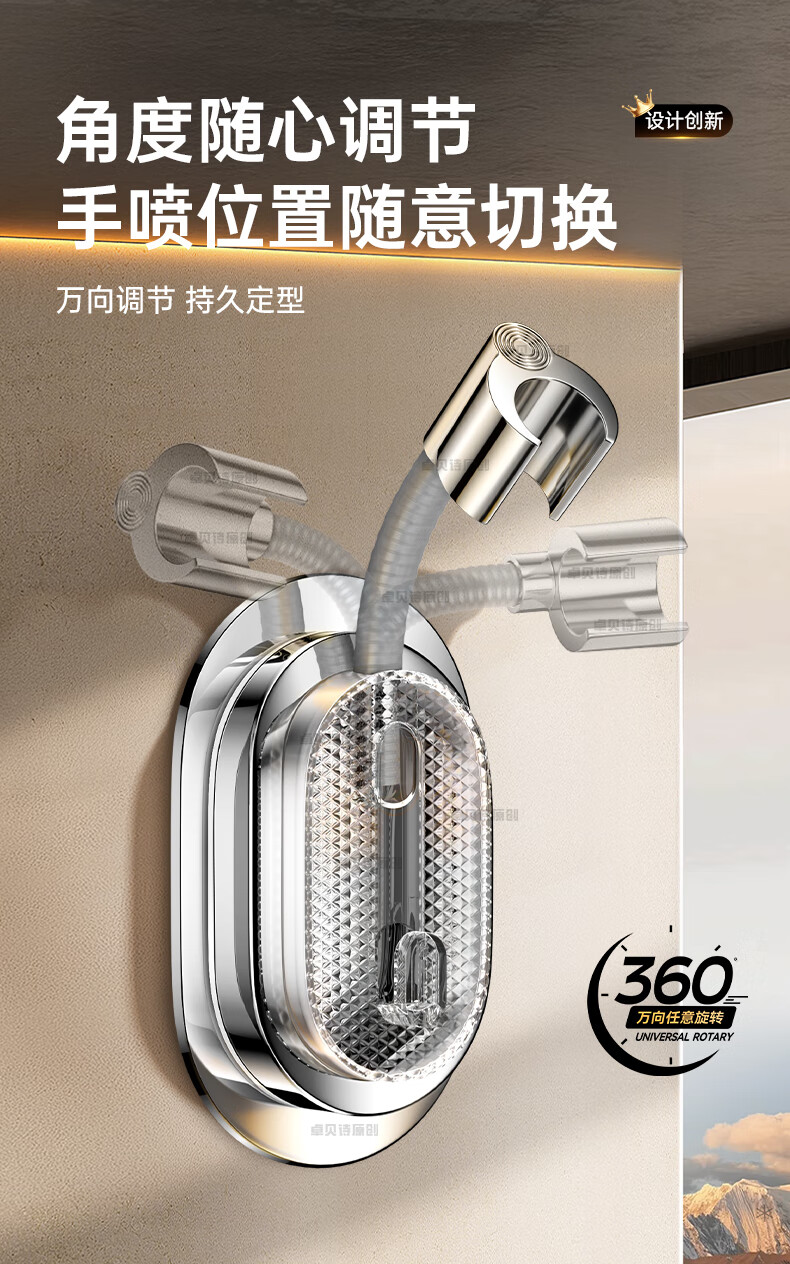 卓贝诗花洒支架免打孔淋浴头固定器强力吸盘万向调节可移动浴室淋浴配件 星空银【升级大吸盘】免打孔支架 升级双重吸附丨可大角度调节丨掉落包赔