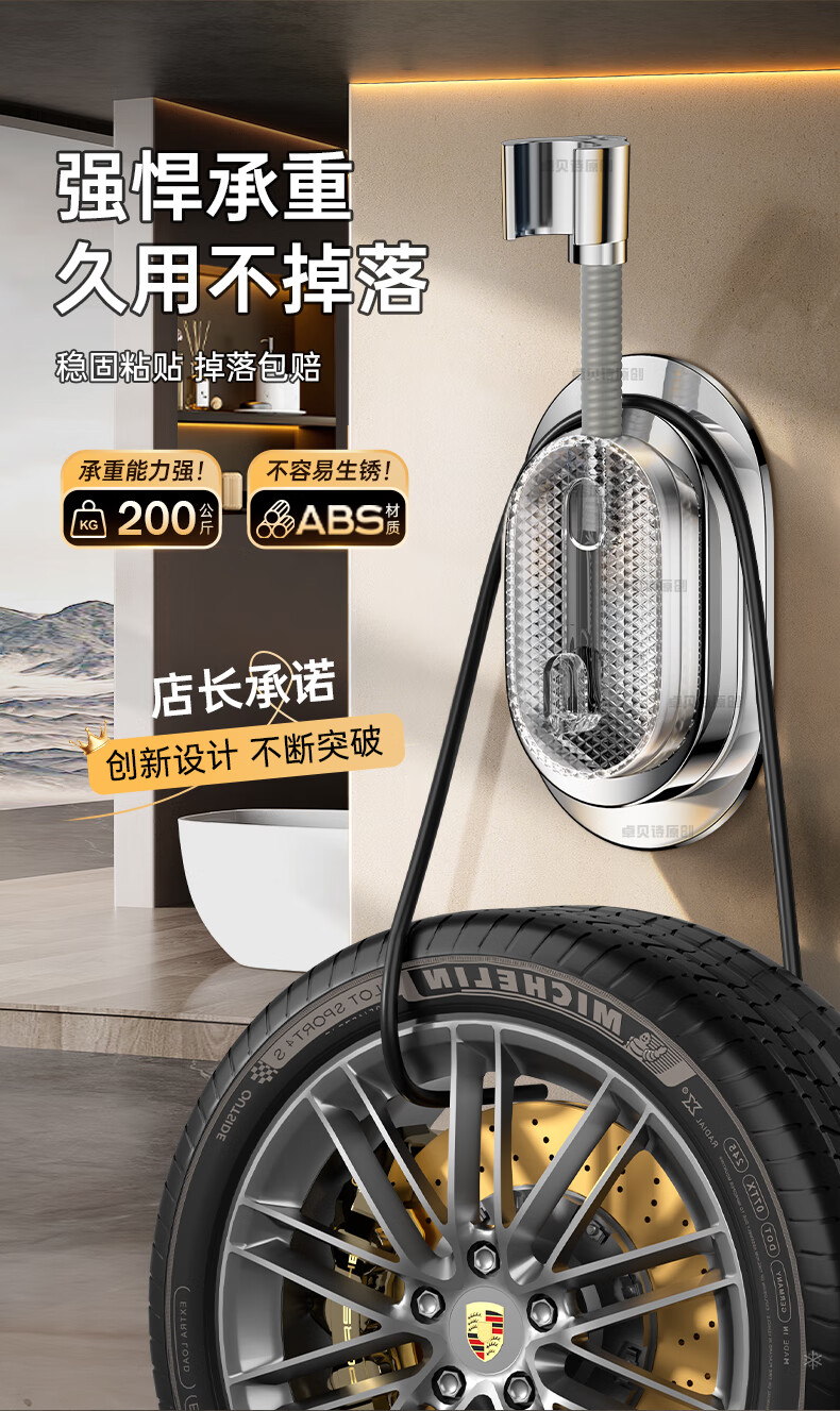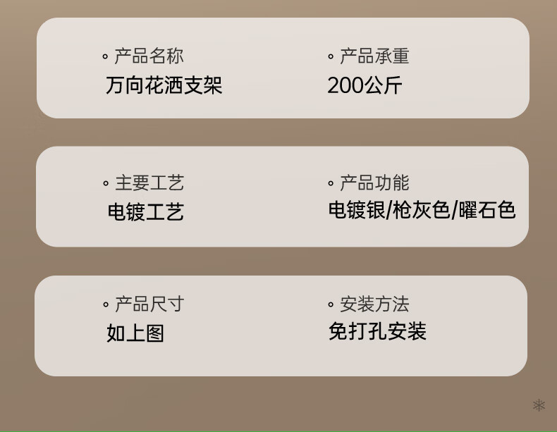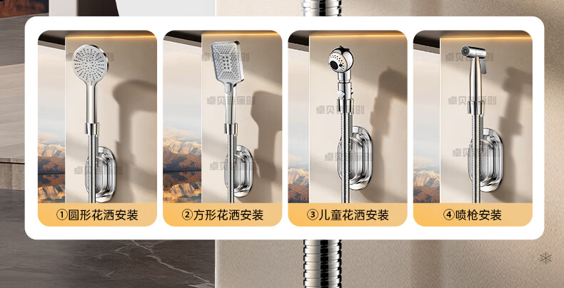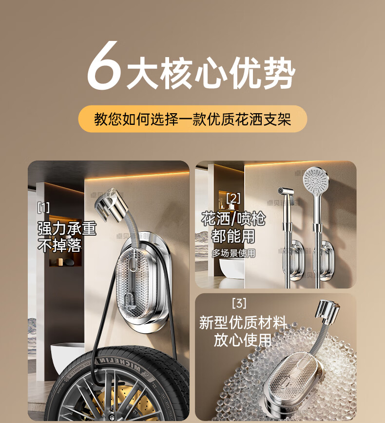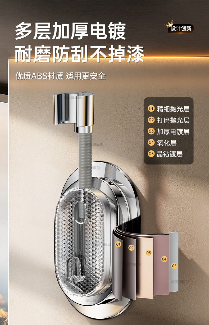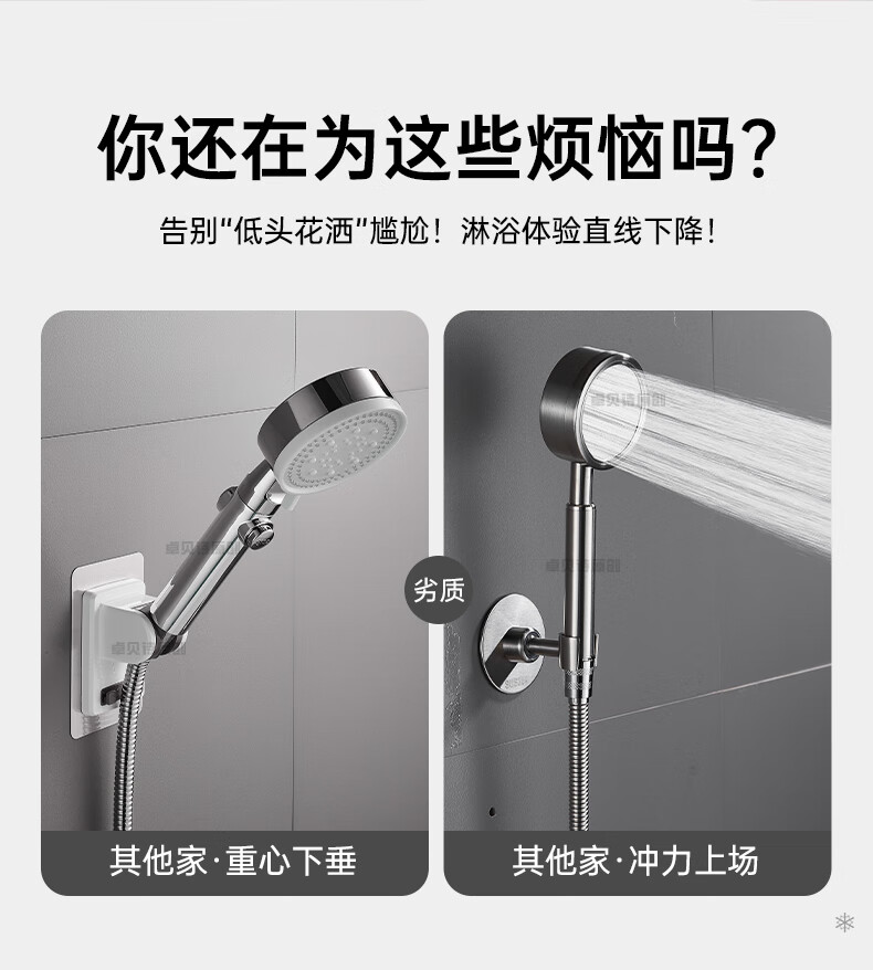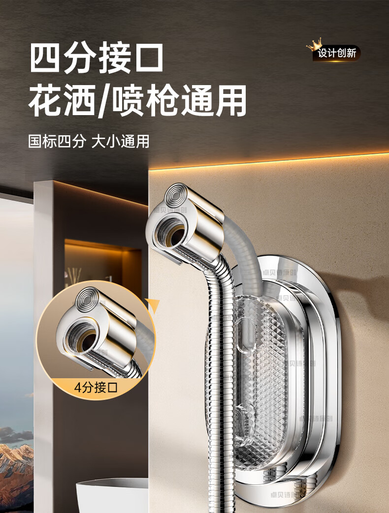 卓贝诗花洒支架免打孔淋浴头固定器强力吸盘万向调节可移动浴室淋浴配件 星空银【升级大吸盘】免打孔支架 升级双重吸附丨可大角度调节丨掉落包赔