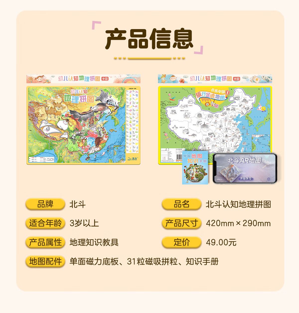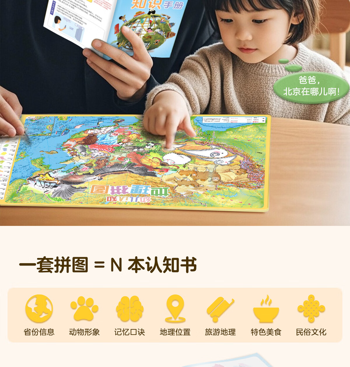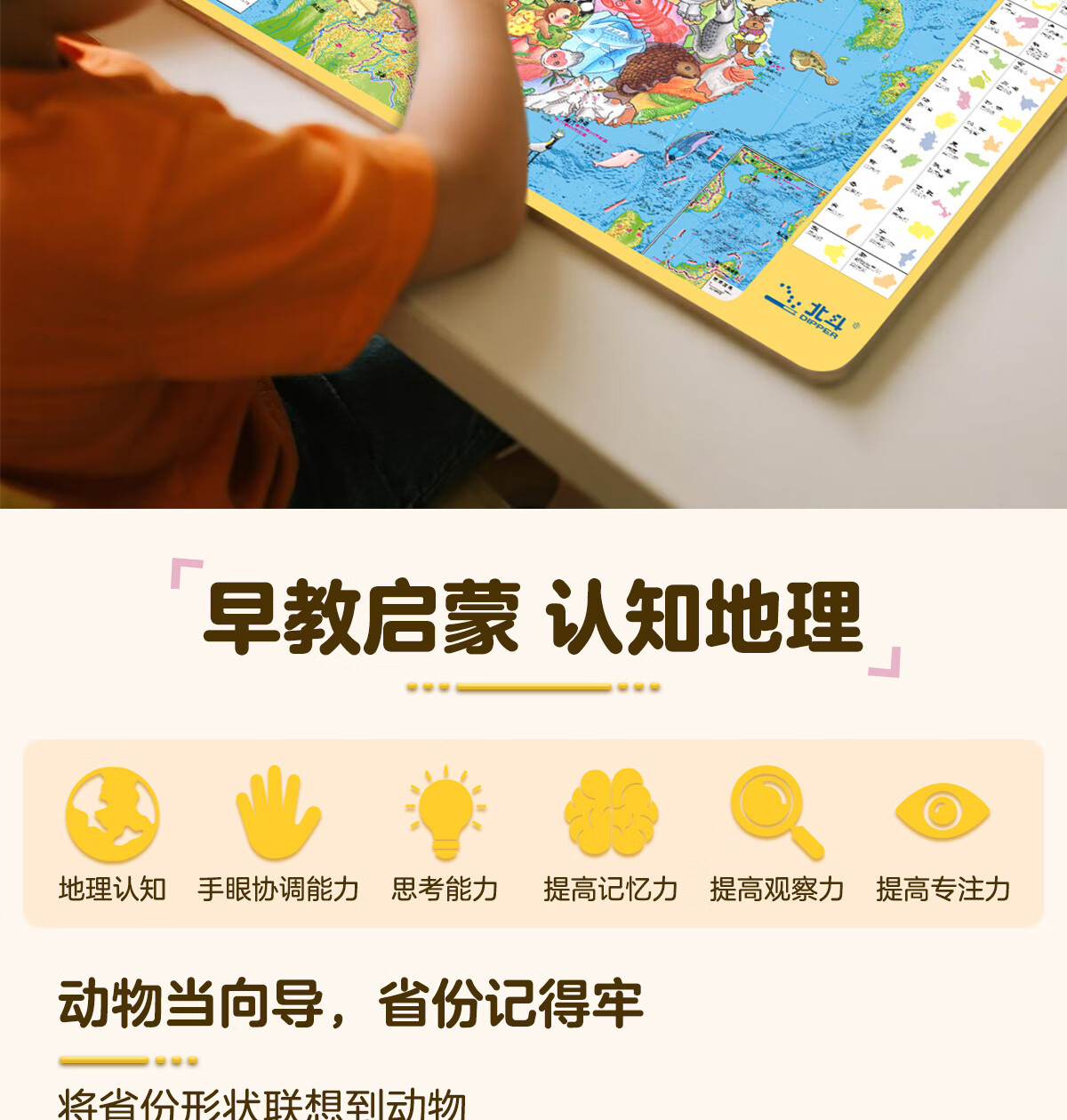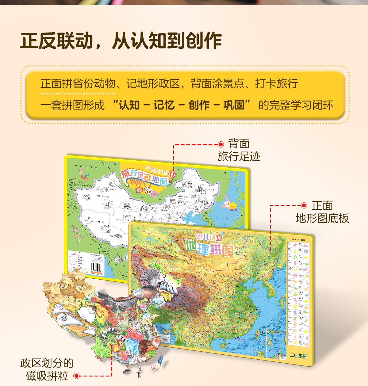 北斗(DIPPER)【赠品多样】北斗幼儿认知地理拼图中国拼图+手绘中国世界+动物地图磁吸拼图儿童益智积木玩具 幼儿认知地理拼图【拍一发七】