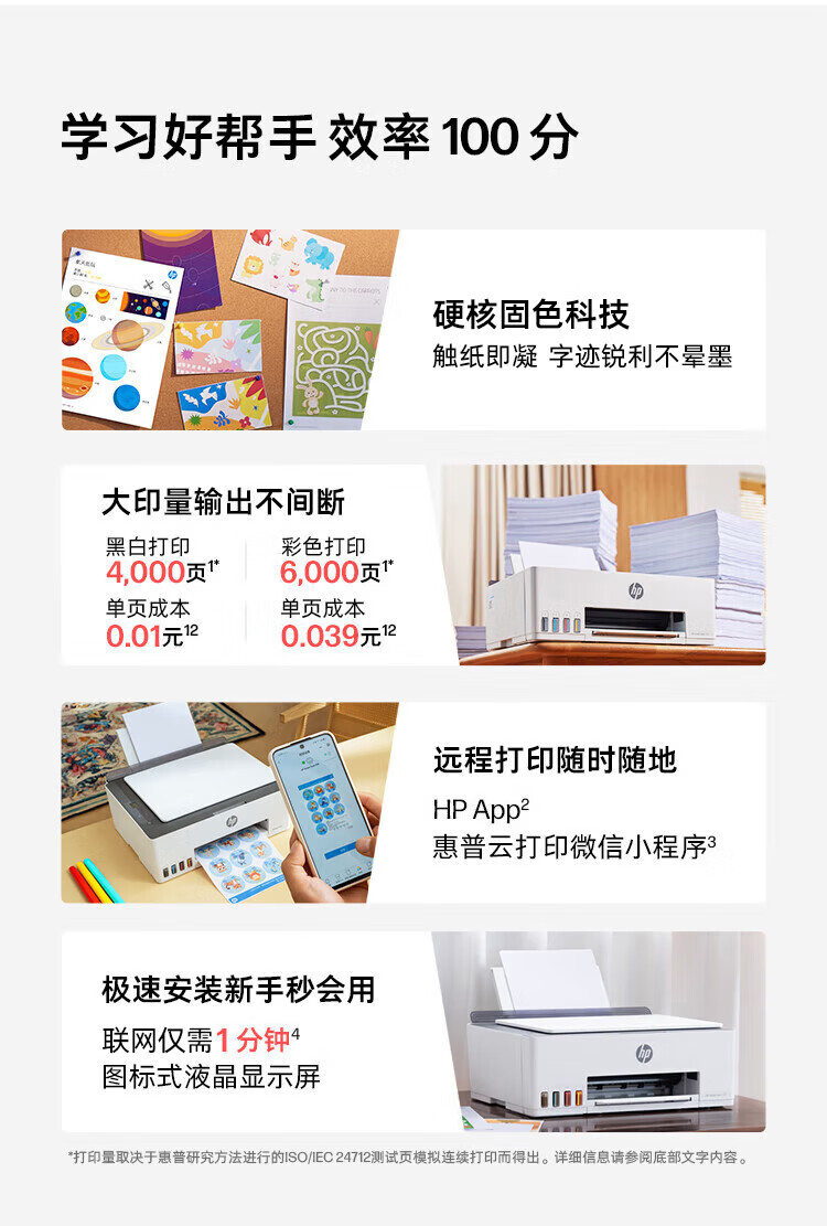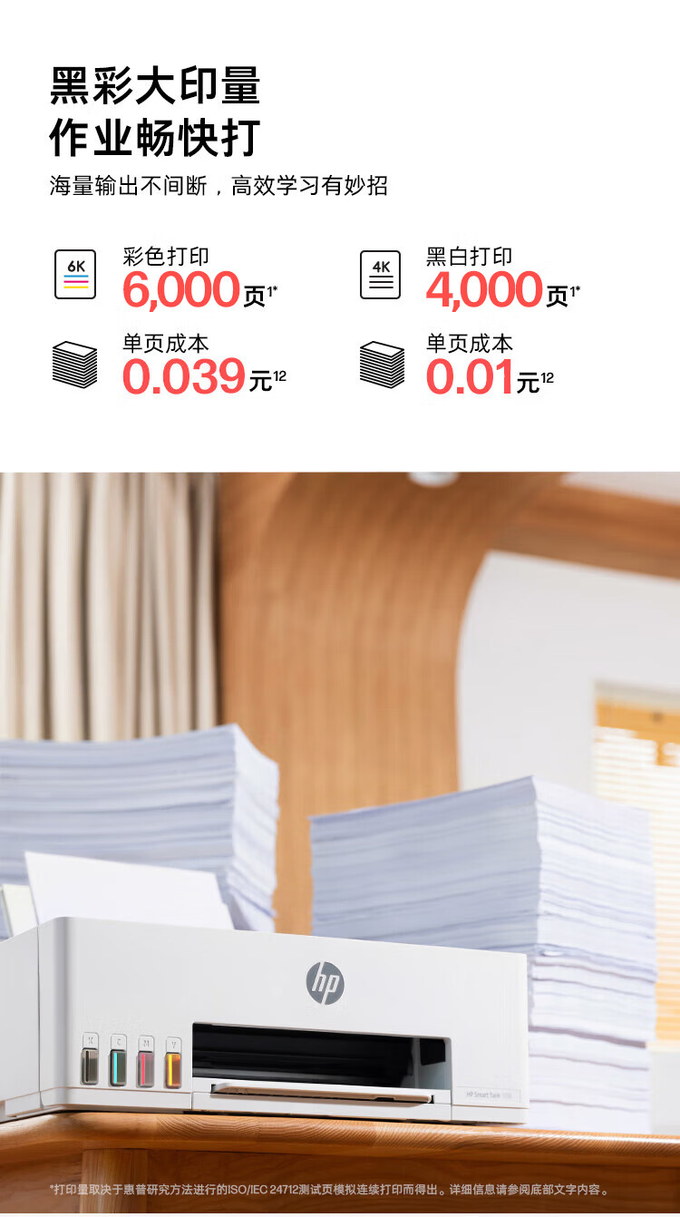 惠普(HP)598 家用学习连供无线打印一体机 大容量可加墨多功能打印复印扫描 彩色家庭打印机