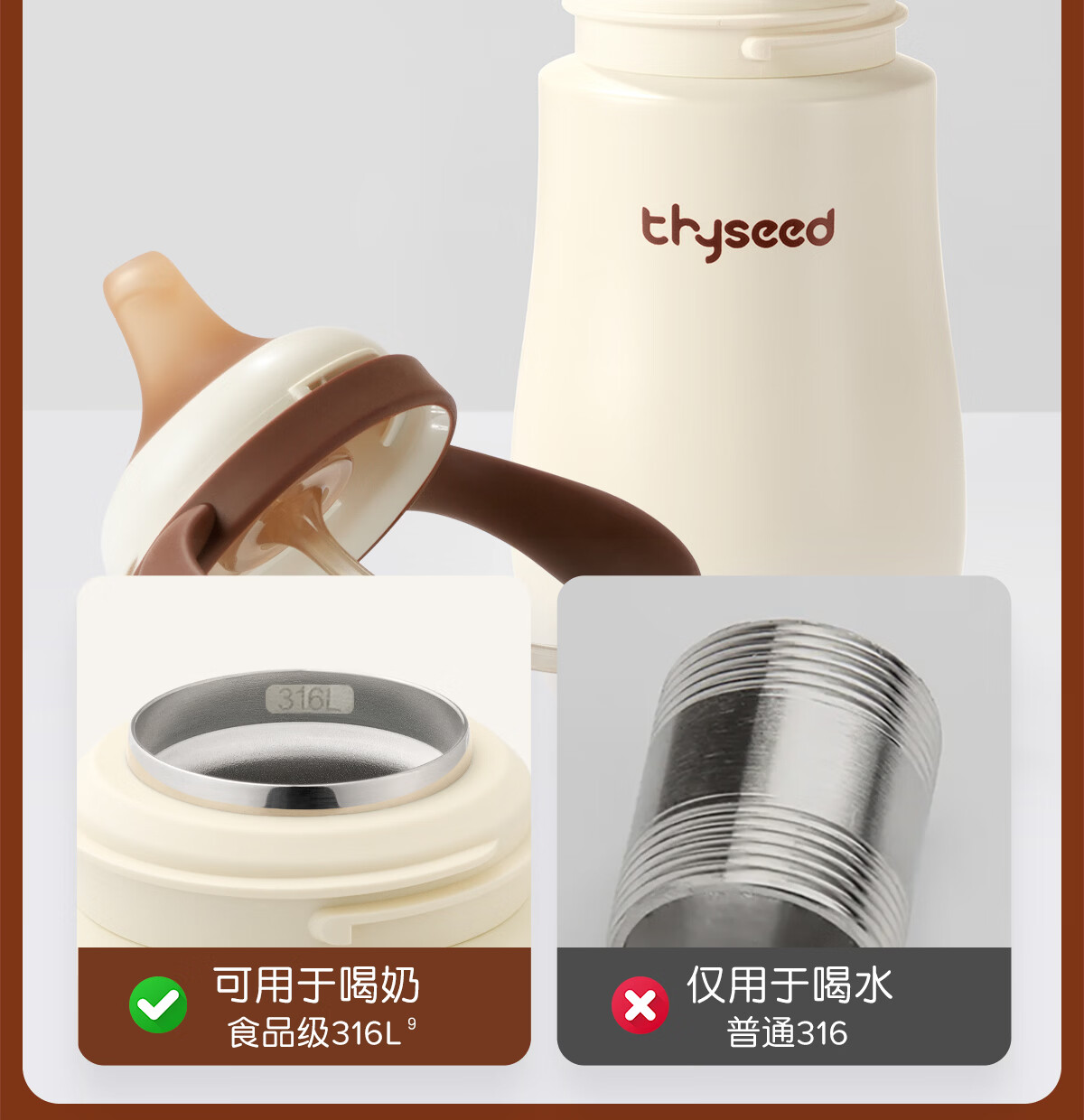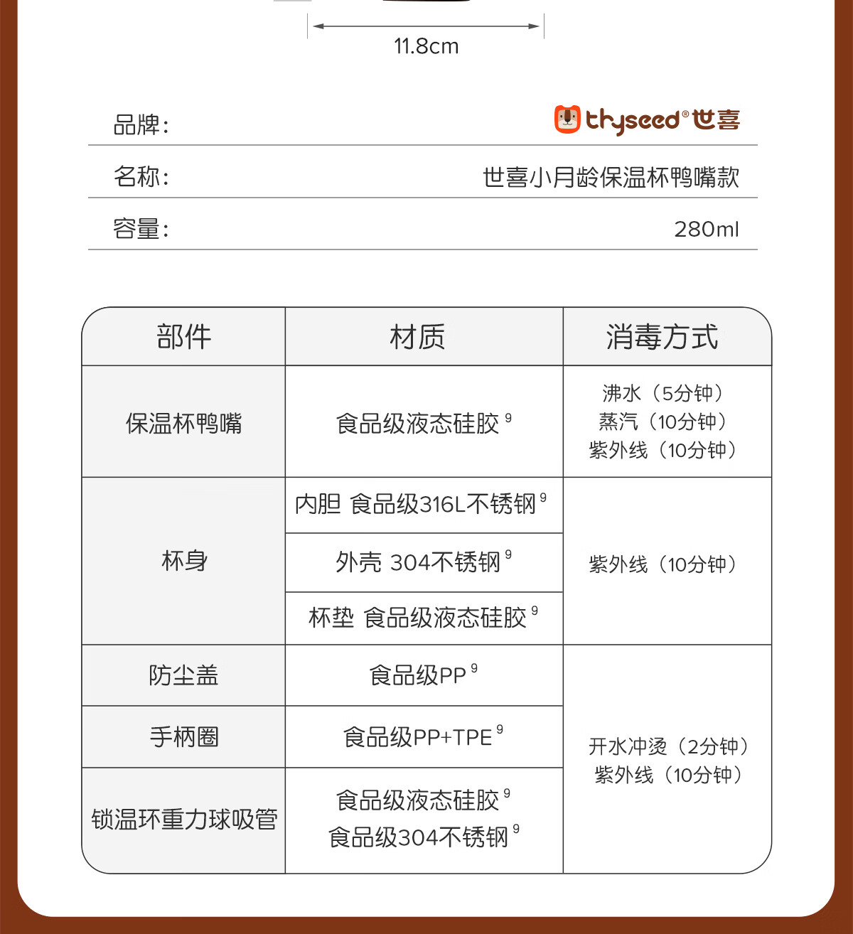 世喜婴儿保温杯幼儿小月龄鸭嘴杯316L不锈钢学饮杯保温奶瓶6个月以上