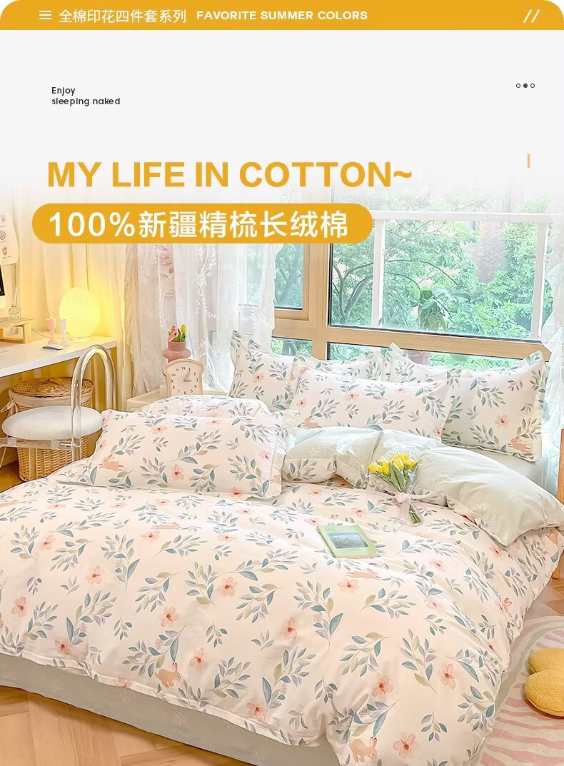 无印良品新疆长绒棉床上四件套纯棉床单被套全棉三件套床上用品床笠款床品 伯爵夫人【精梳全棉 亲肤裸睡】 1.2m 床单款 三件套-被套150x200cm