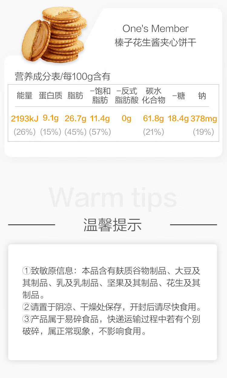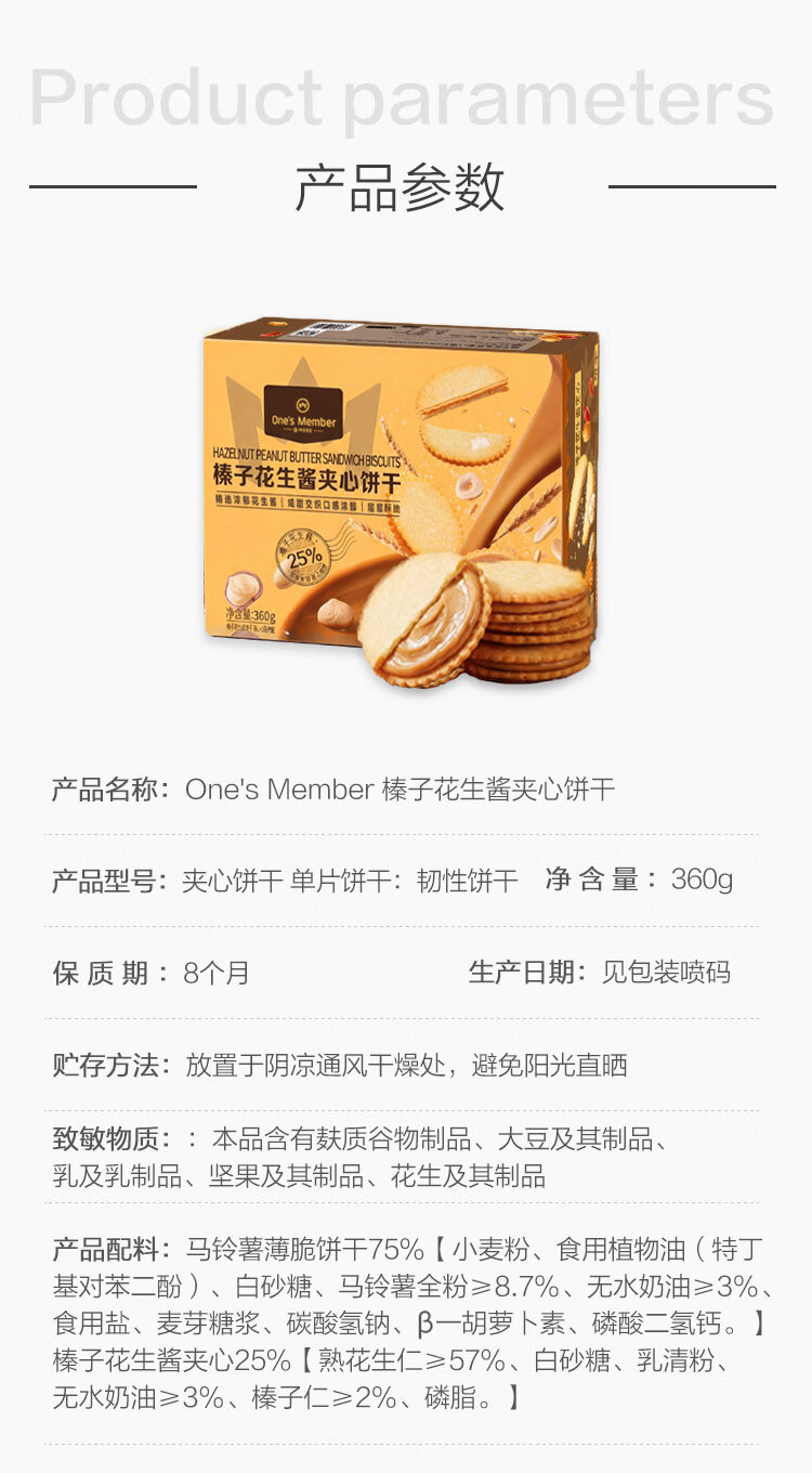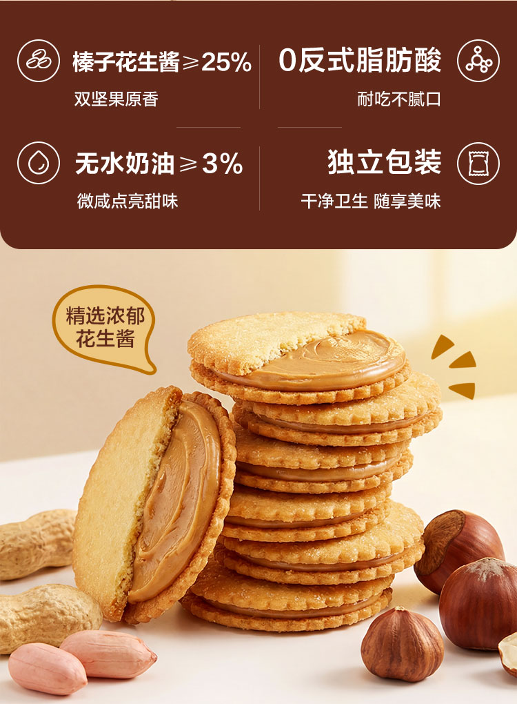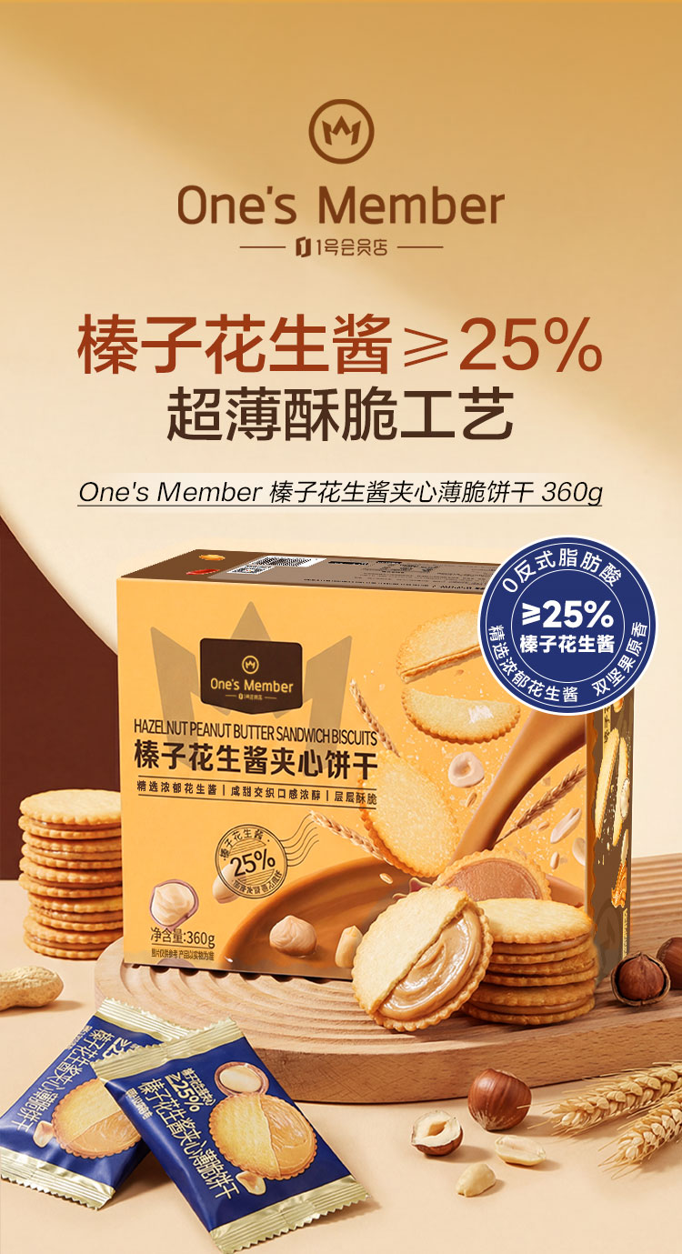 1号会员店榛子花生酱夹心薄脆饼干360g