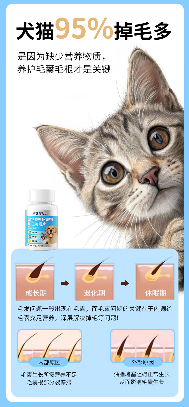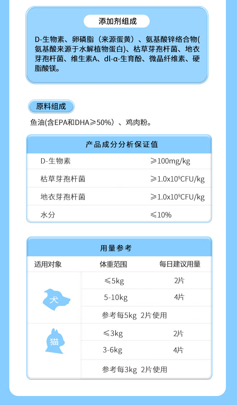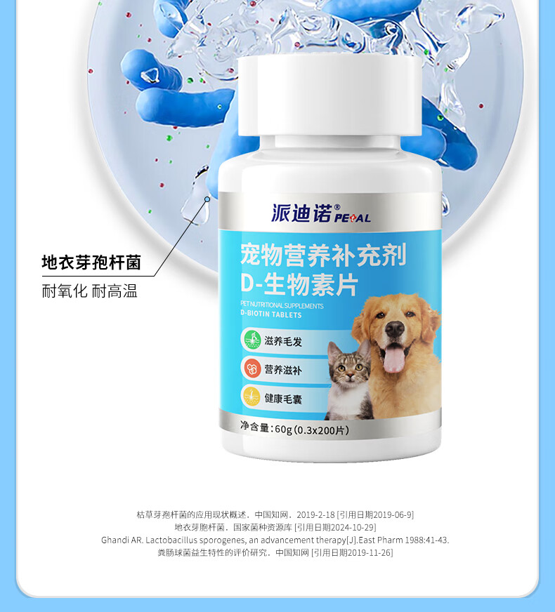 派迪诺宠物D-生物素片猫咪美毛防掉毛狗狗鱼油卵磷脂犬猫专用多维营养