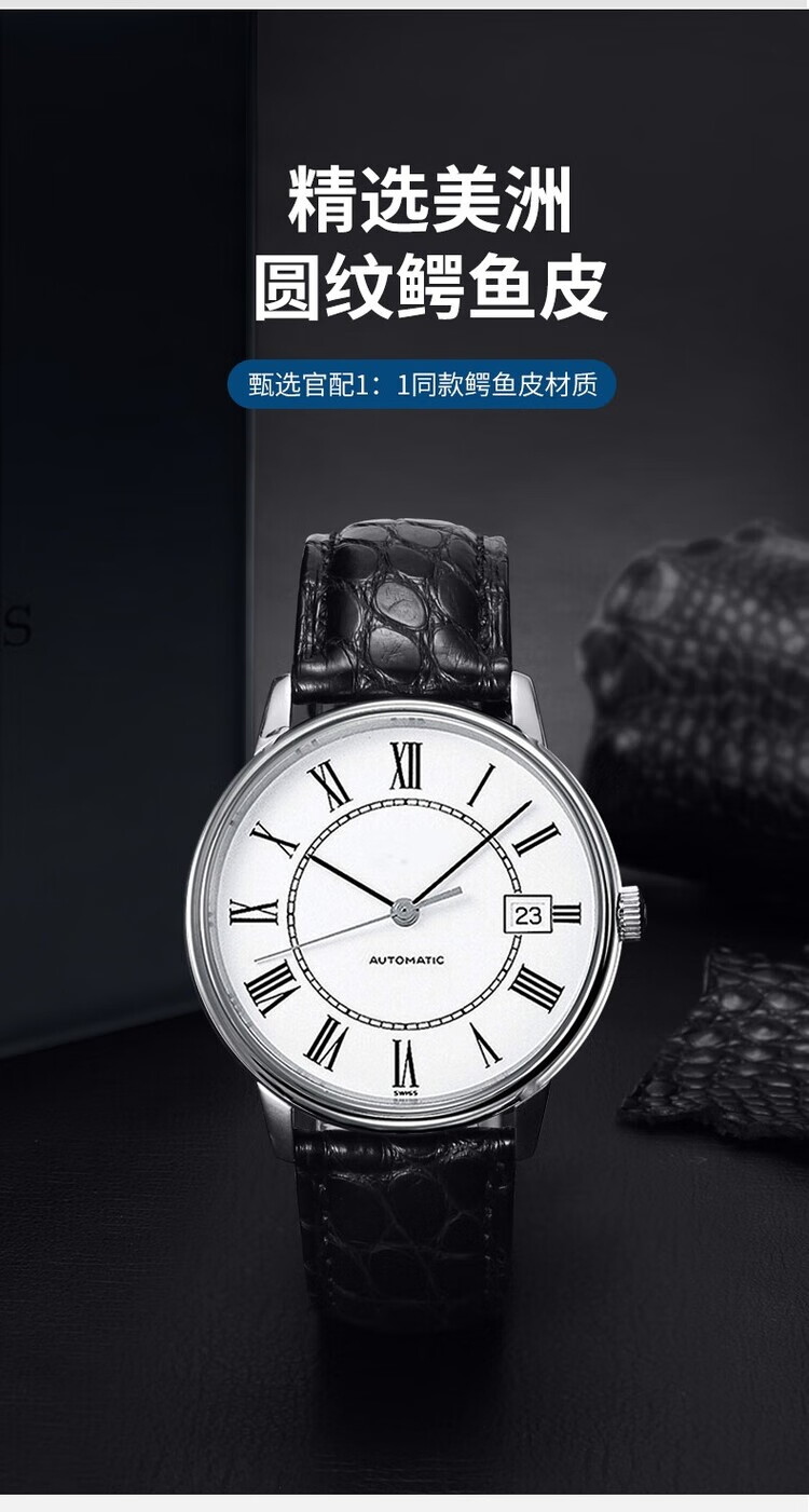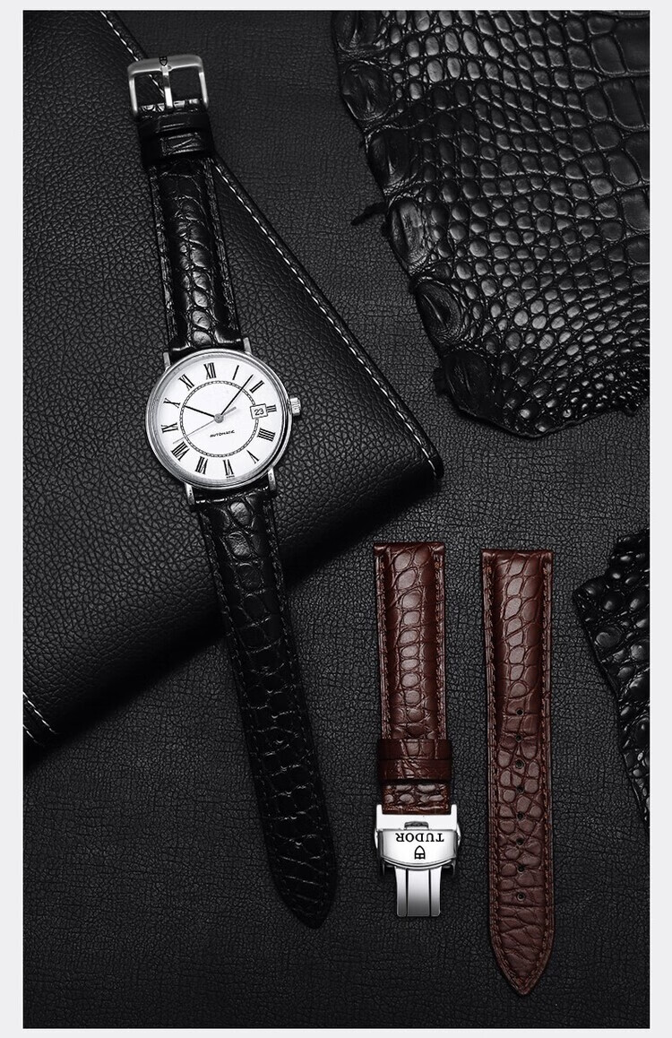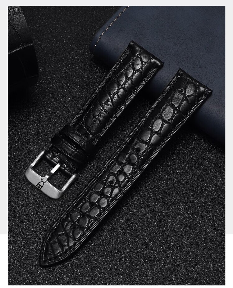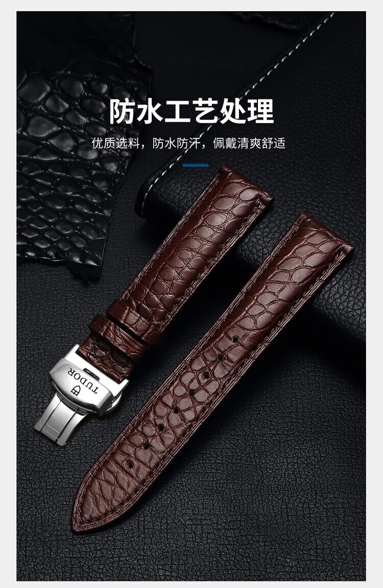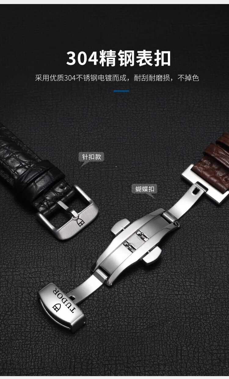 帝舵表带鳄鱼皮真皮男骏钰王子领潜碧湾1926 1958帝陀手表链适配 黑色-钢色扣 20mm接口内径宽度