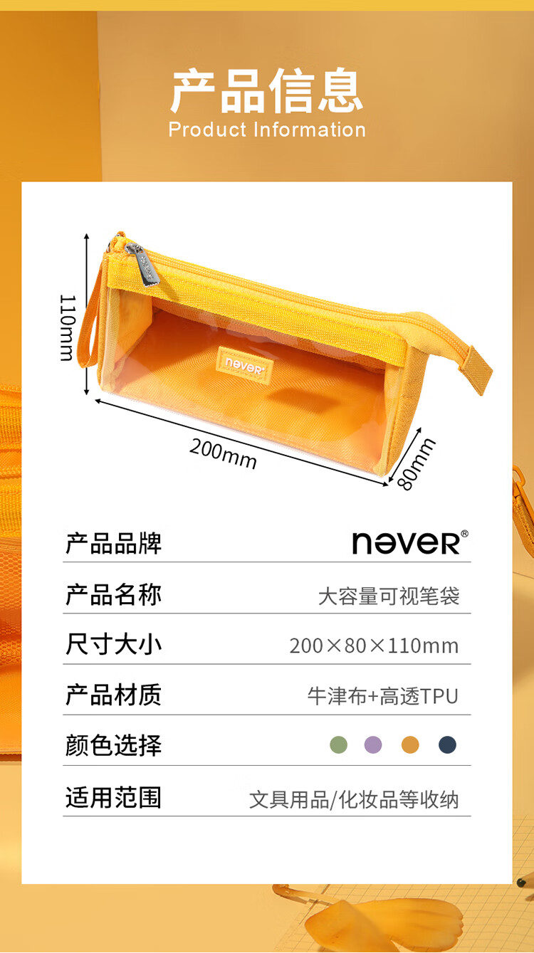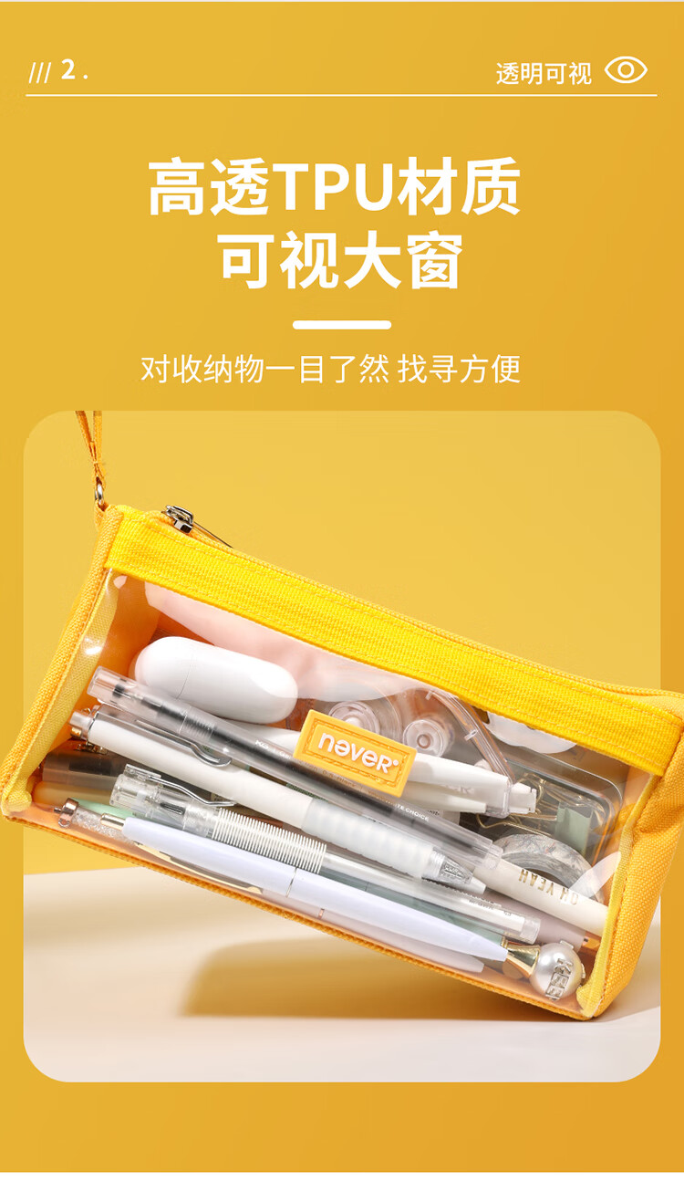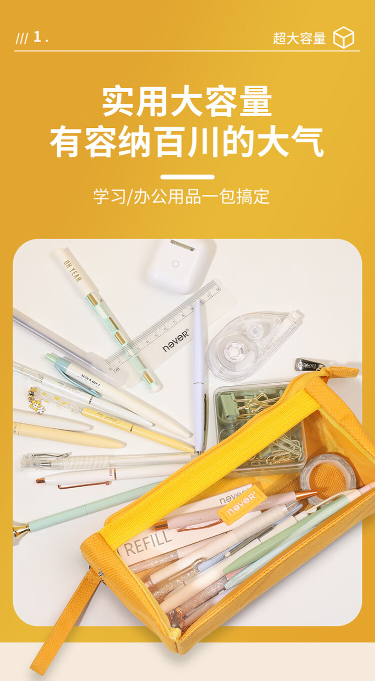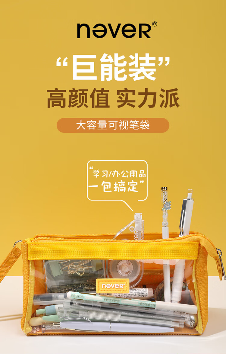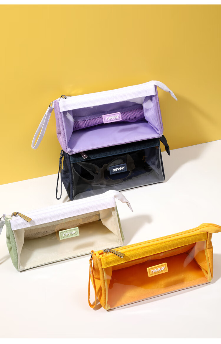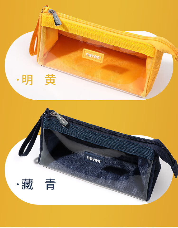 never巨能装2.0笔袋超大容量中考礼物ins可视日系生日礼物原创糖果色文具袋 大号藏青色【单件包邮】