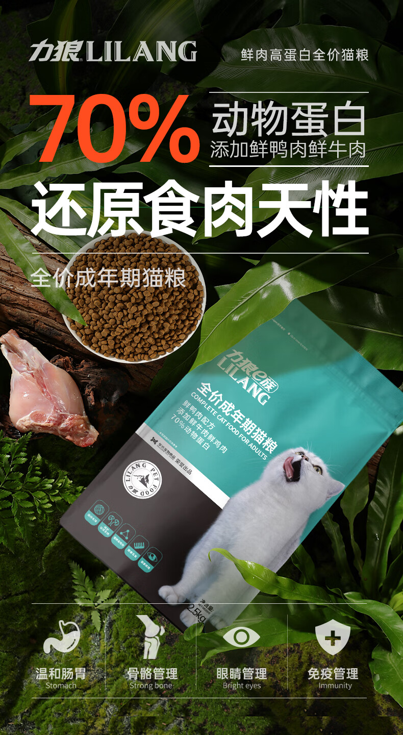 力狼(LILANG)猫粮e族宠物主粮鸭肉鲜肉粮全价成猫通用天然粮10kg