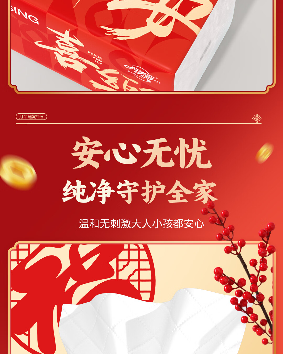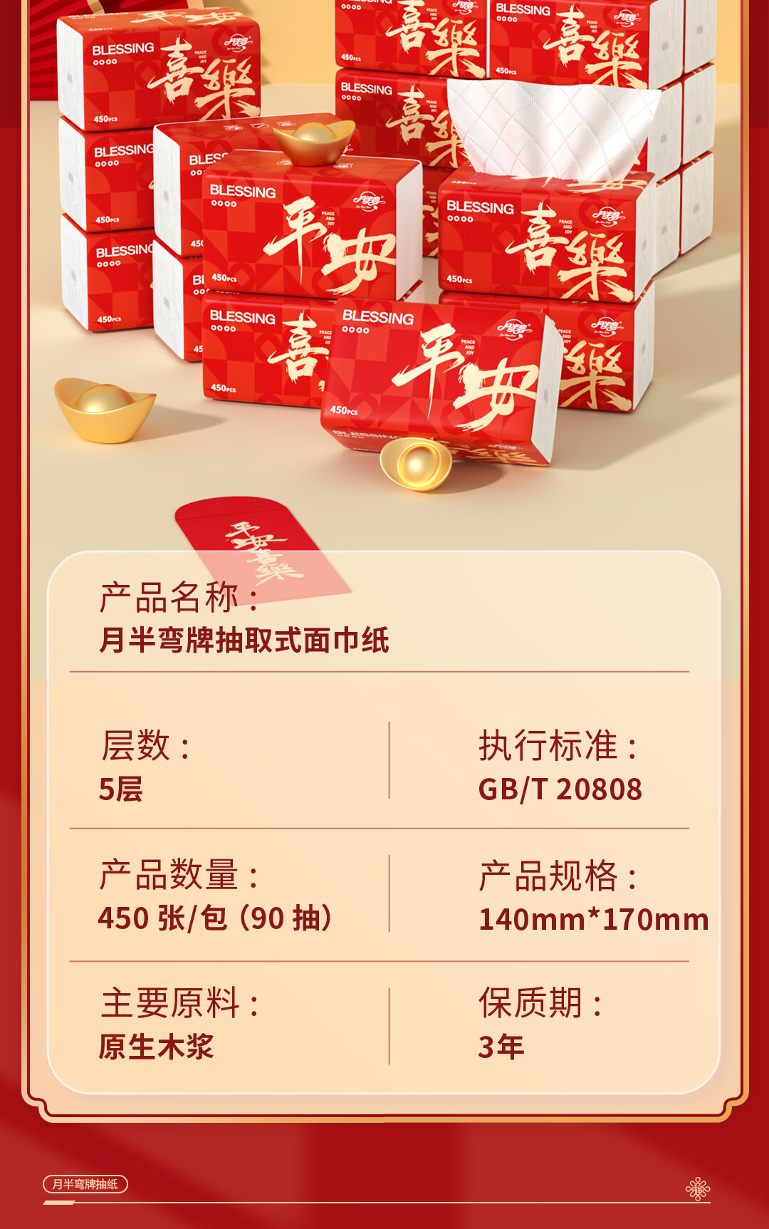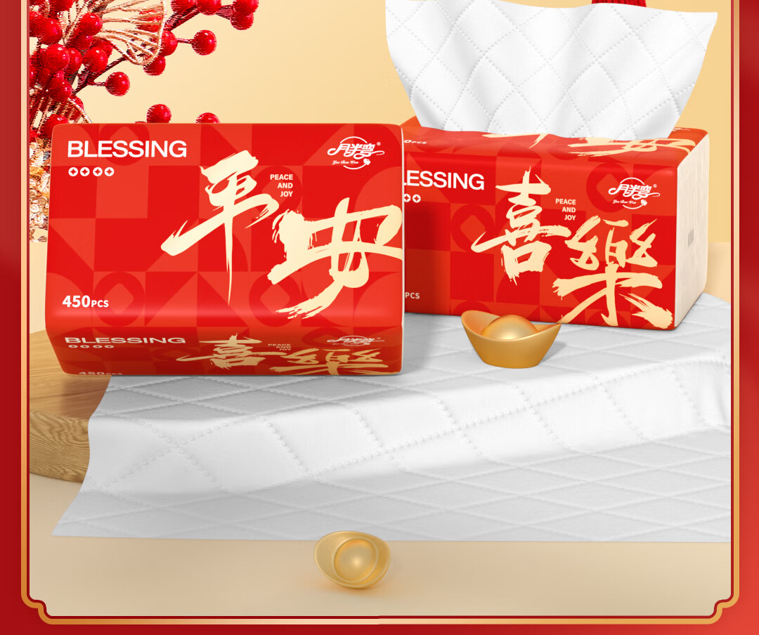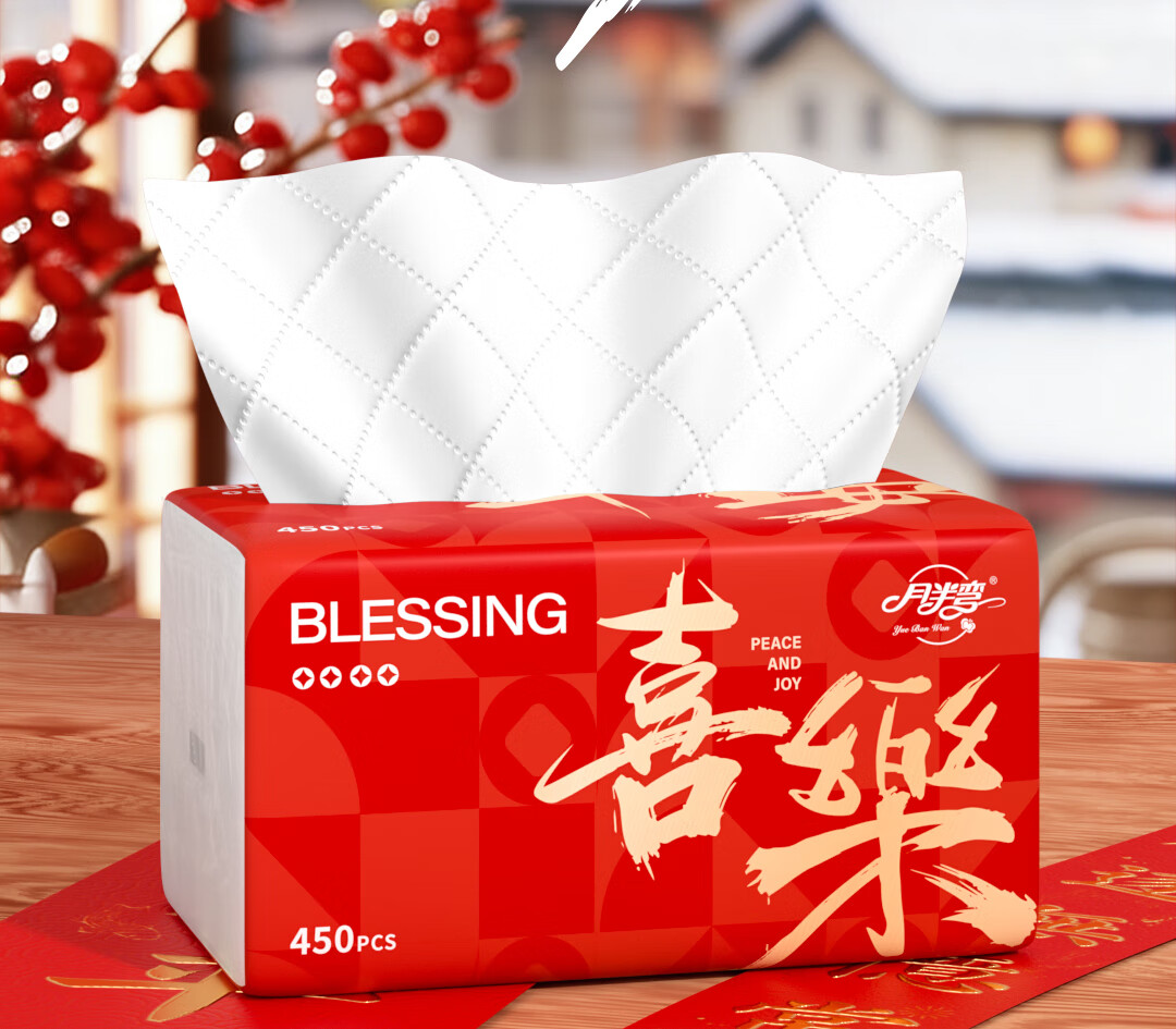 月半弯【平安喜乐】20大包抽纸加厚餐巾面巾纸巾卫生纸厕纸擦手纸整箱批