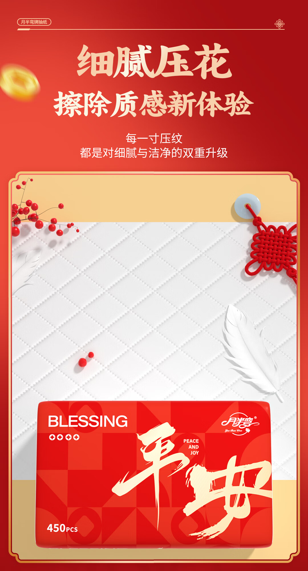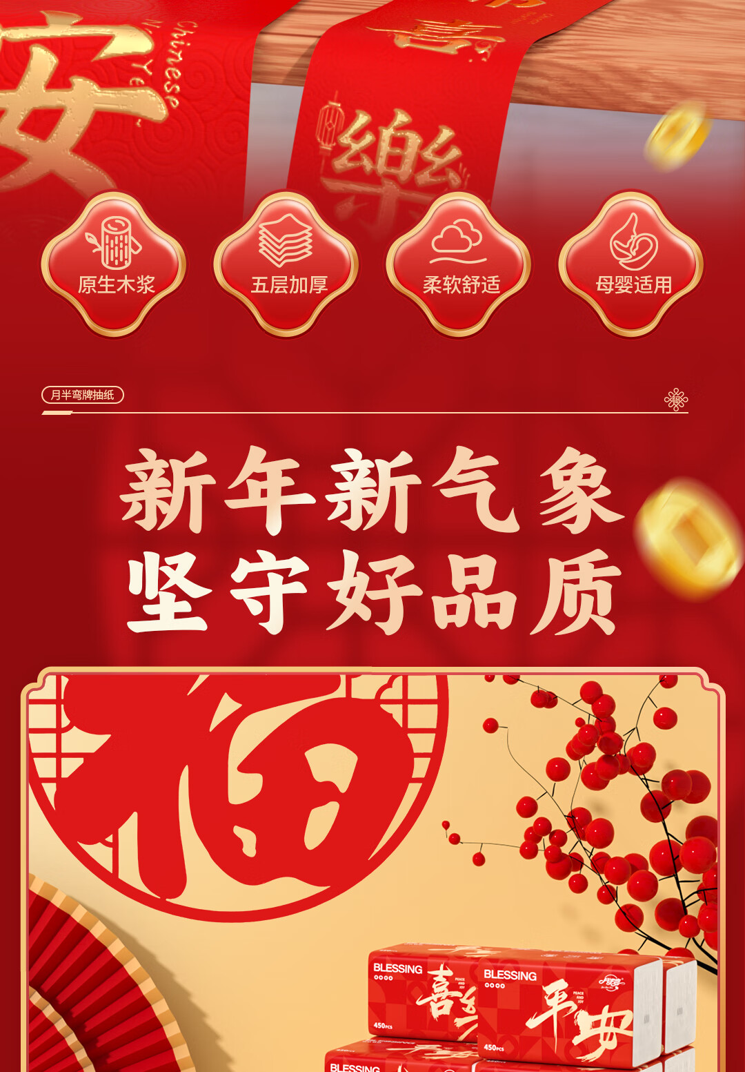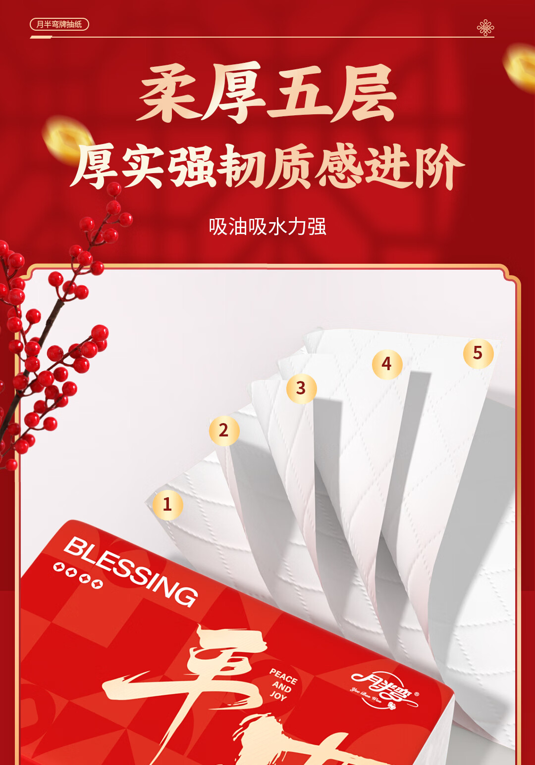 月半弯【平安喜乐】20大包抽纸加厚餐巾面巾纸巾卫生纸厕纸擦手纸整箱批