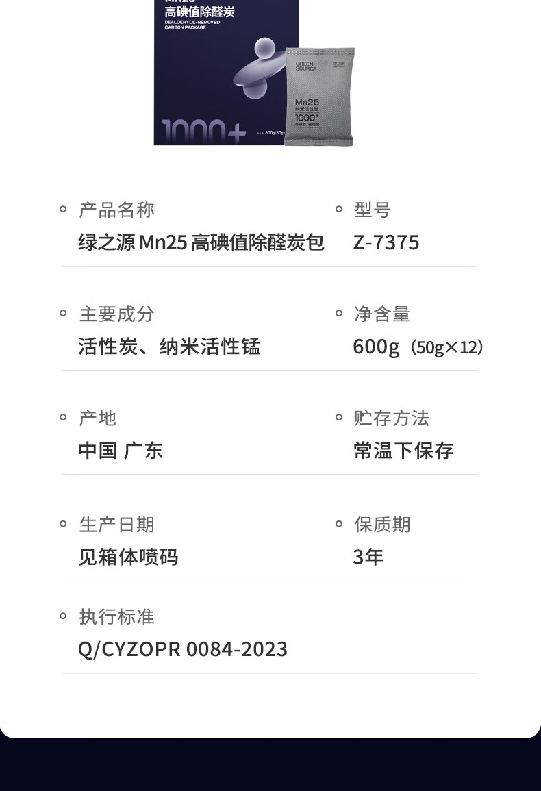 绿之源除甲醛活性炭新房去吸味甲醛清除剂 净化除味吸附碳包真除醛 【高碘值除醛片】MN25除醛片10片*2袋