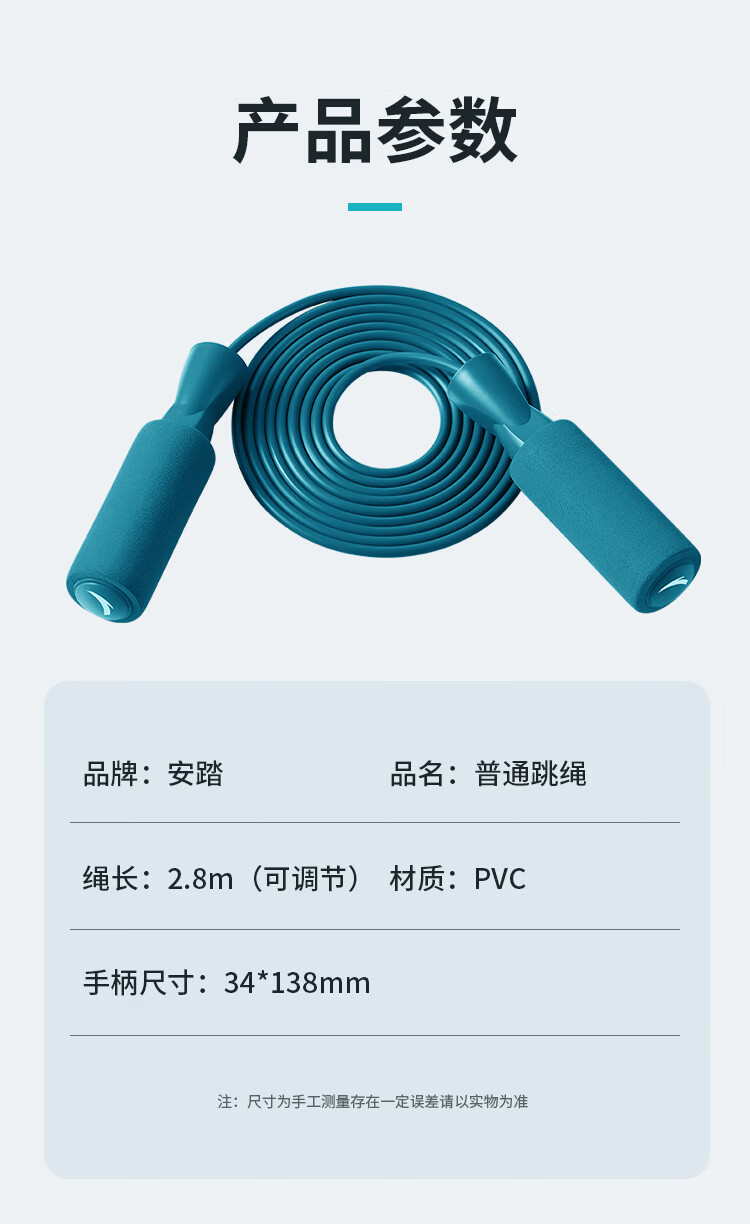 安踏竞速跳绳泡棉防滑手柄学生中考体育考试比赛运动专业训练初中生 棉饼竞速跳绳【升级环保材质】