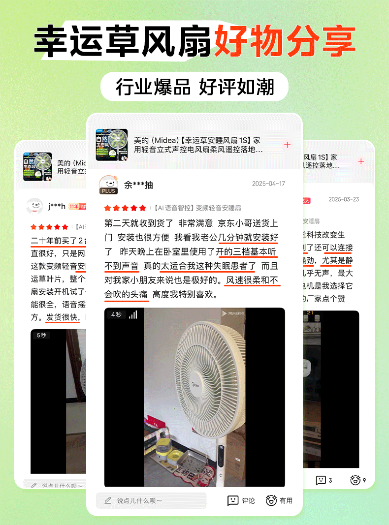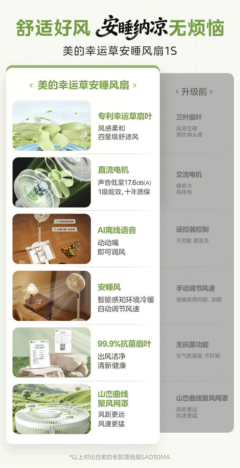 美的(Midea)【幸运草安睡1S】一级能效直流变频声控电风扇家用遥控卧室静音落地扇台式桌面抗菌大风力转页扇