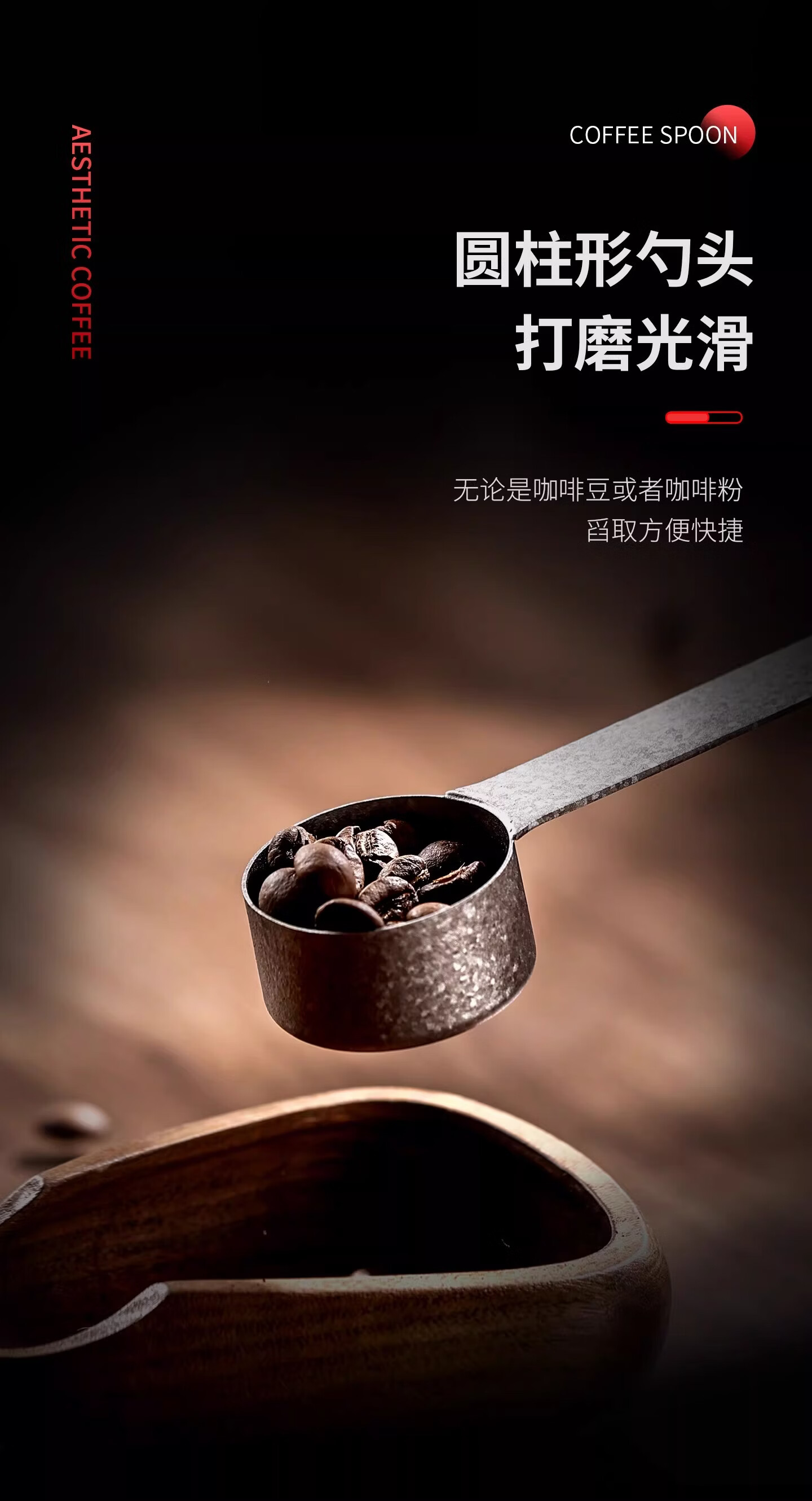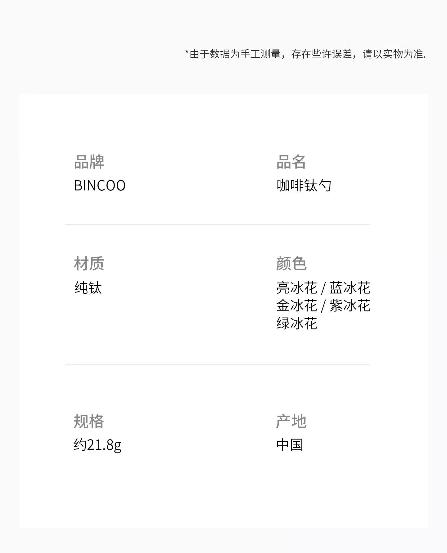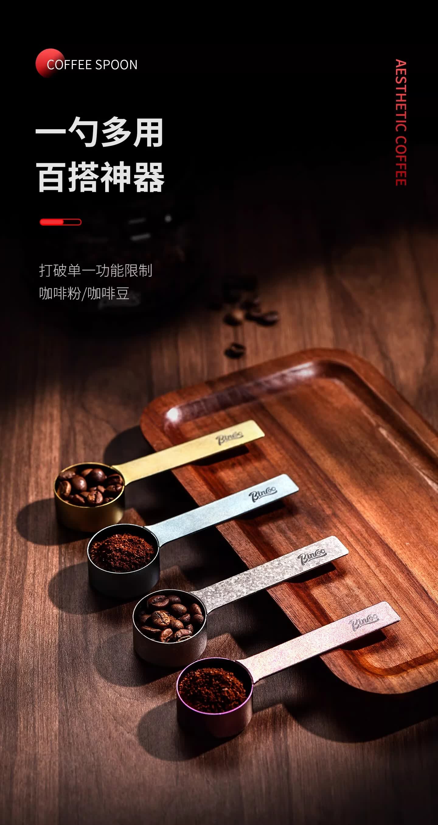 Bincoo纯钛咖啡勺计量勺烘焙家用咖啡豆研磨勺盛咖啡豆专用克数勺 亮冰花