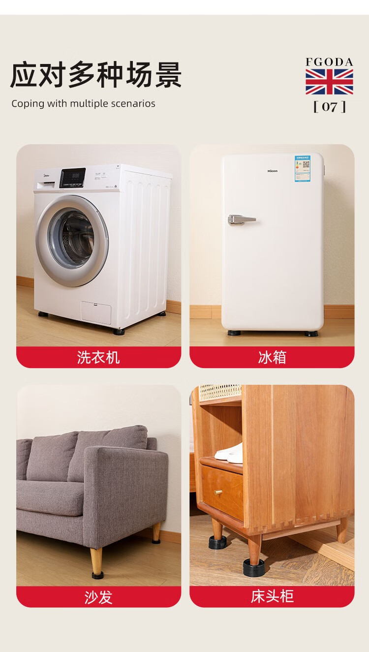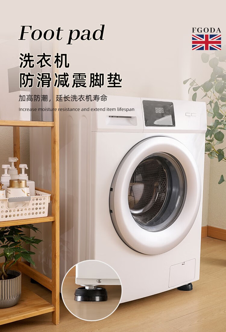 FGODA【精选直发】洗衣机脚垫波轮滚筒洗衣机架垫架子脚架底座加高垫高增高垫脚防滑防震支架冰箱洗衣机 洗衣机防滑减震垫-4个装