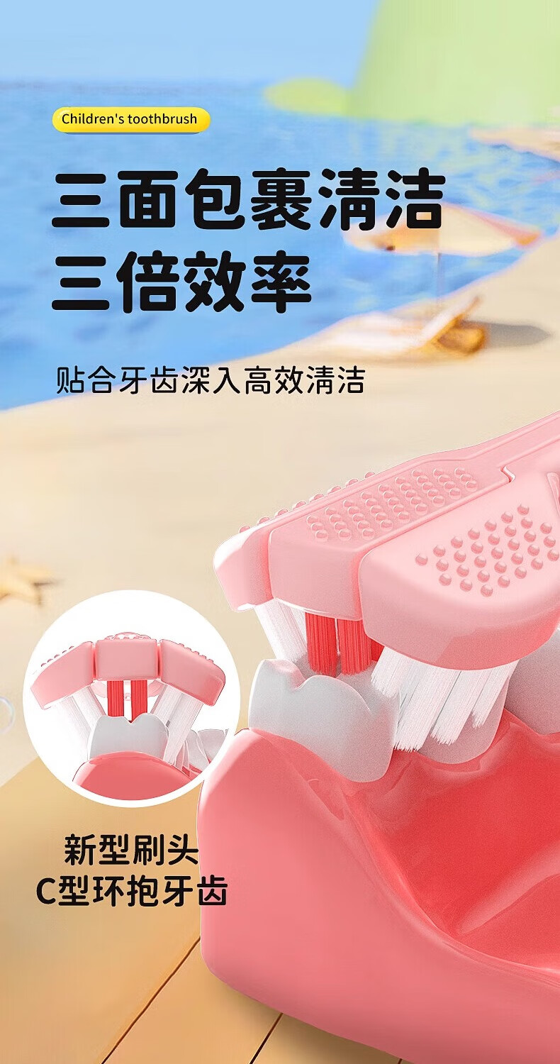 戴可儿童软毛牙刷3到6一12岁以上u型全面包裹清洁护齿换牙期多巴胺 儿童牙刷2卡4支