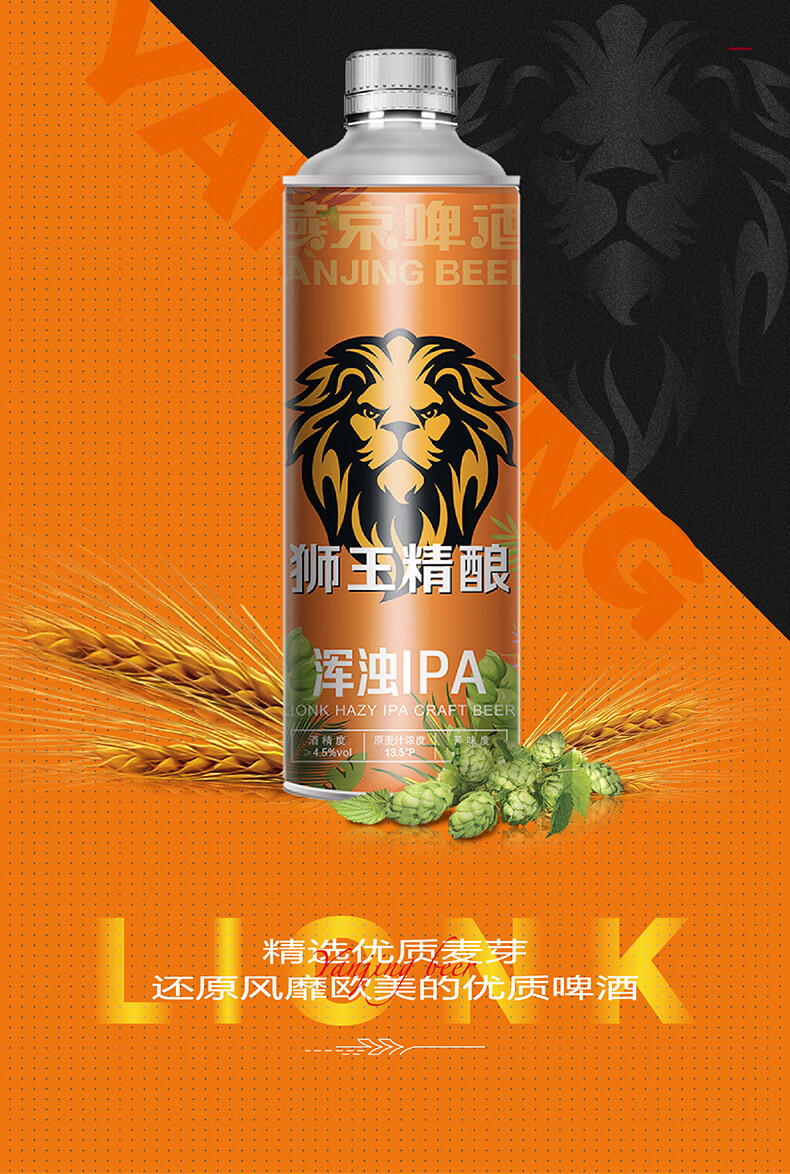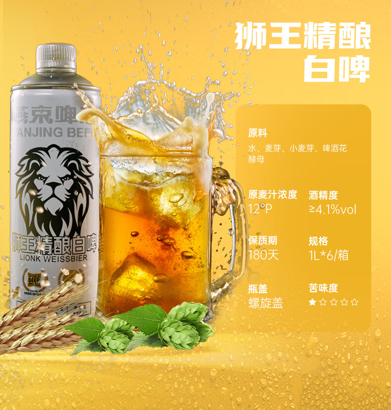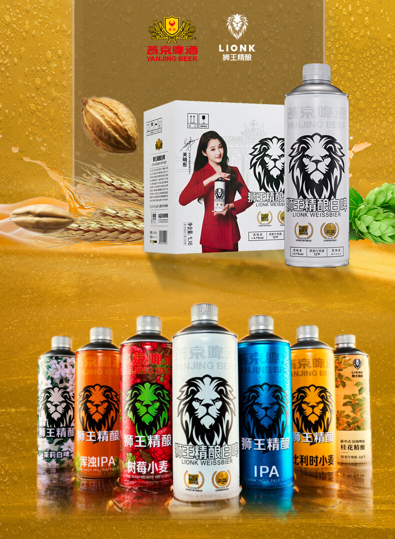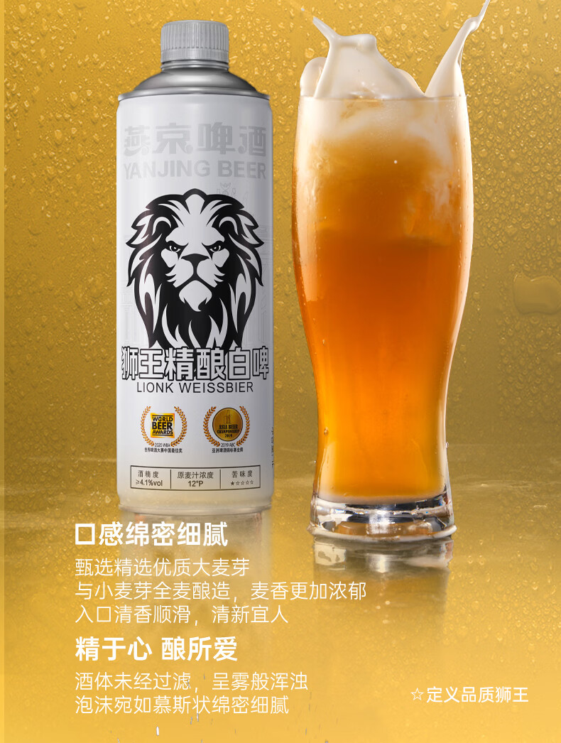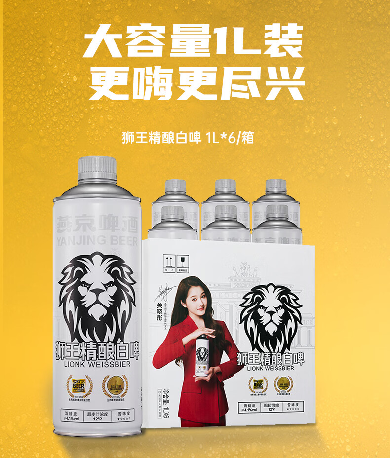 狮王精酿啤酒 燕京啤酒 燕京狮王精酿啤酒 1L 6瓶 整箱装 狮王啤酒