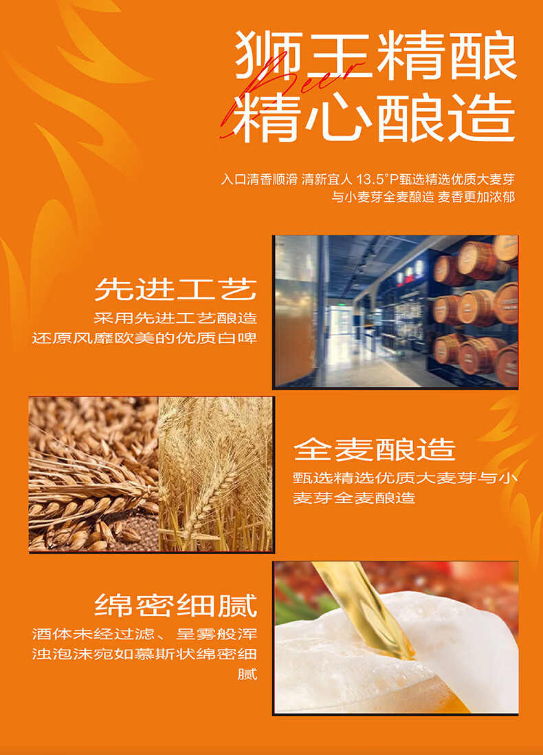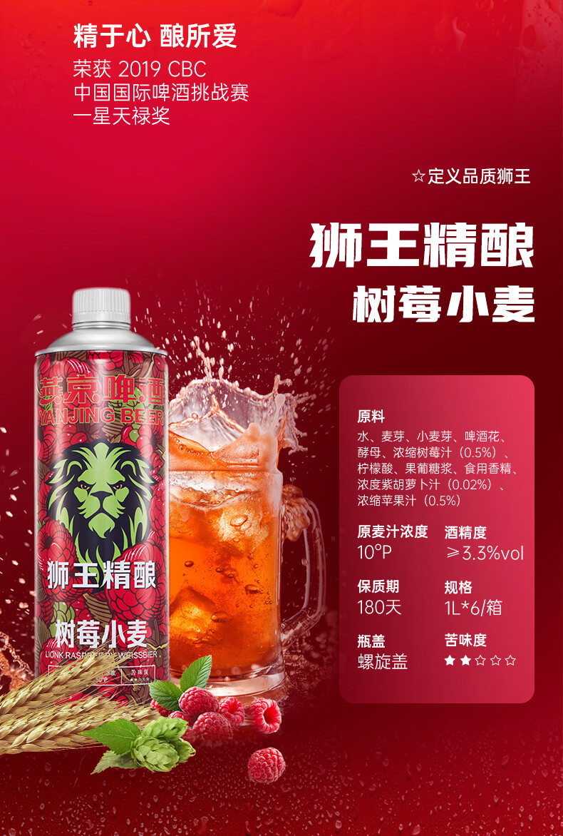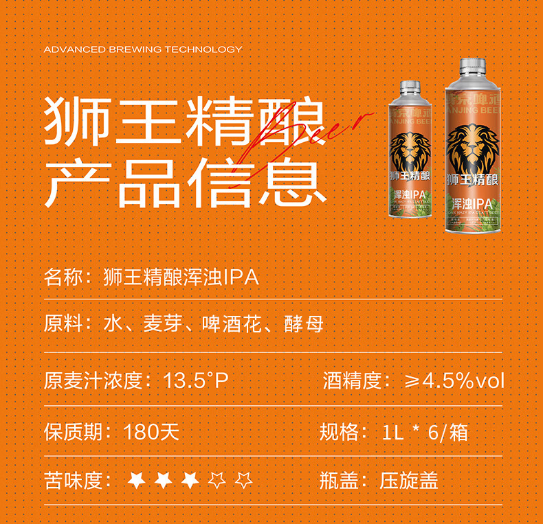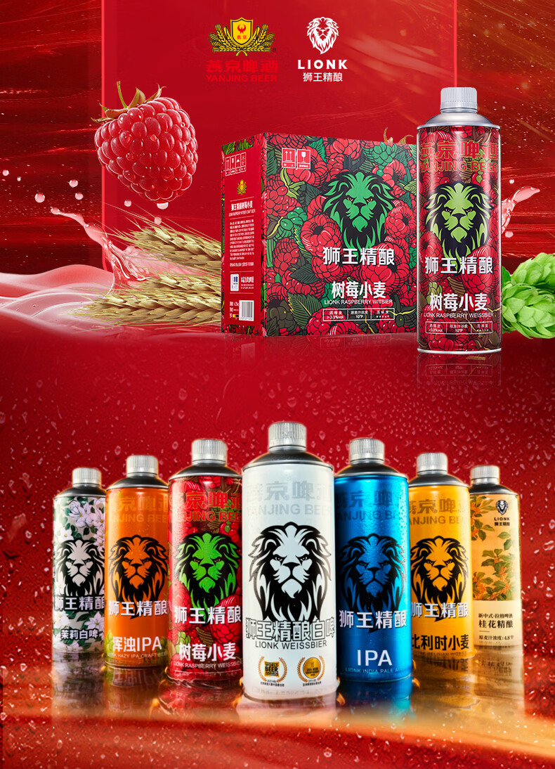 狮王精酿啤酒 燕京啤酒 燕京狮王精酿啤酒 1L 6瓶 整箱装 狮王啤酒