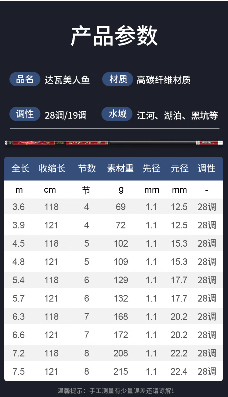 追风钓叟达瓦美人鱼台钓竿鱼竿碳素野钓湖库黑坑超轻硬5H28调鱼杆手竿鲤鱼 竞技6H19调9米+竿稍+礼包