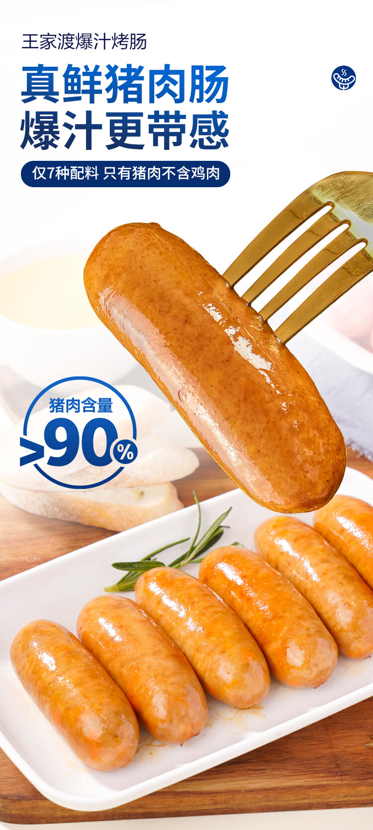 王家渡肉含量90%爆汁烤肠儿童早餐火山石烤肠空气炸锅烧烤食材 180g烤肠【5盒原味】