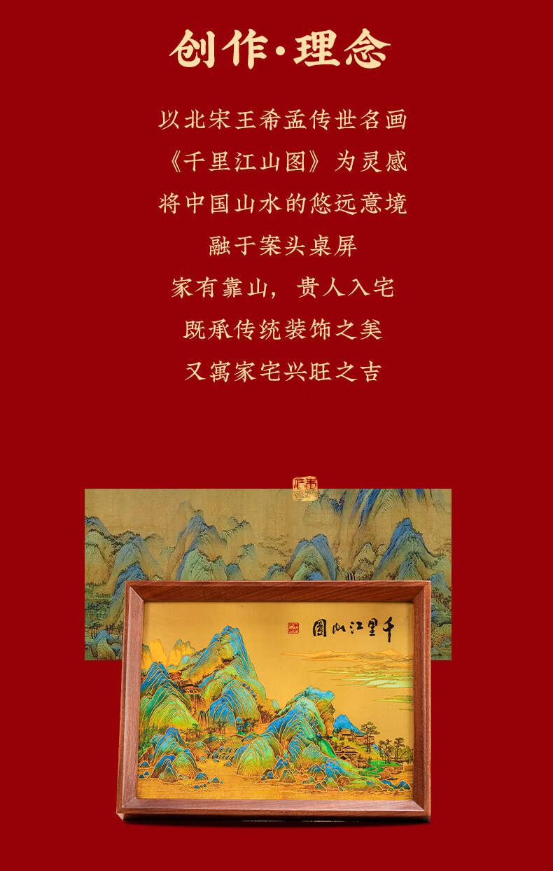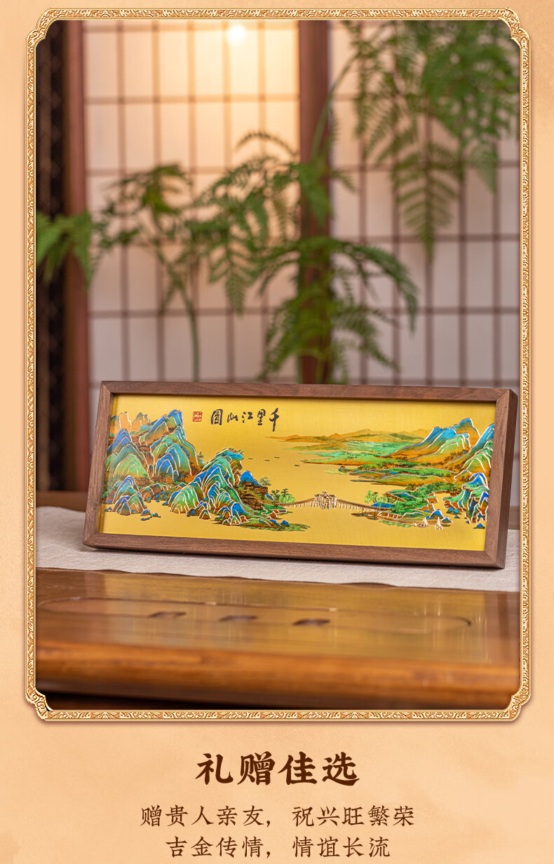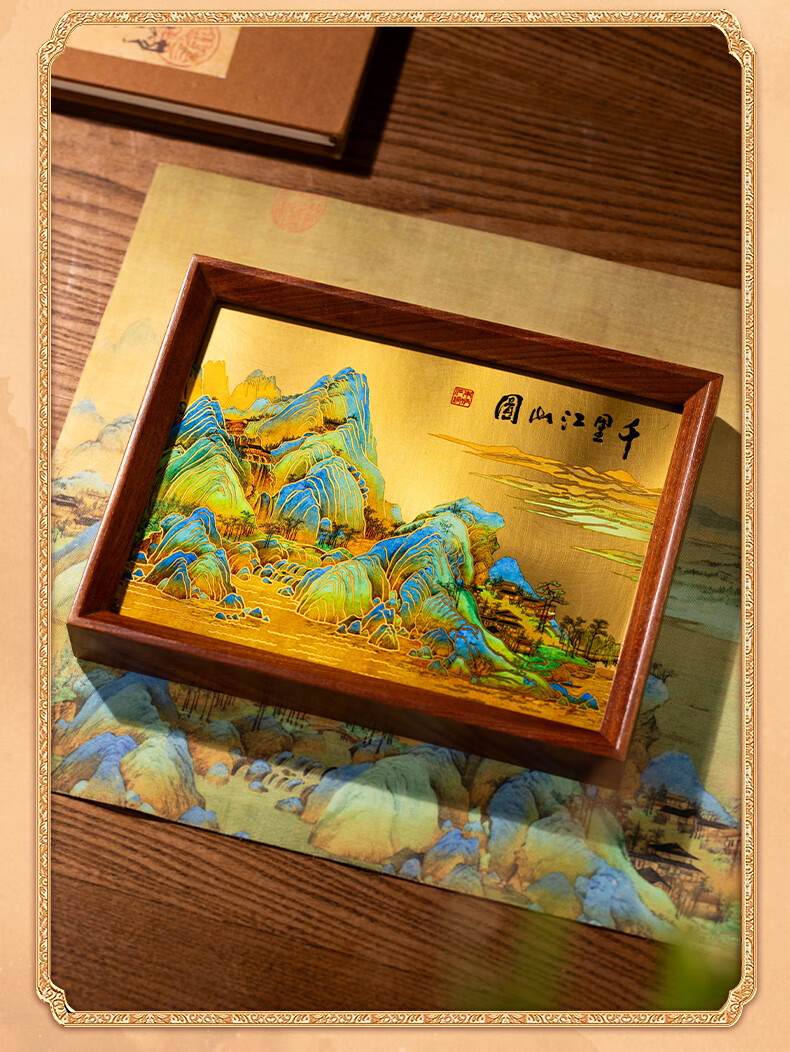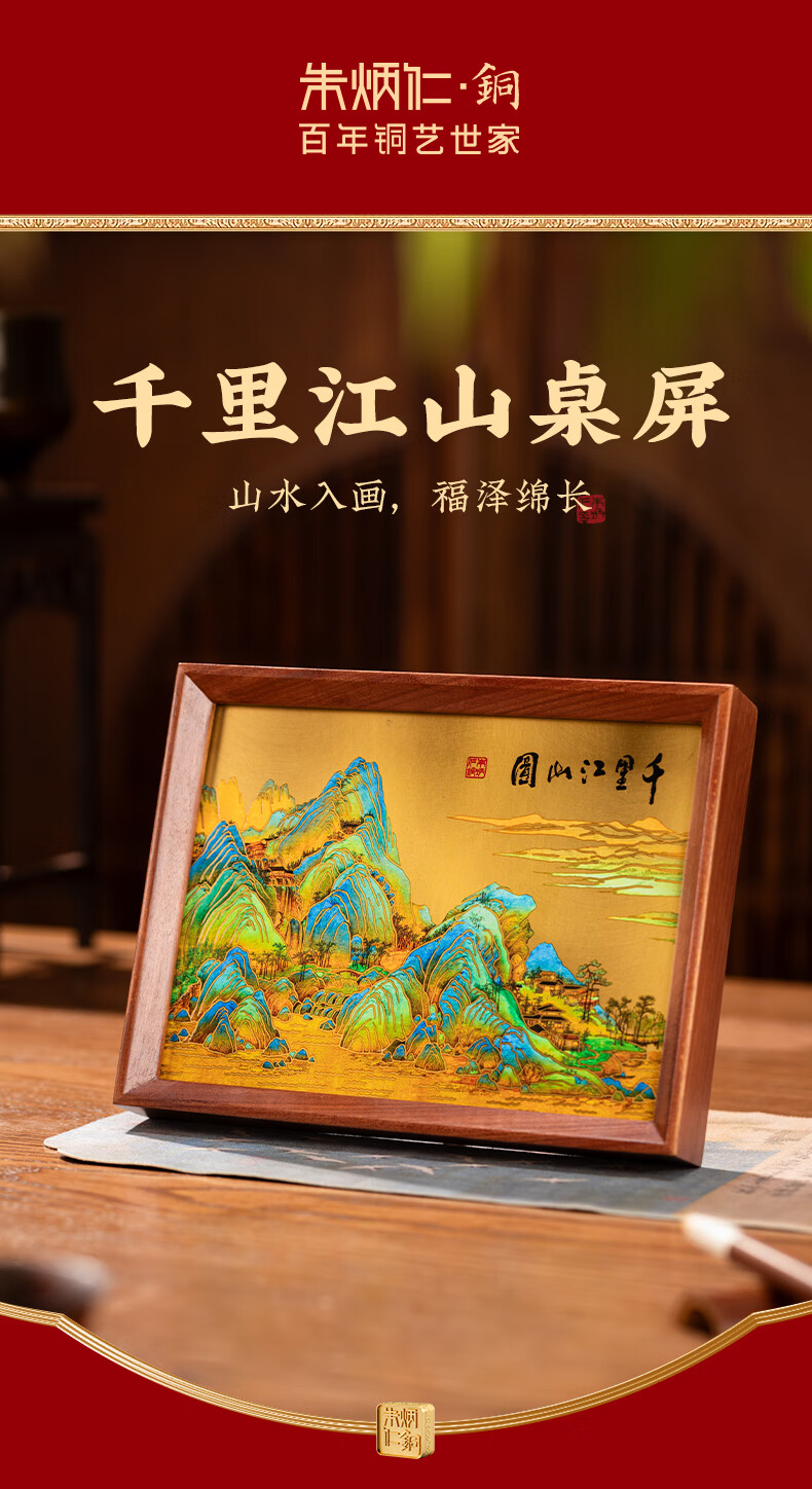 朱炳仁铜 千里江山桌屏书房办公室桌面小摆件相框装饰壁画礼赠 千里江山桌屏