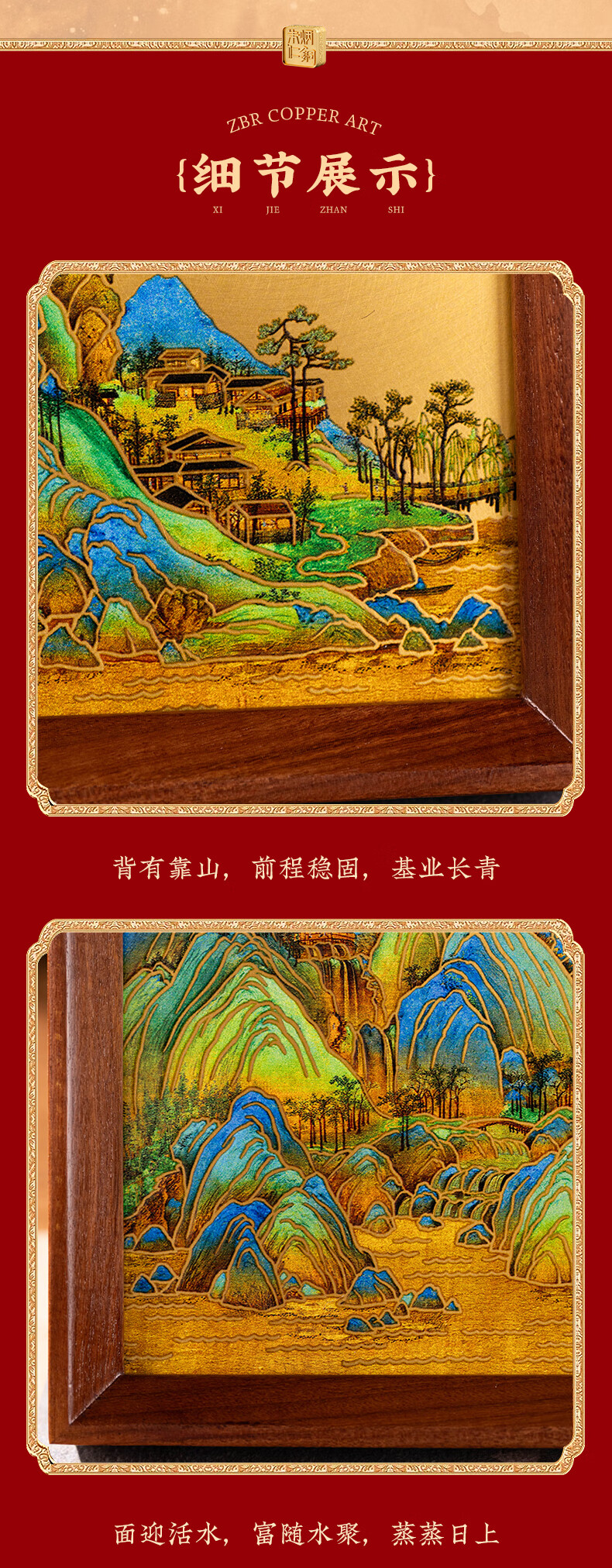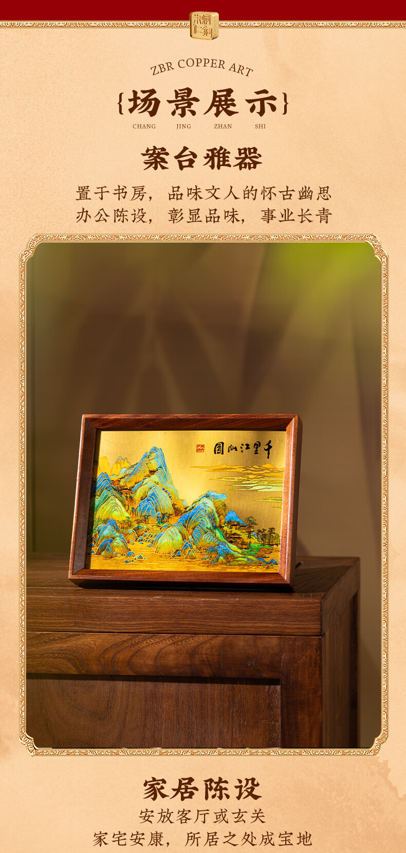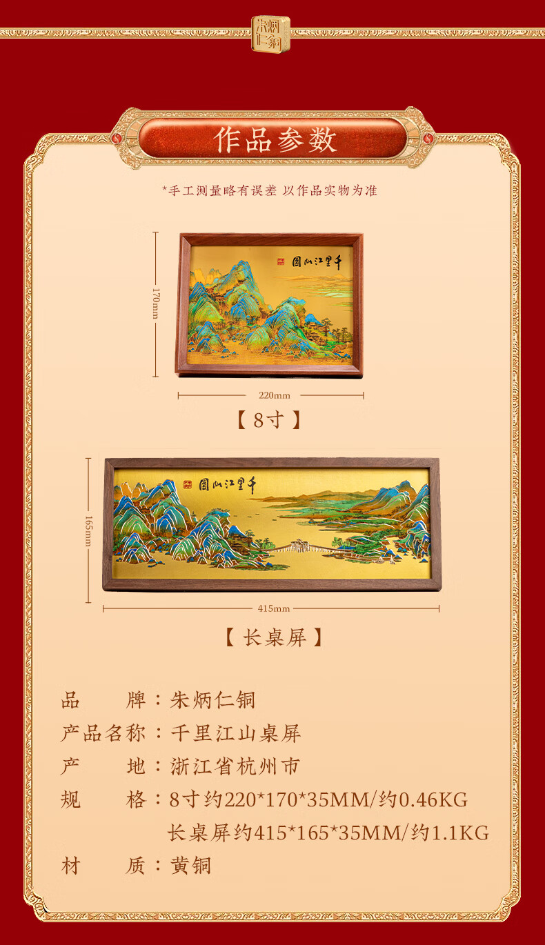 朱炳仁铜 千里江山桌屏书房办公室桌面小摆件相框装饰壁画礼赠 千里江山桌屏