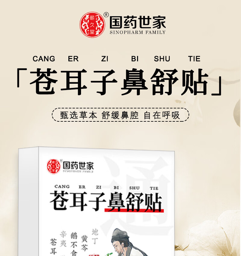 国药世家苍耳子鼻炎贴儿童苍耳鼻舒贴通鼻贴可搭成人儿童鼻炎喷剂止鼾器 买5送3发8盒【家中常备装】多买多实惠