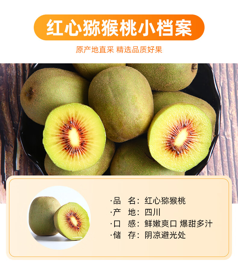 牛爱鲜 猕猴桃四川红心猕猴桃奇异果新鲜水果 红心果24粒单果70-90g 自行催熟后食用