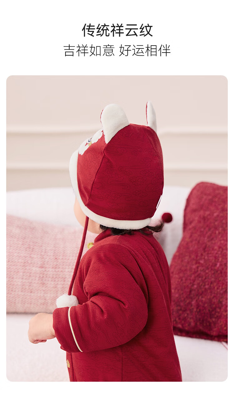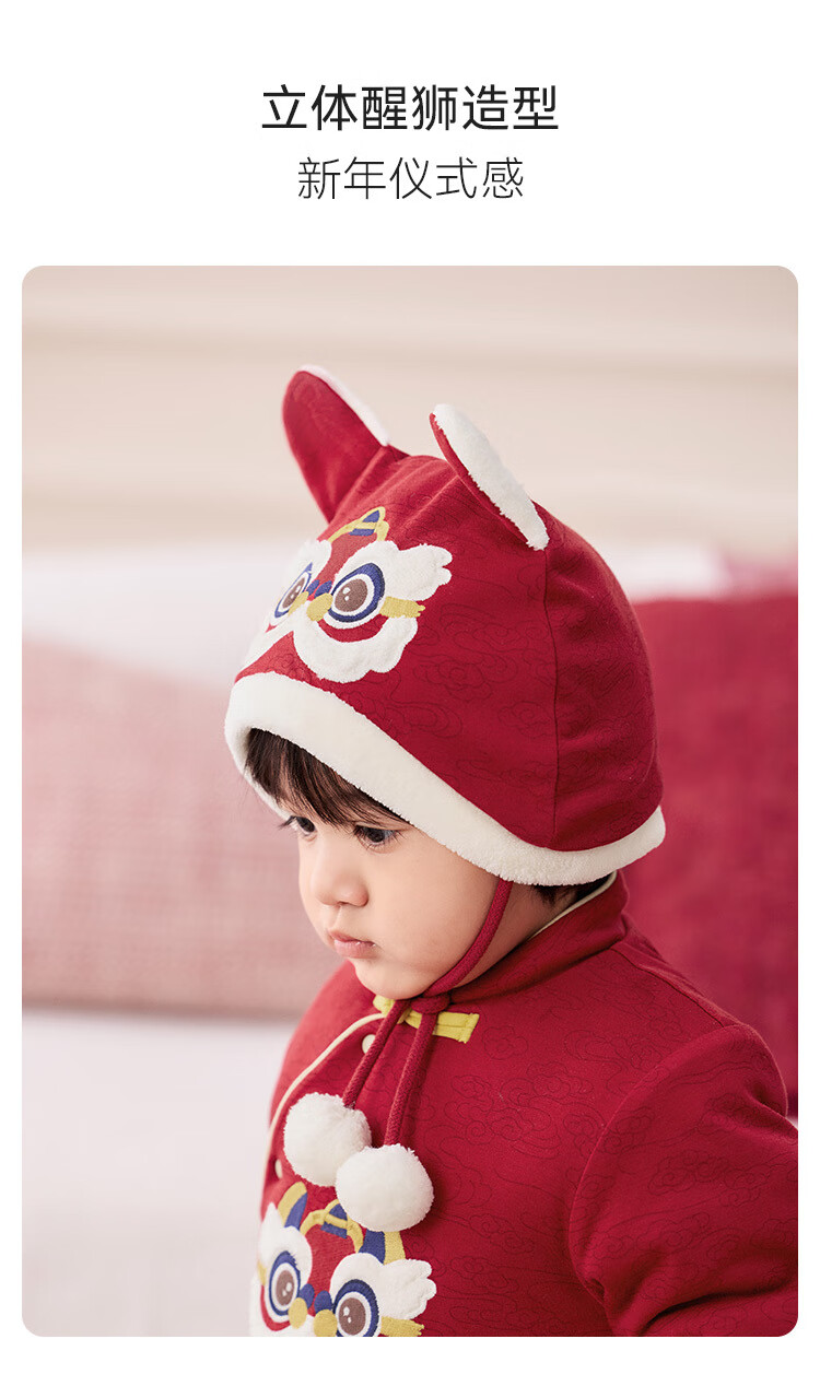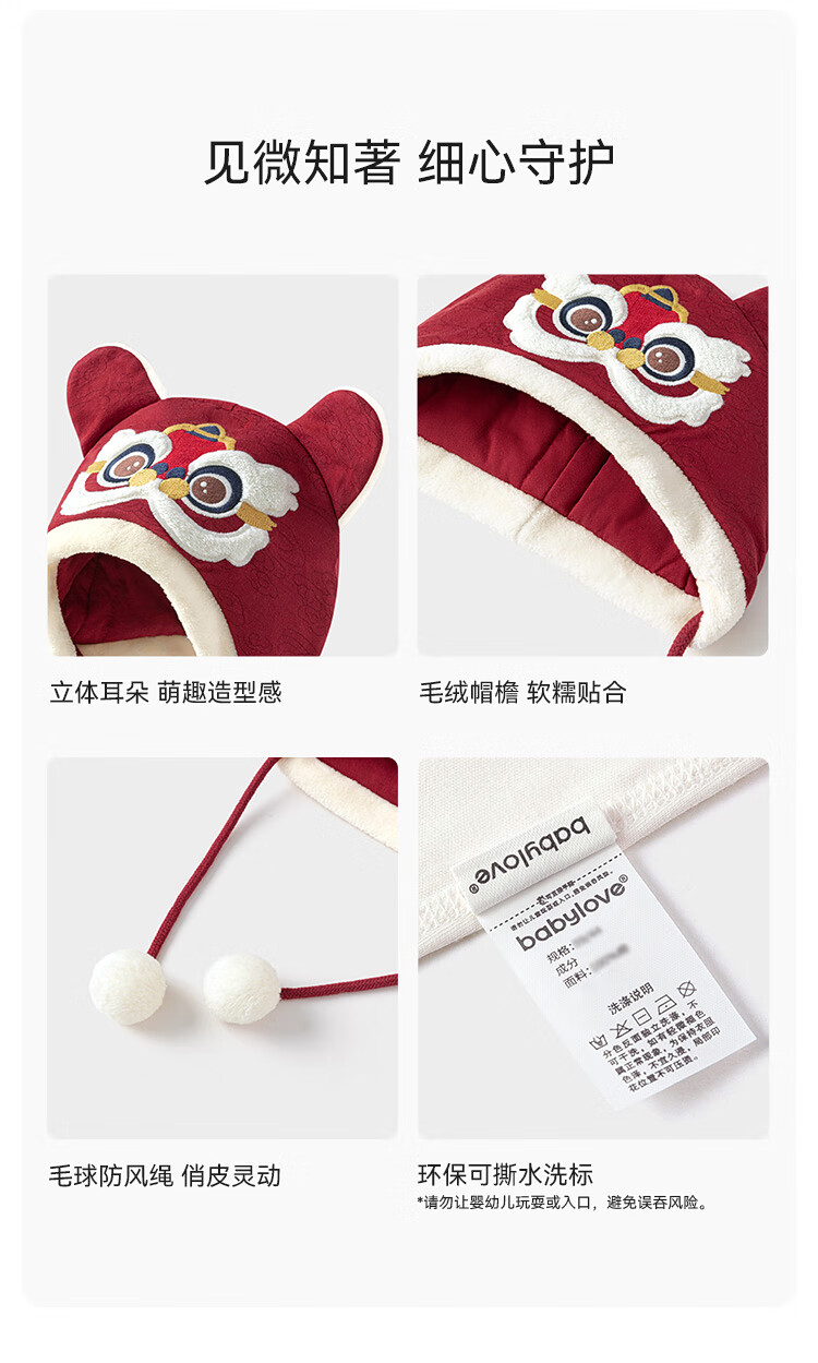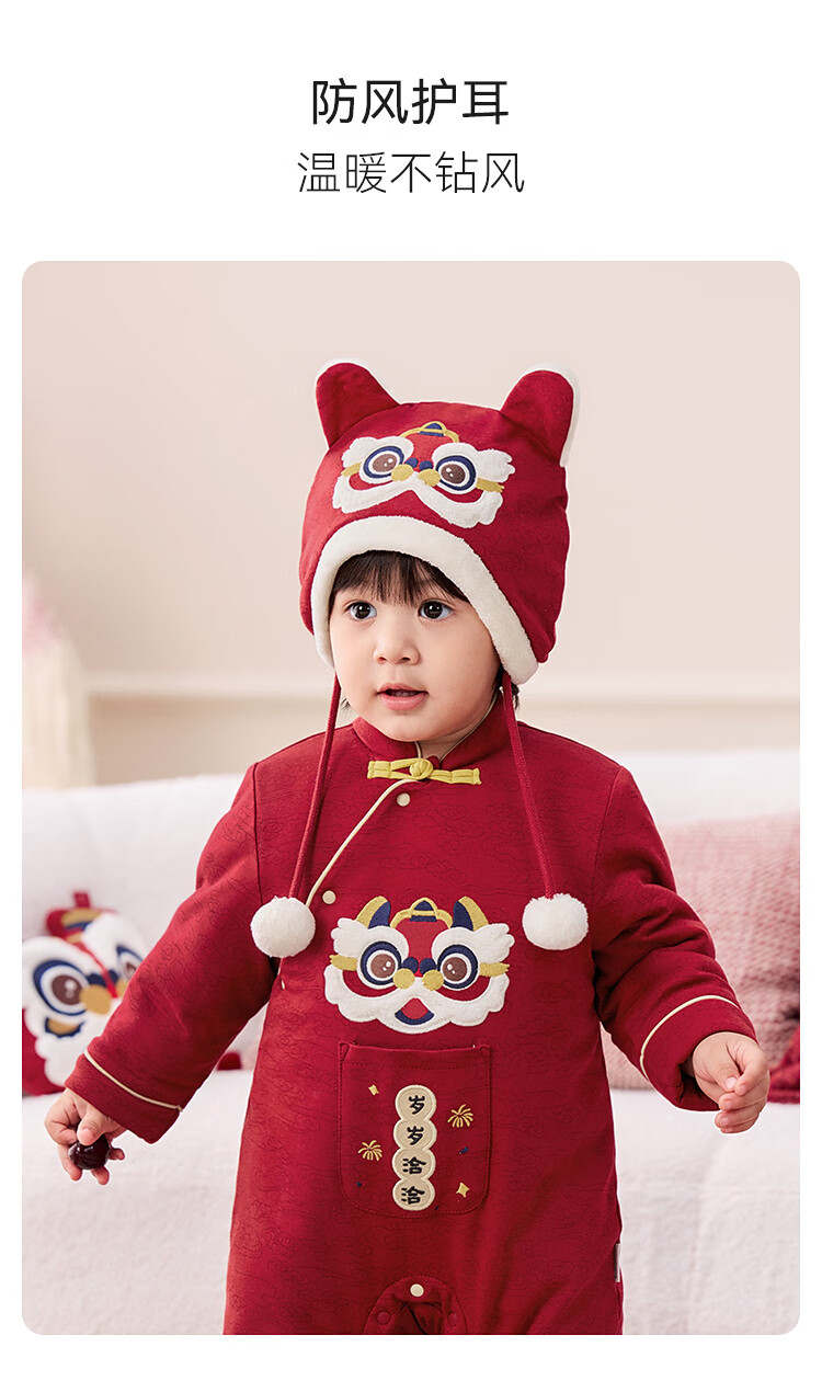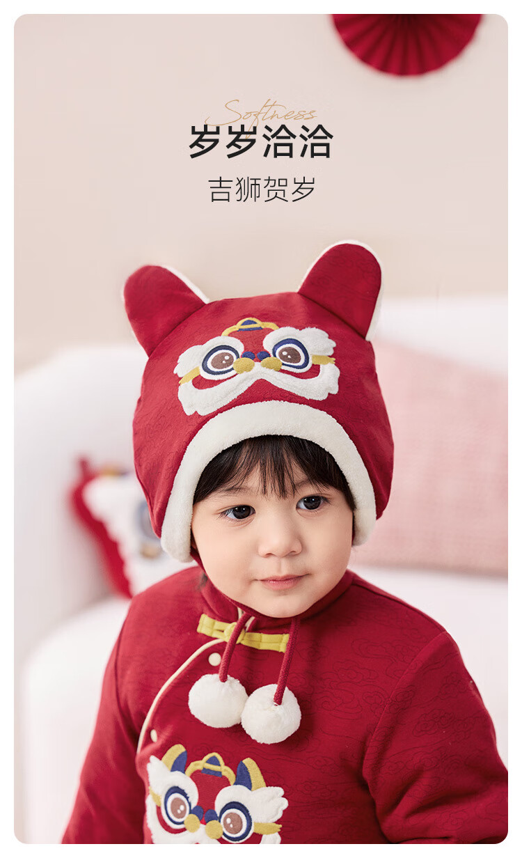 babylove婴儿护耳帽国风冬季夹棉保暖帽子宝宝新年虎头帽岁岁洽洽 岁岁洽洽 44cm