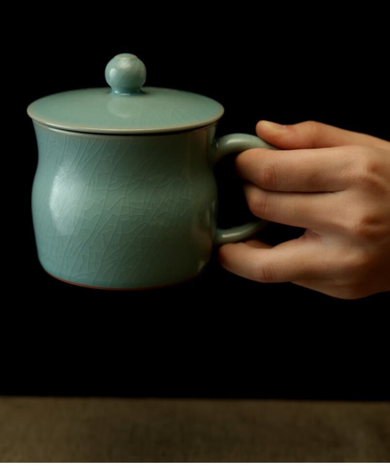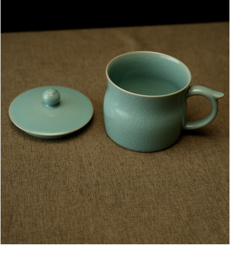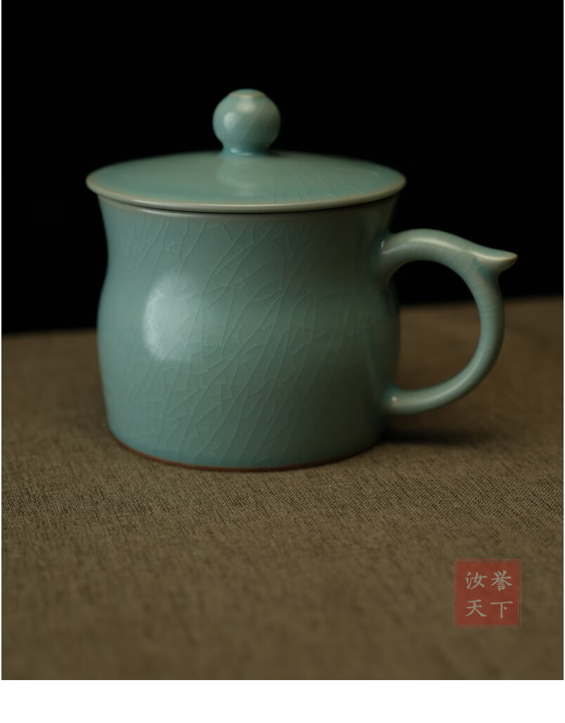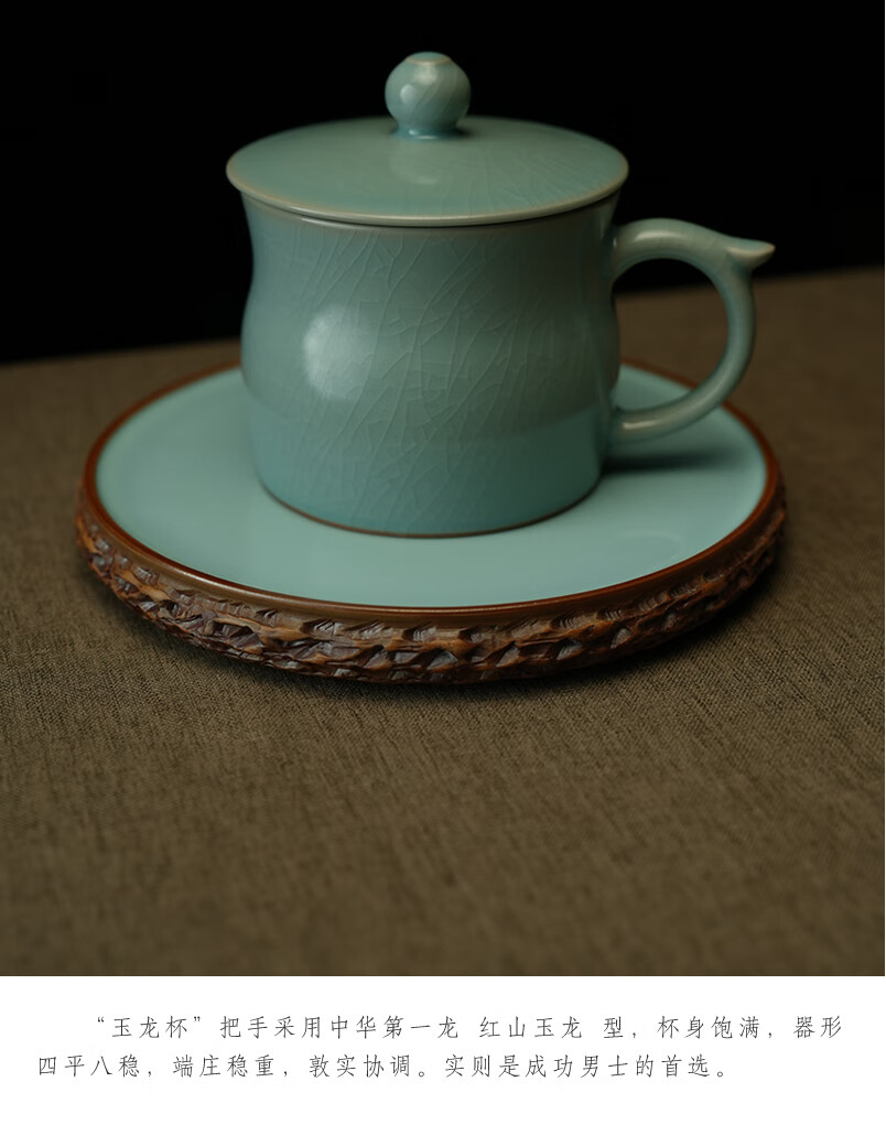 汝誉天下汝窑茶具茶杯办公杯会议杯玉龙杯清凉寺汝官窑泡茶杯汝州汝瓷开片 玉龙杯