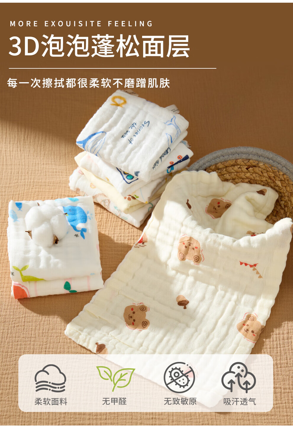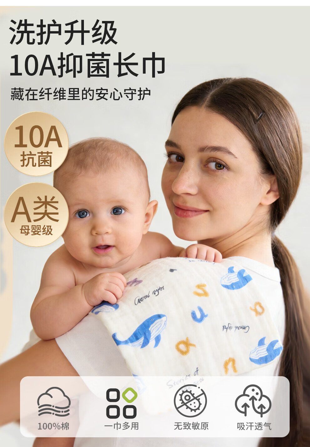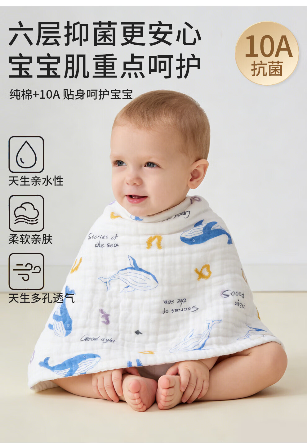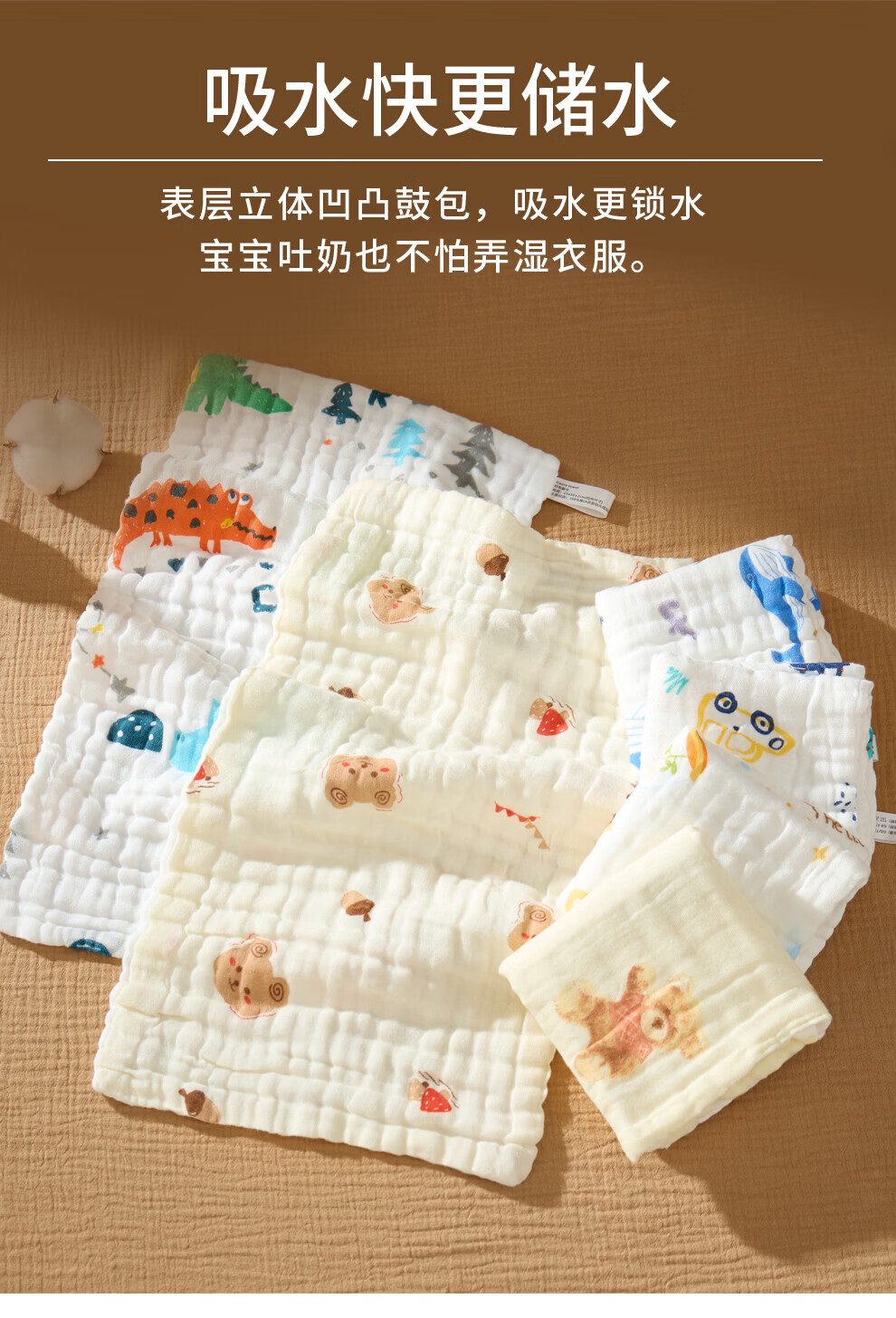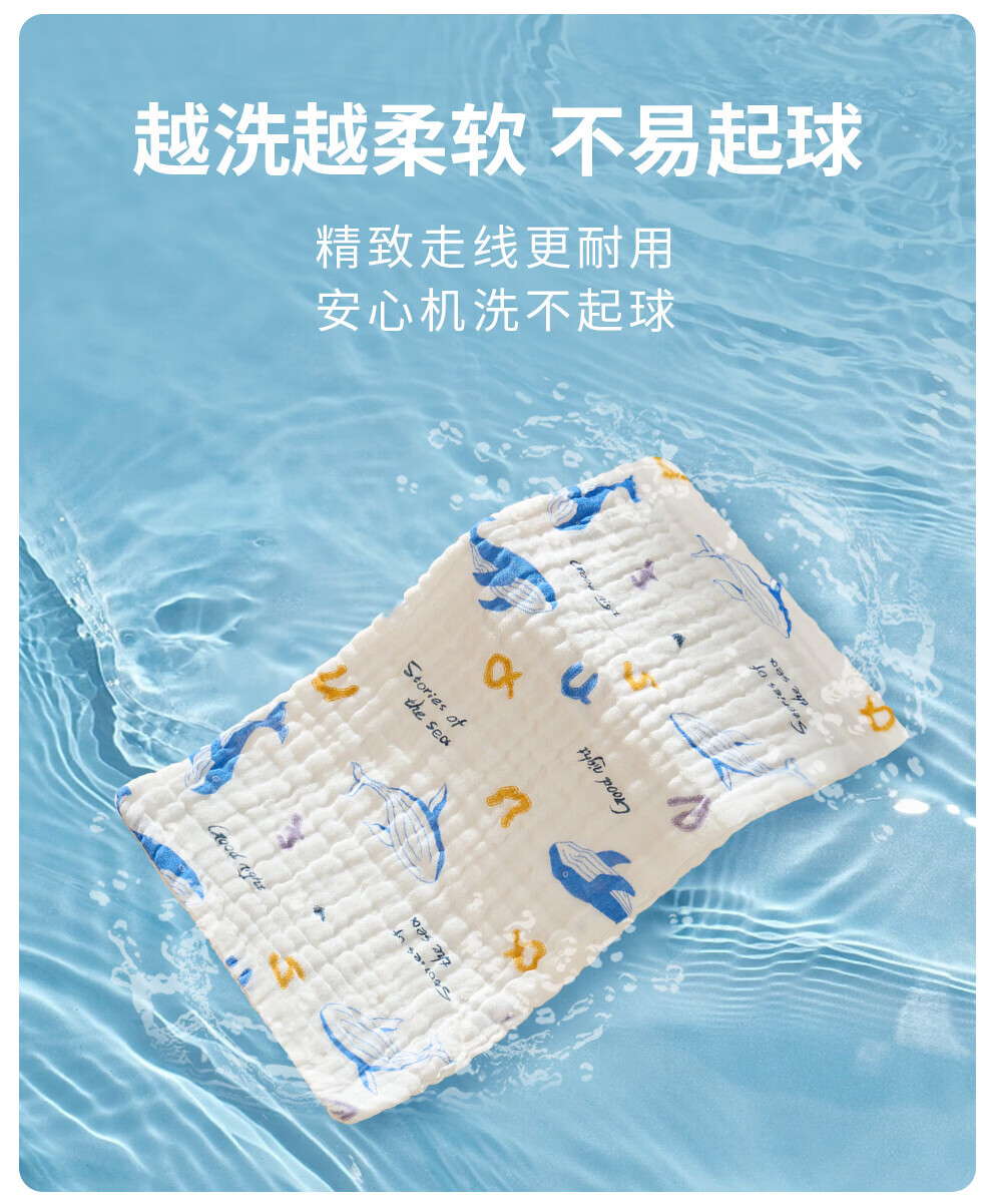 班杰威尔(Banjvall)婴儿毛巾口水巾拍嗝巾纯棉纱布儿童洗脸巾新生儿宝宝洗澡巾 随机3条【6层纯棉纱布-10A抗菌】 40*23.5cm