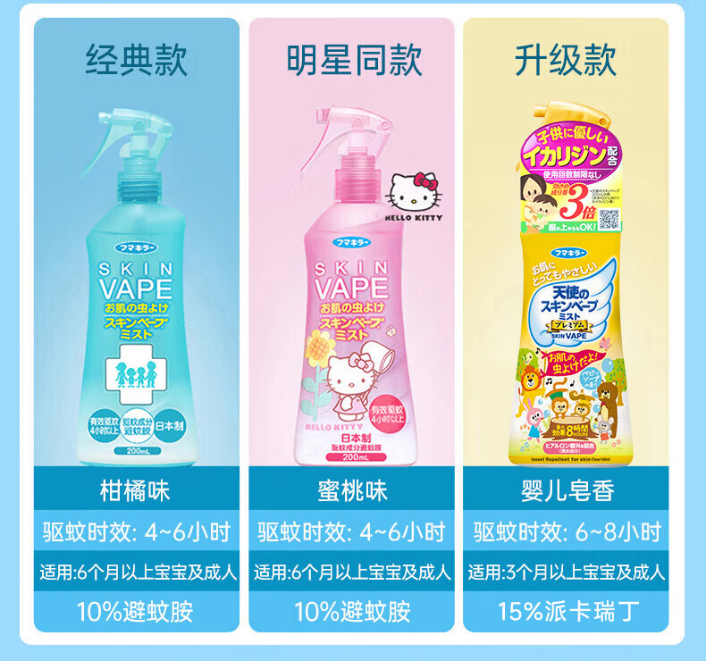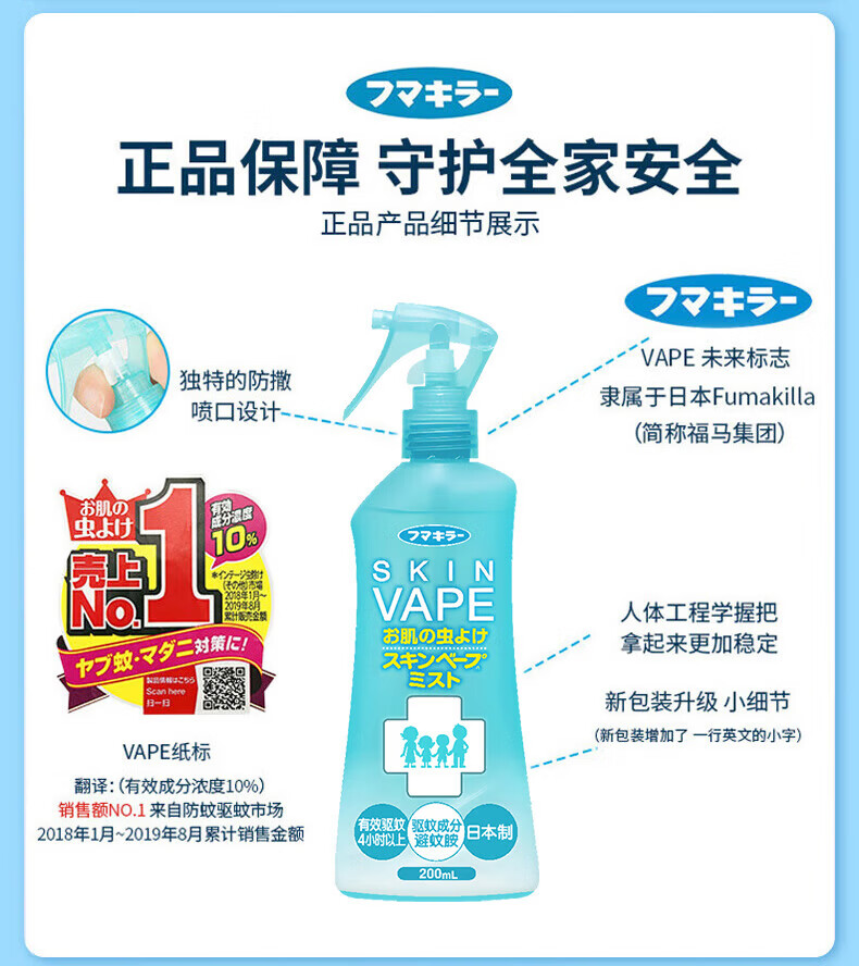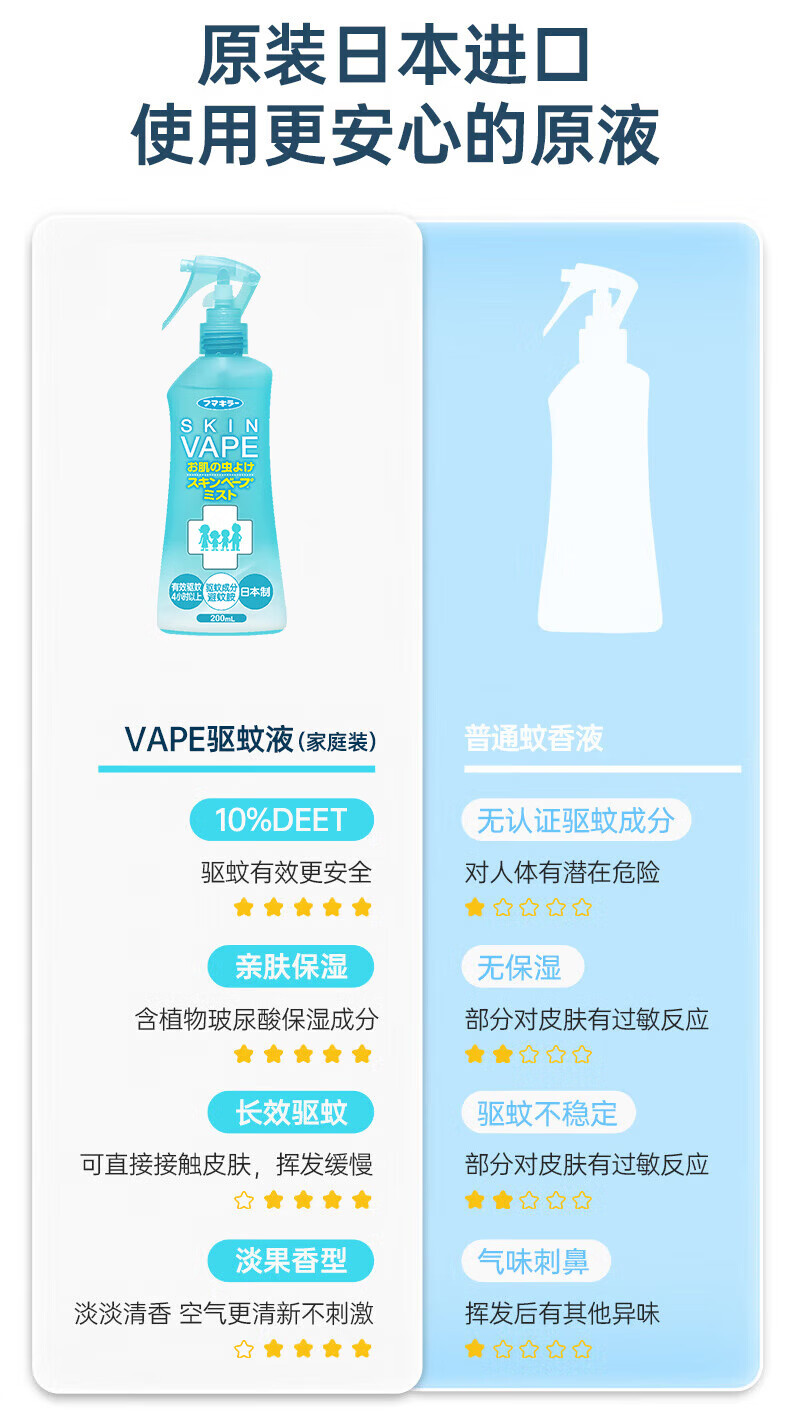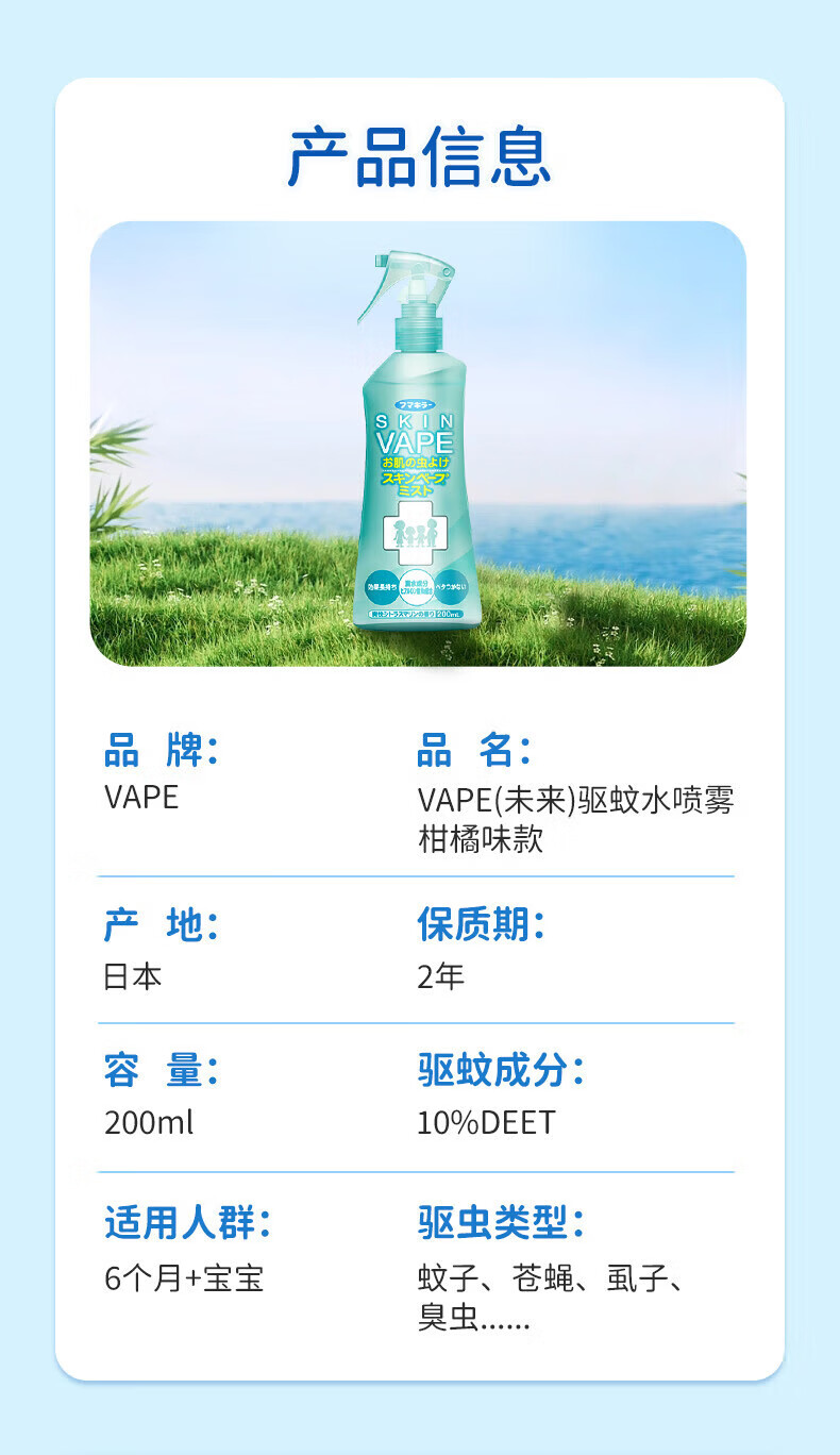 未来日本vape未来驱蚊液喷雾家庭户外蚊虫防护便携神器防叮咬驱蚊水 【自然无香】金色天使200ml-香港直邮